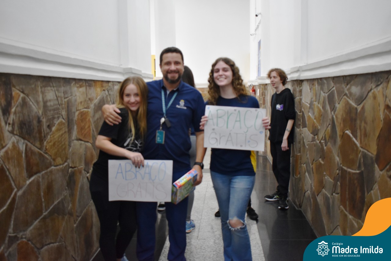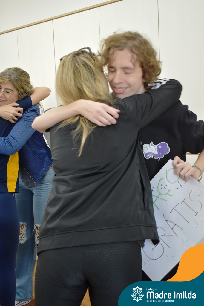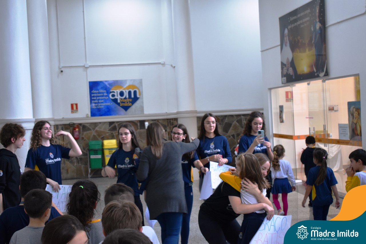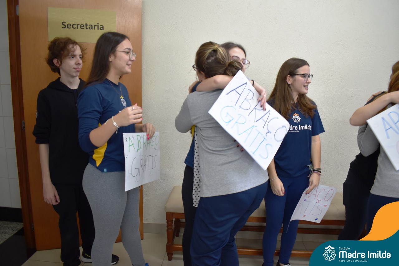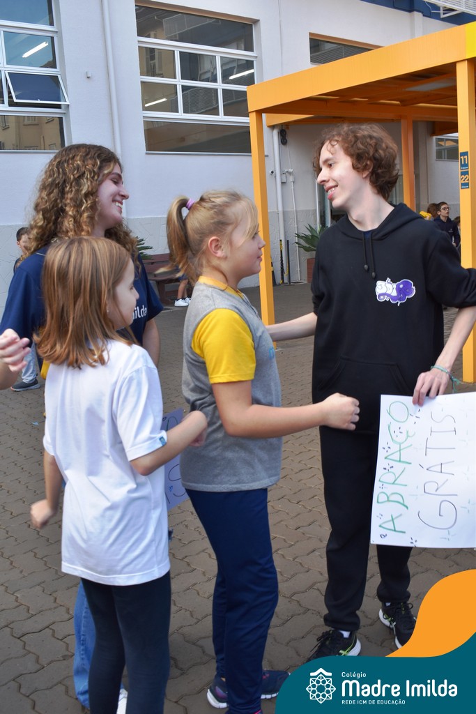 Na última ação promovida pelo programa de voluntariado, os alunos mostraram que um gesto simples pode fazer toda a diferença na vida das pessoas. No espírito do Dia do Abraço, eles decidiram espalhar amor e carinho de uma forma tão única quanto especial: distribuindo abraços grátis!