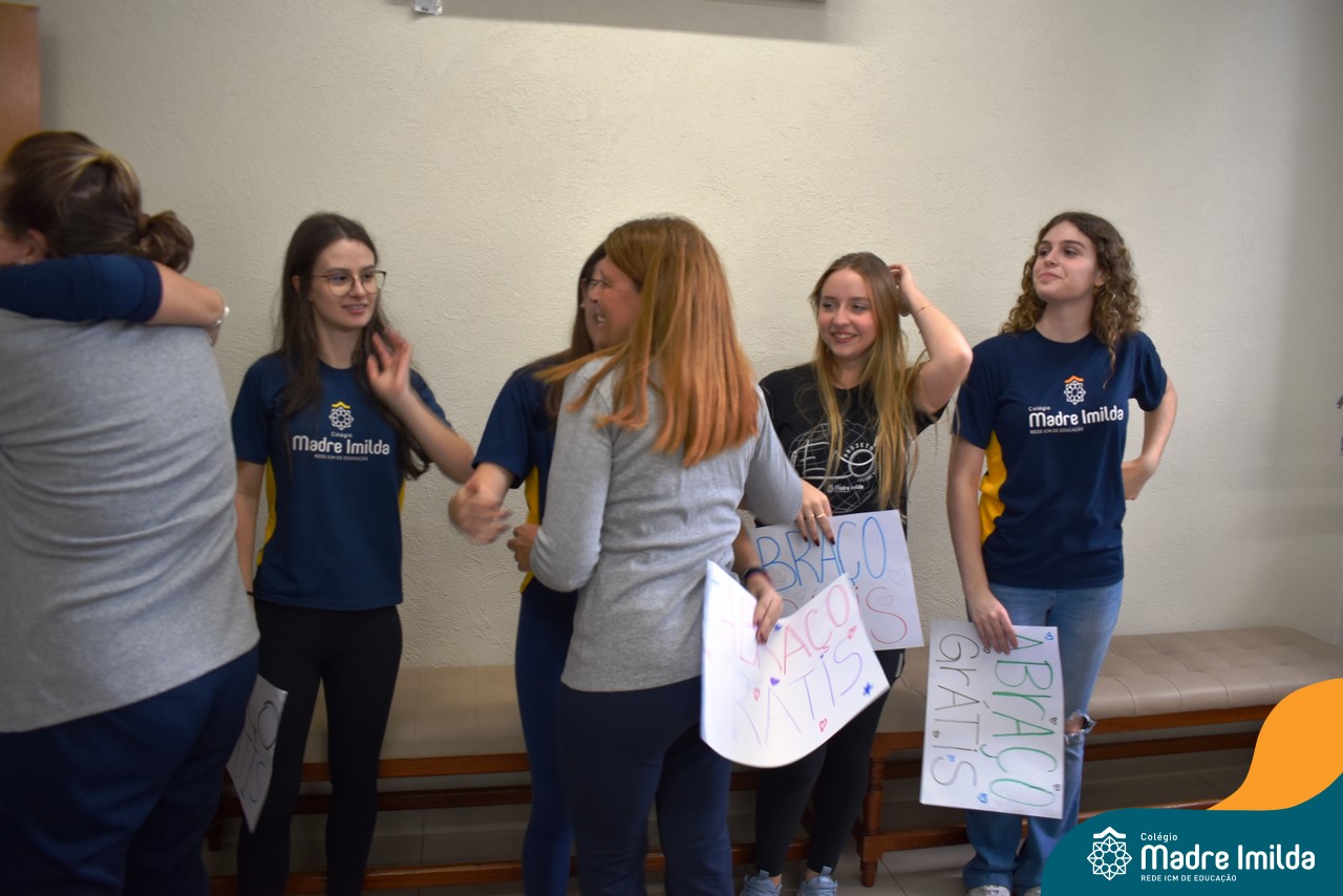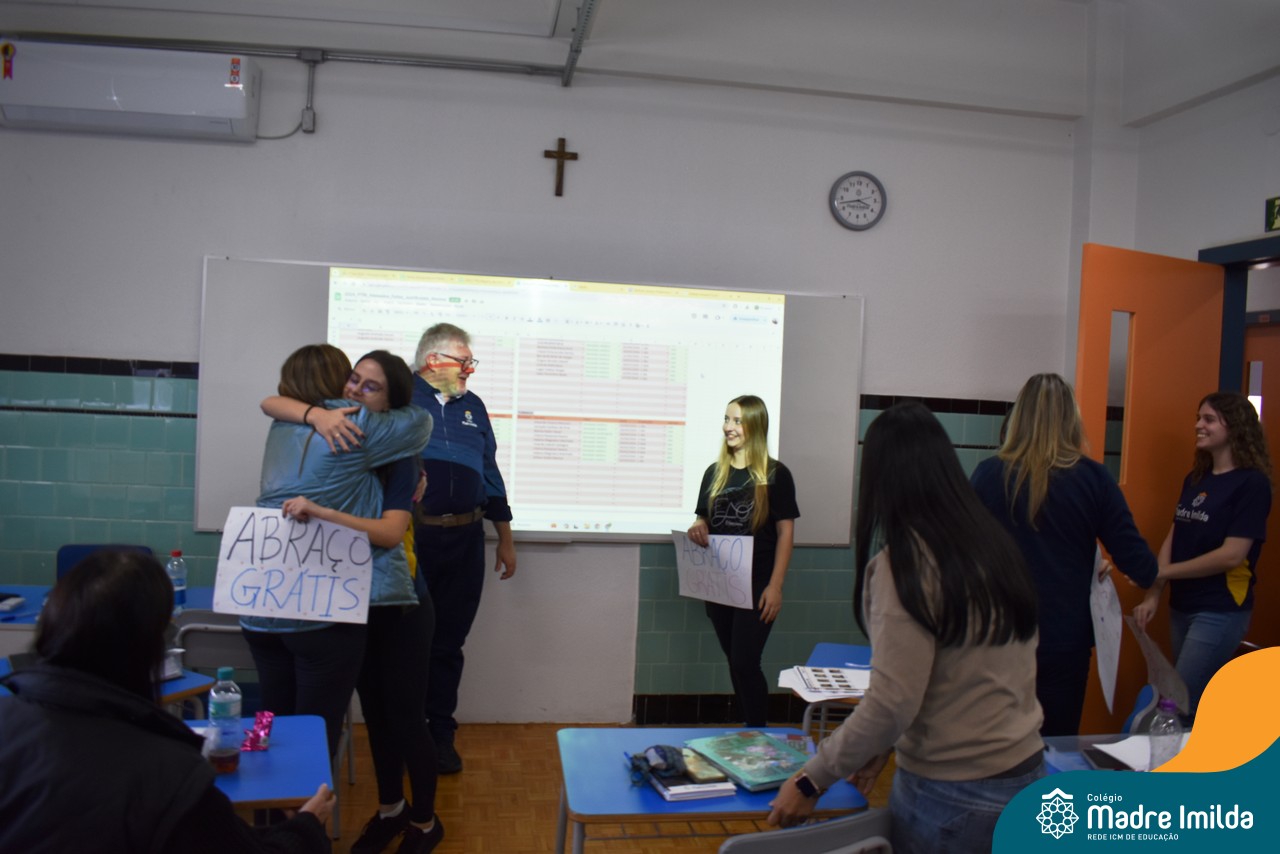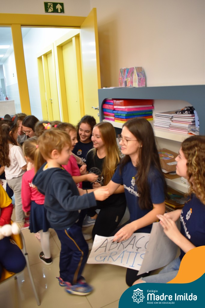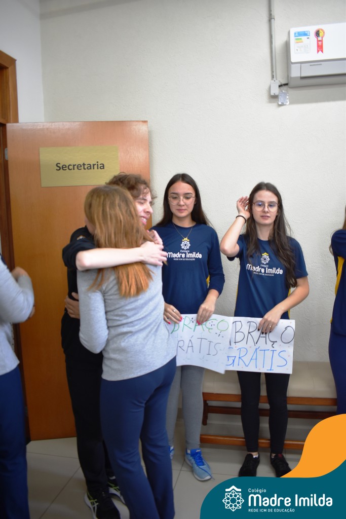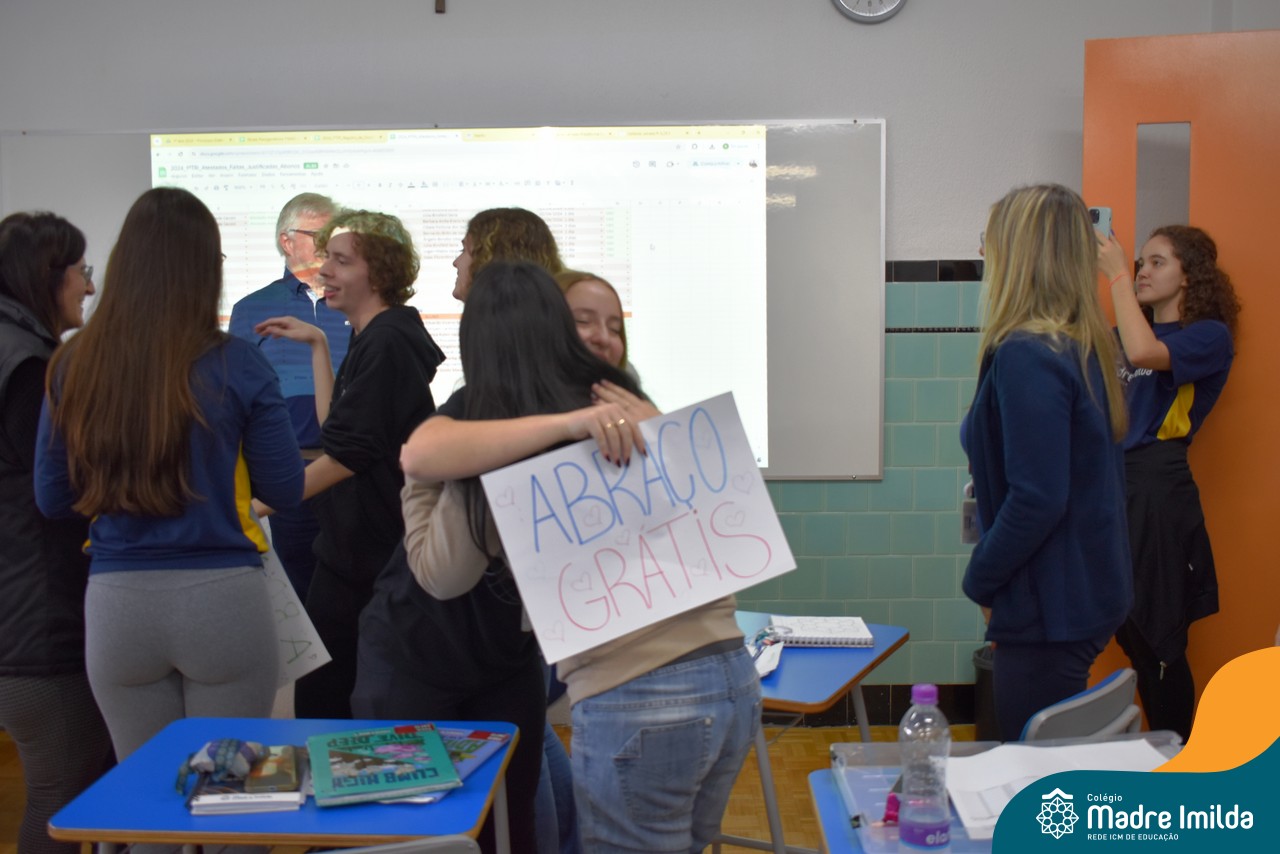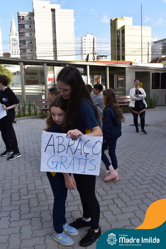 Na última ação promovida pelo programa de voluntariado, os alunos mostraram que um gesto simples pode fazer toda a diferença na vida das pessoas. No espírito do Dia do Abraço, eles decidiram espalhar amor e carinho de uma forma tão única quanto especial: distribuindo abraços grátis!
