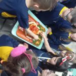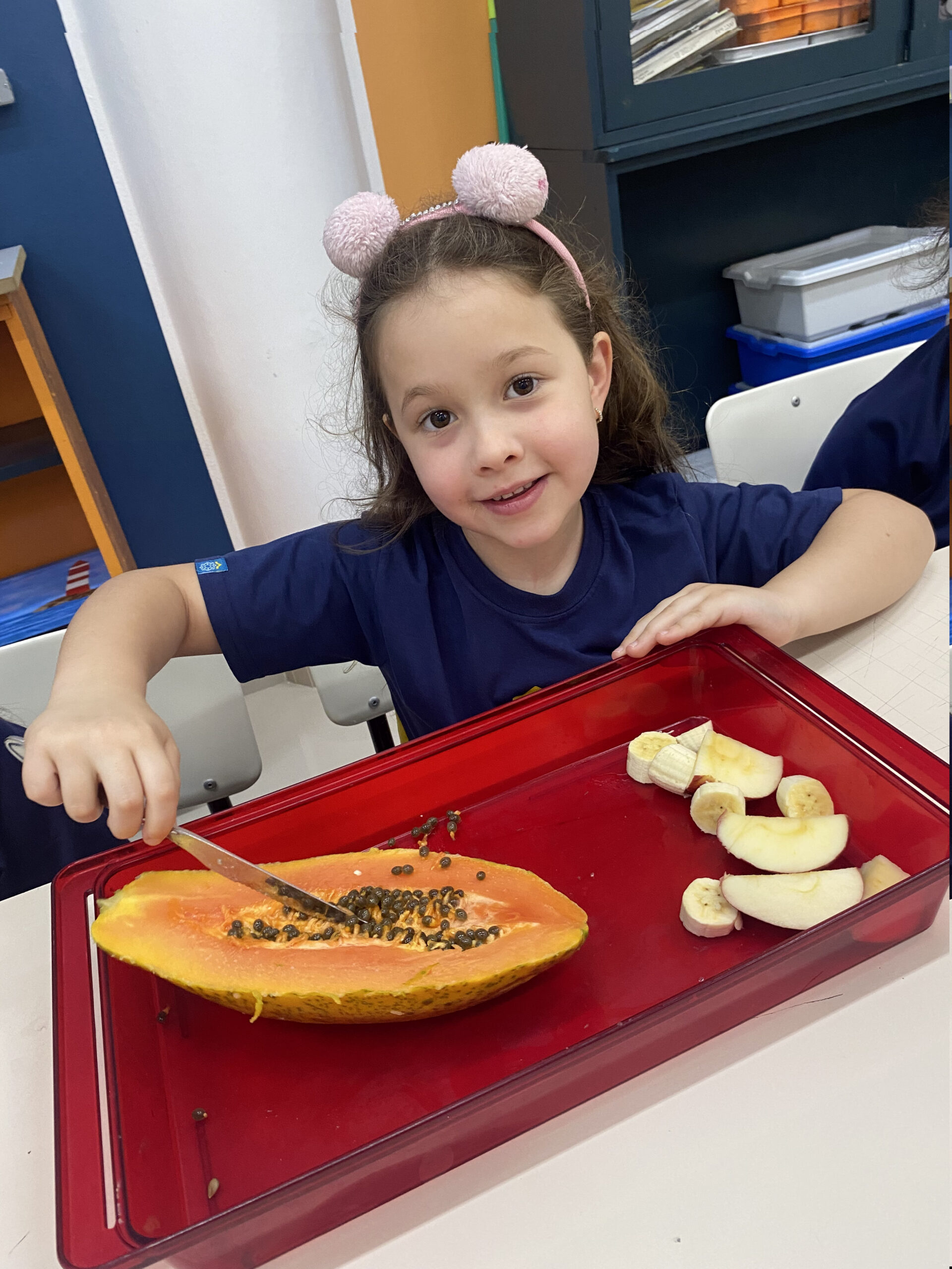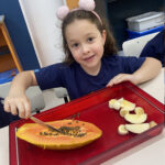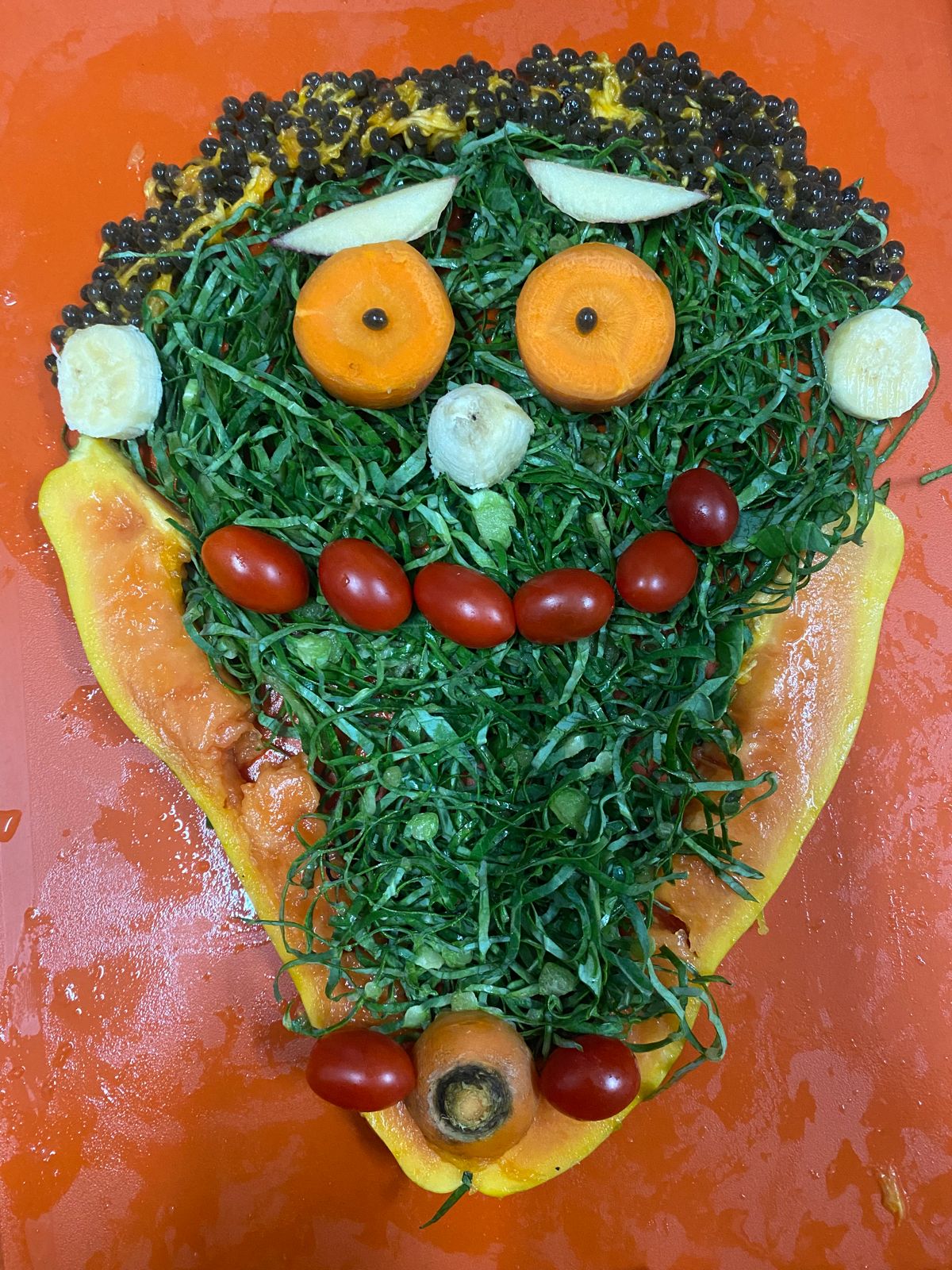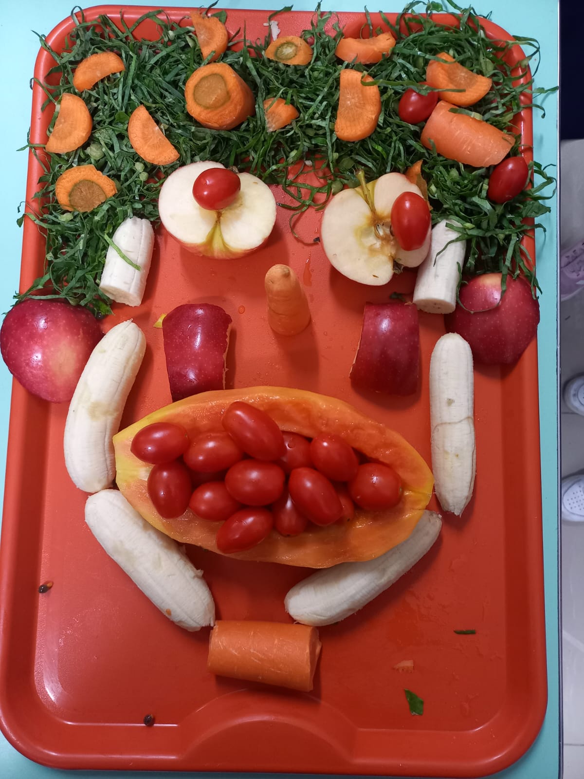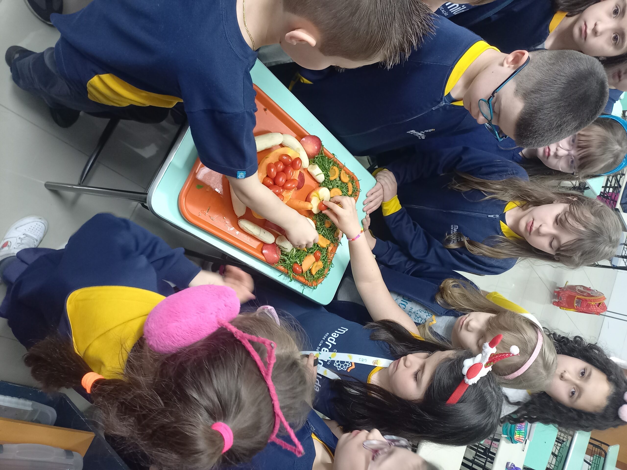 Estudar os nutrientes e as cores dos alimentos in natura, confeccionar uma pirâmide alimentar e produzir vitaminas de frutas foram as tarefas propostas no Projeto “Alimentação Saudável”, desenvolvido pelos alunos do Turno Extracurricular do Colégio Madre Imilda. Aliado a isso, os estudantes apreciaram as obras do pintor italiano Giuseppe Arcimboldo, conhecido por utilizar frutas, verduras e flores para compor fisionomias humanas. Inspirados pelas criações do artista, as crianças elaboraram uma releitura artística com frutas, verduras e legumes. Depois de tudo pronto, coube à turma fotografar as obras e saboreá-las.