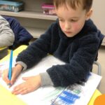 Os alunos tiveram a oportunidade de confeccionar suas próprias sanfonas de papel. Durante a atividade, eles coloriram e montaram as sanfonas, desenvolvendo habilidades motoras e artísticas. A iniciativa não só trouxe alegria e entusiasmo para as crianças, mas também proporcionou uma rica experiência de aprendizado cultural, celebrando as tradições das festas juninas.