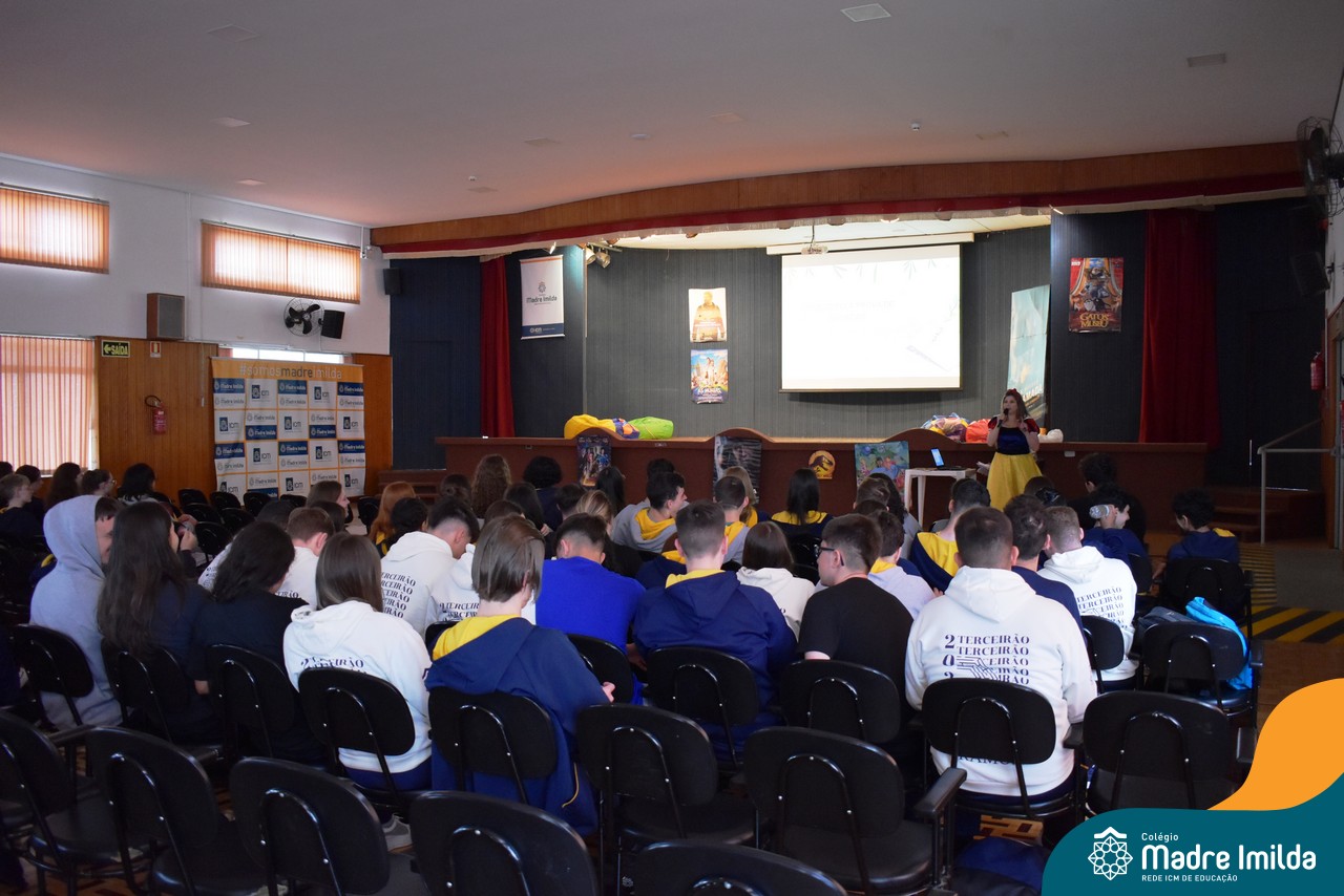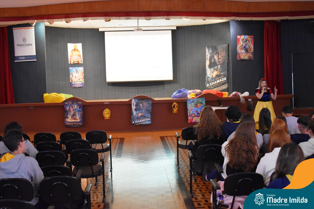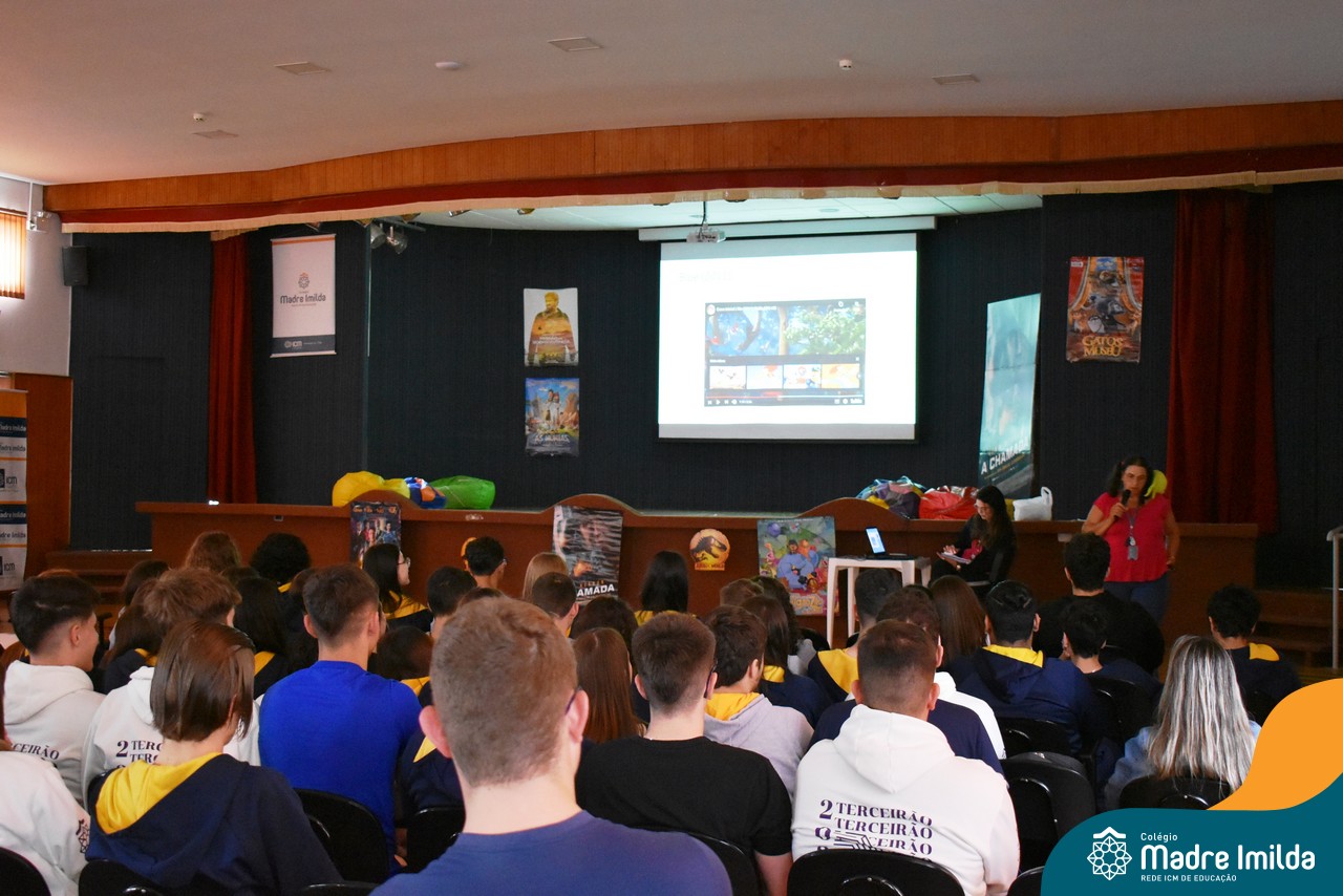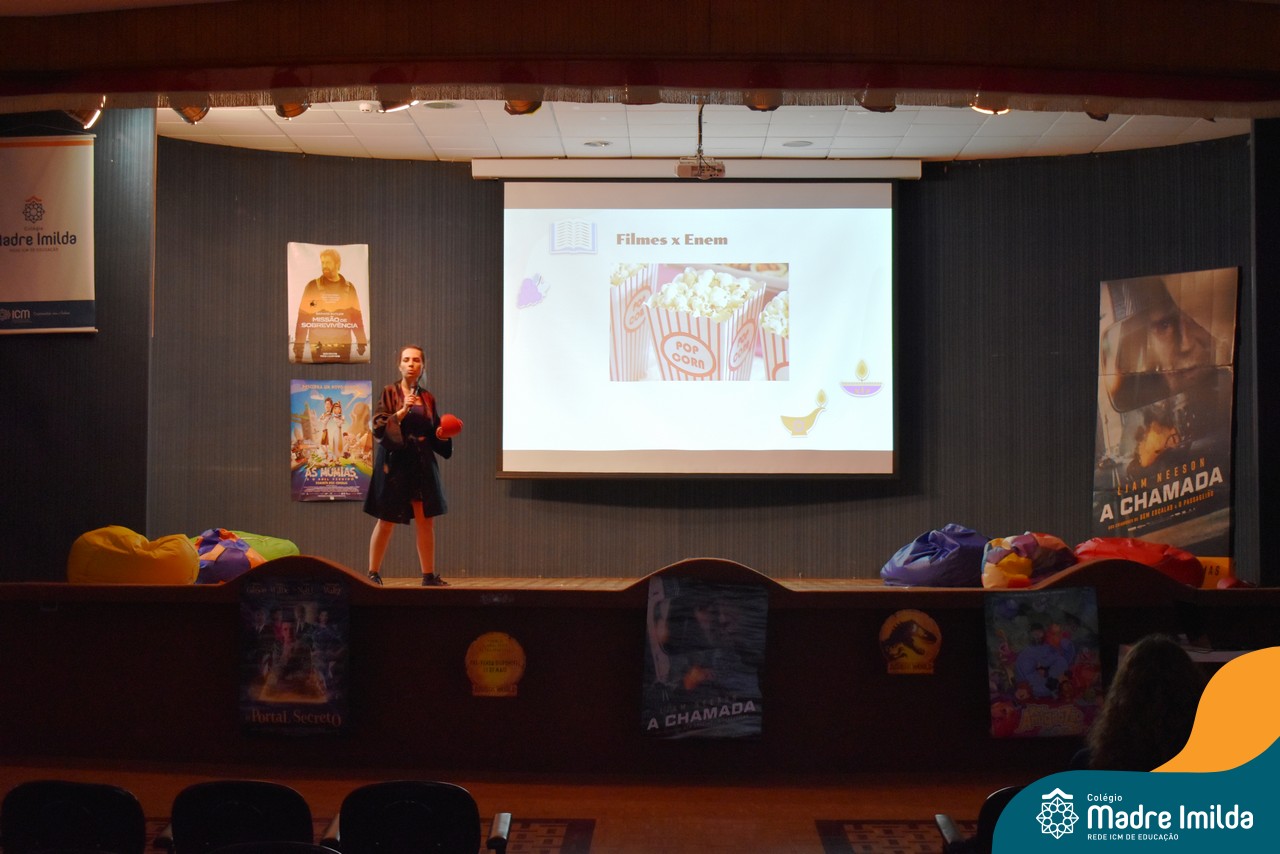 O Colégio Madre Imilda tem o compromisso de preparar nossos estudantes para o ENEM de uma maneira que seja envolvente e memorável. E nada melhor do que trazer a magia do cinema para a sala de aula, proporcionando uma experiência educacional única. Com a aproximação das provas do ENEM, este Aulão foi planejado para criar um ambiente de aprendizado estimulante e descontraído, onde os estudantes puderam se preparar de forma eficaz e, ao mesmo tempo, desfrutar da sétima arte.