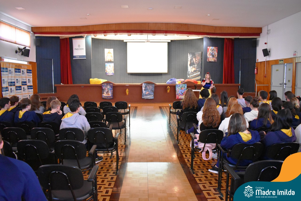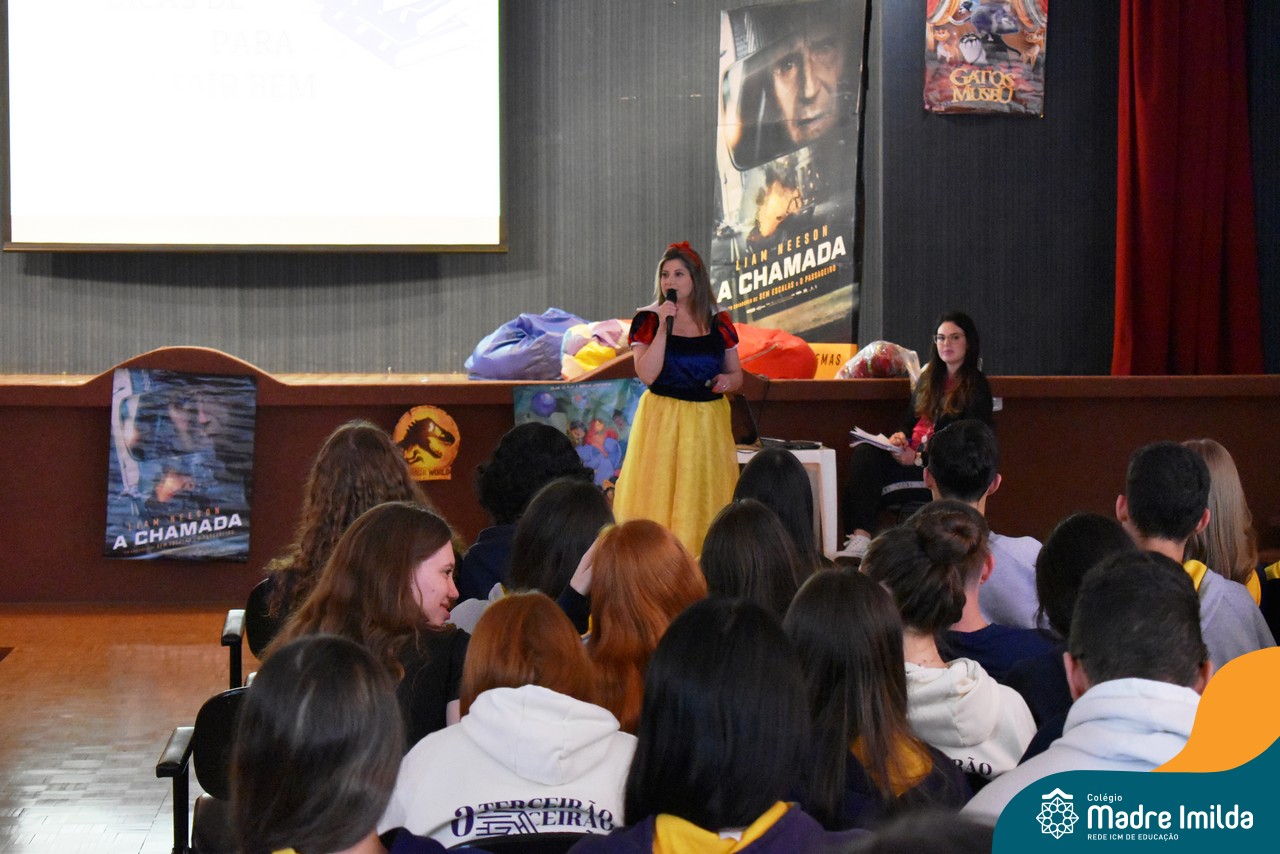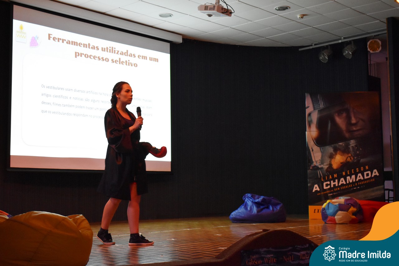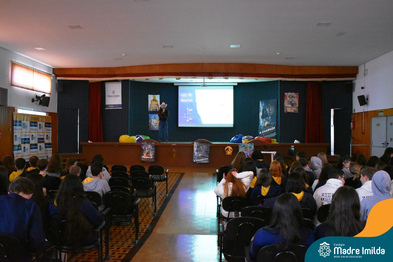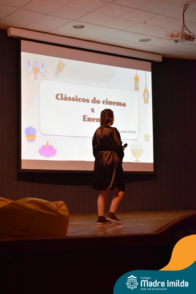 O Colégio Madre Imilda tem o compromisso de preparar nossos estudantes para o ENEM de uma maneira que seja envolvente e memorável. E nada melhor do que trazer a magia do cinema para a sala de aula, proporcionando uma experiência educacional única. Com a aproximação das provas do ENEM, este Aulão foi planejado para criar um ambiente de aprendizado estimulante e descontraído, onde os estudantes puderam se preparar de forma eficaz e, ao mesmo tempo, desfrutar da sétima arte.