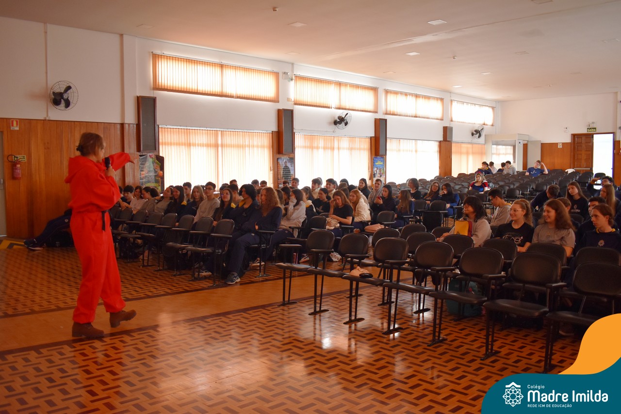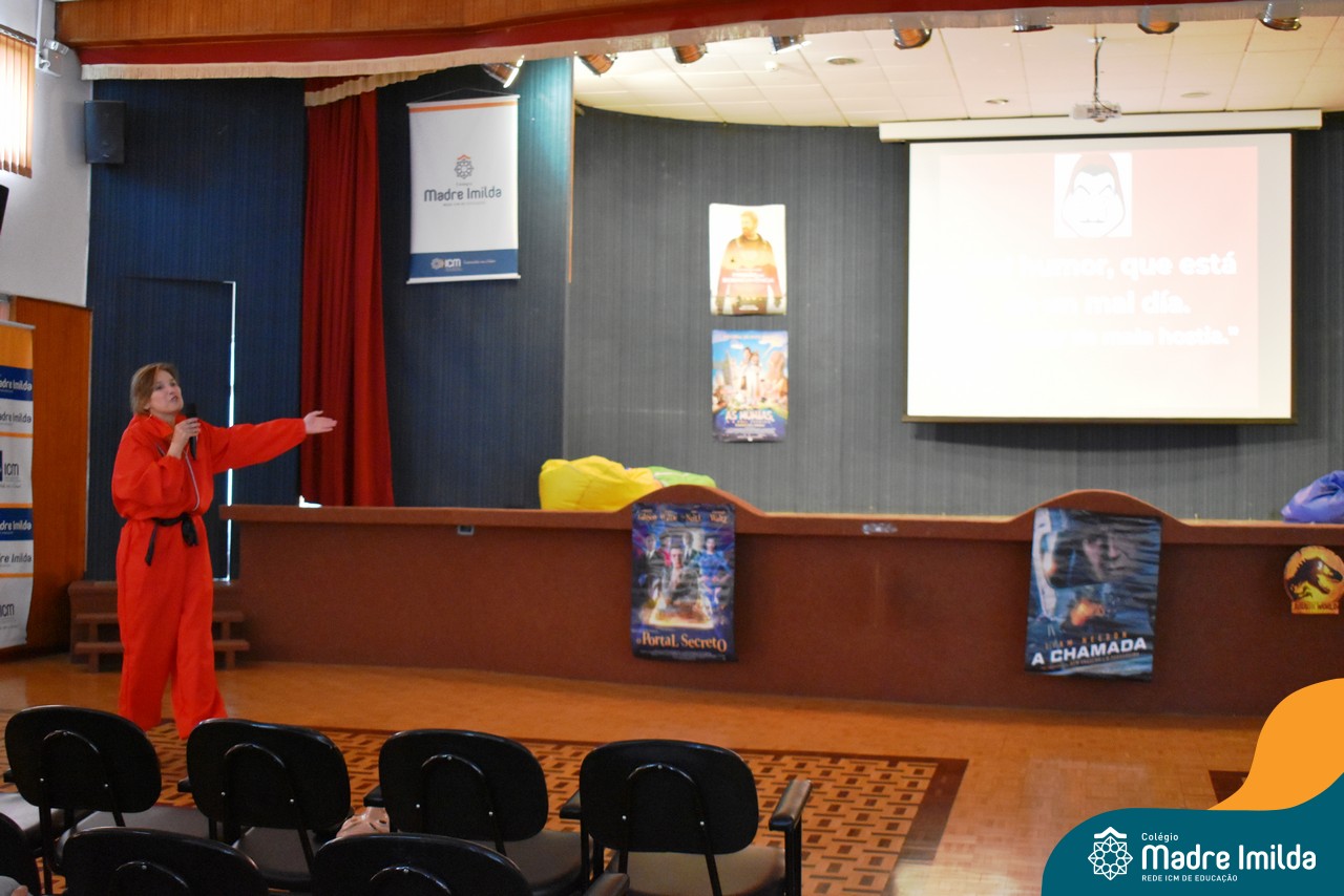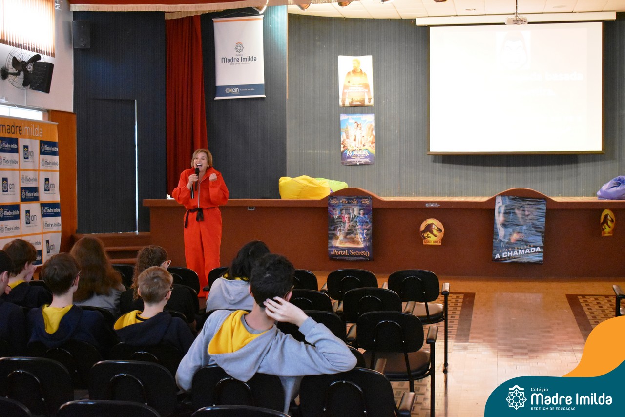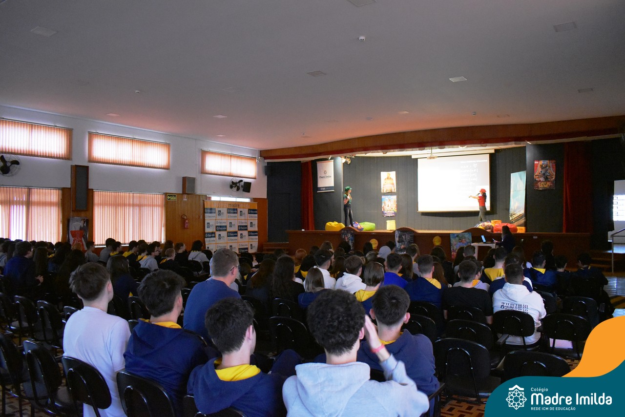 O Colégio Madre Imilda tem o compromisso de preparar nossos estudantes para o ENEM de uma maneira que seja envolvente e memorável. E nada melhor do que trazer a magia do cinema para a sala de aula, proporcionando uma experiência educacional única. Com a aproximação das provas do ENEM, este Aulão foi planejado para criar um ambiente de aprendizado estimulante e descontraído, onde os estudantes puderam se preparar de forma eficaz e, ao mesmo tempo, desfrutar da sétima arte.
