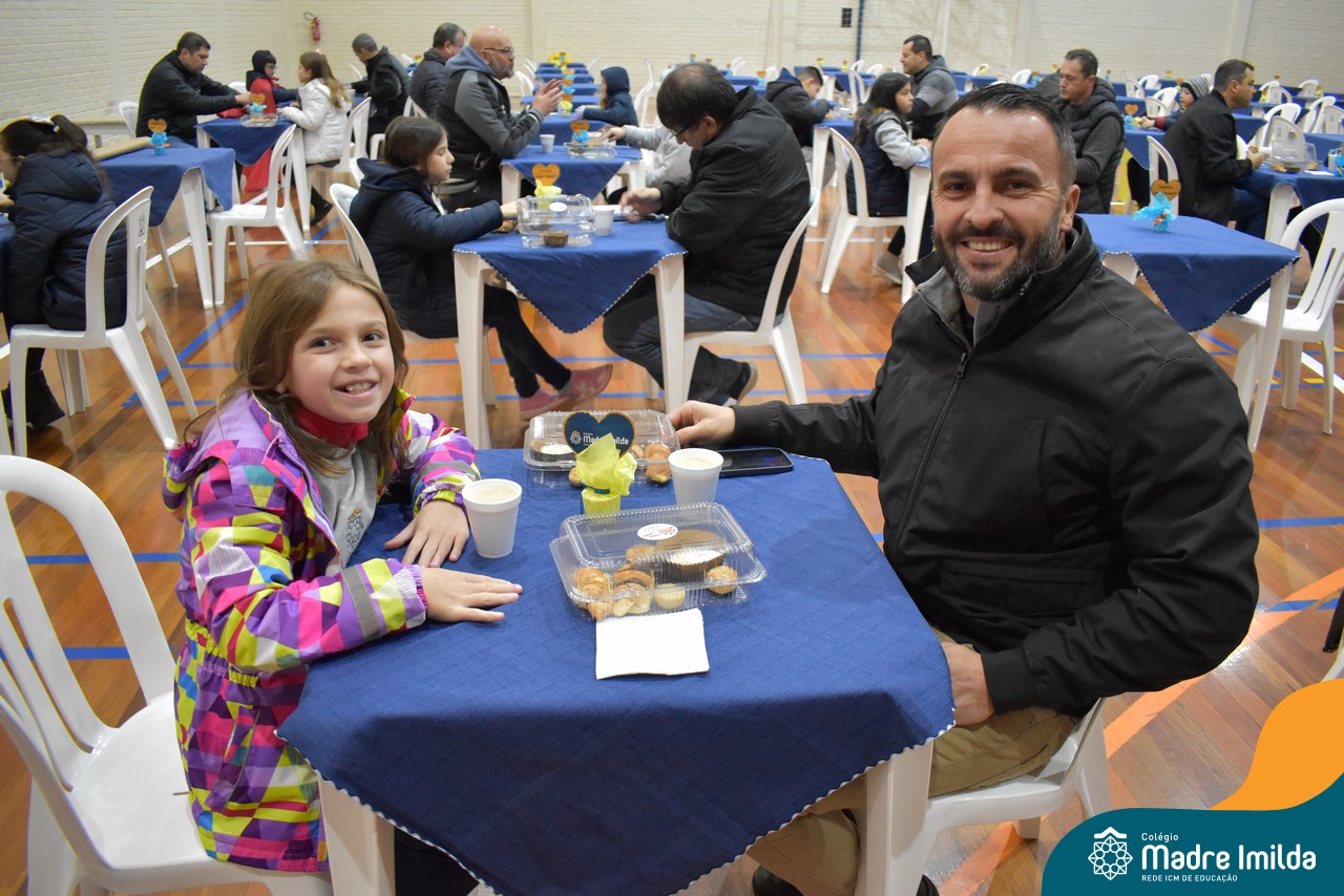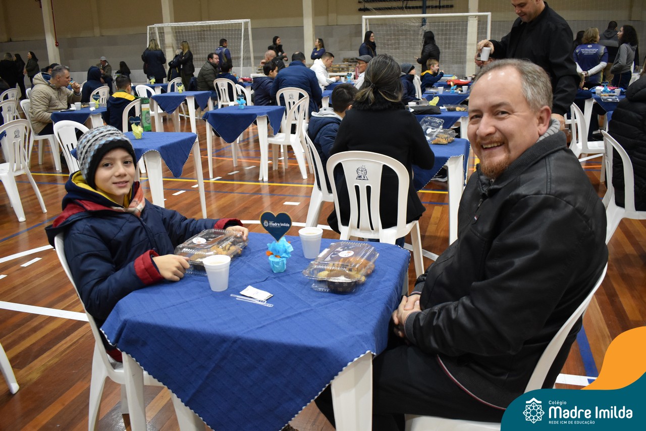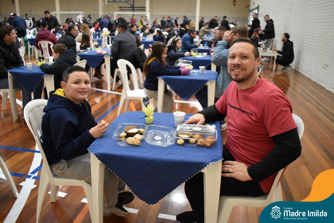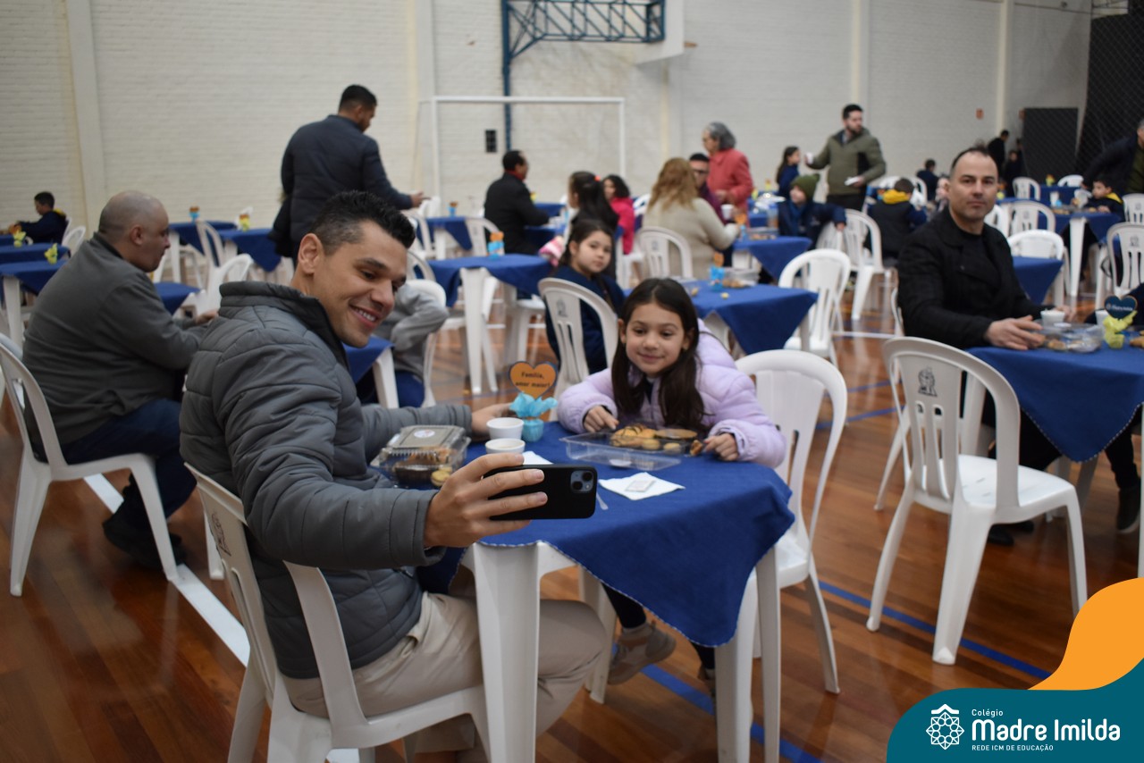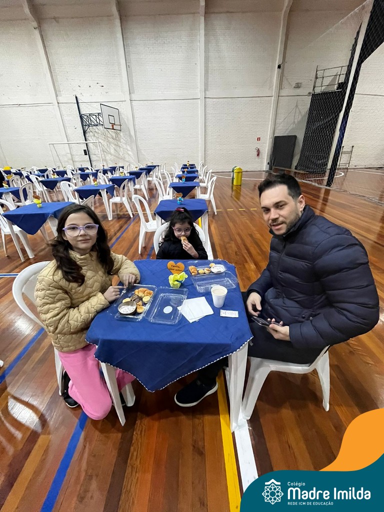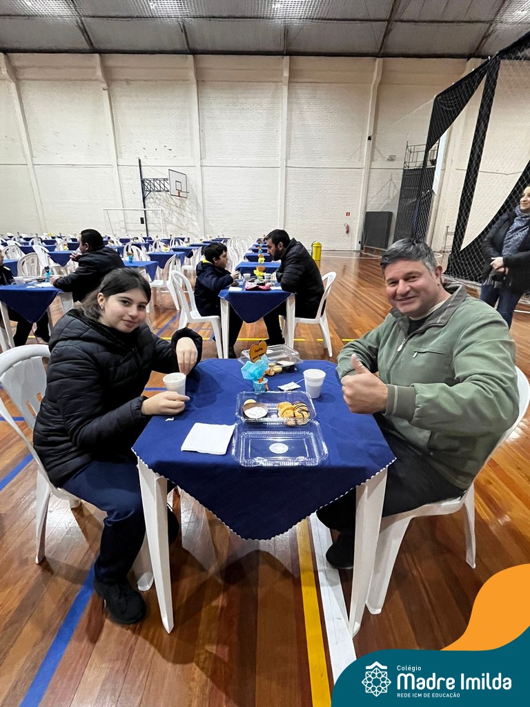 No último sábado, 10/08, o Colégio Madre Imilda foi palco de um momento especial de união e afeto. Promovido pela APM, o “Café dos Pais” reuniu pais e filhos para um delicioso café da manhã, fortalecendo os laços familiares em um ambiente de acolhimento e carinho.