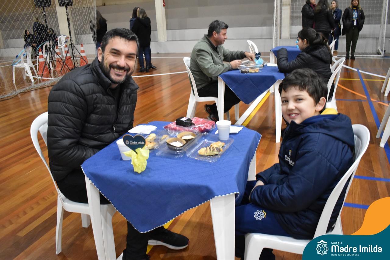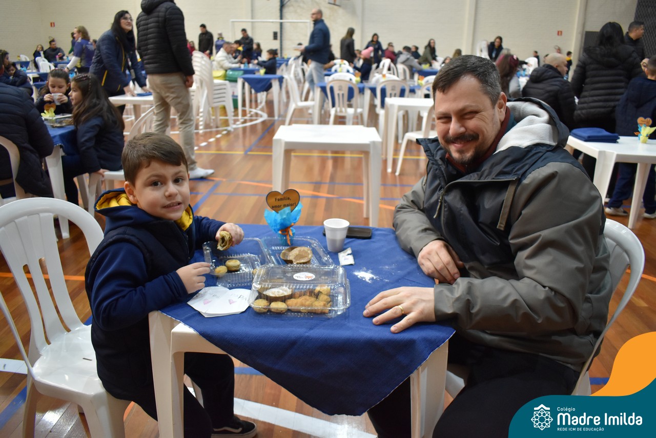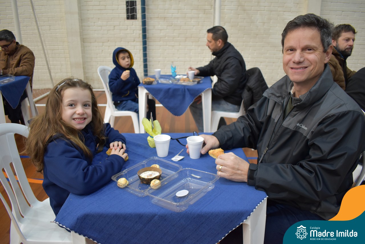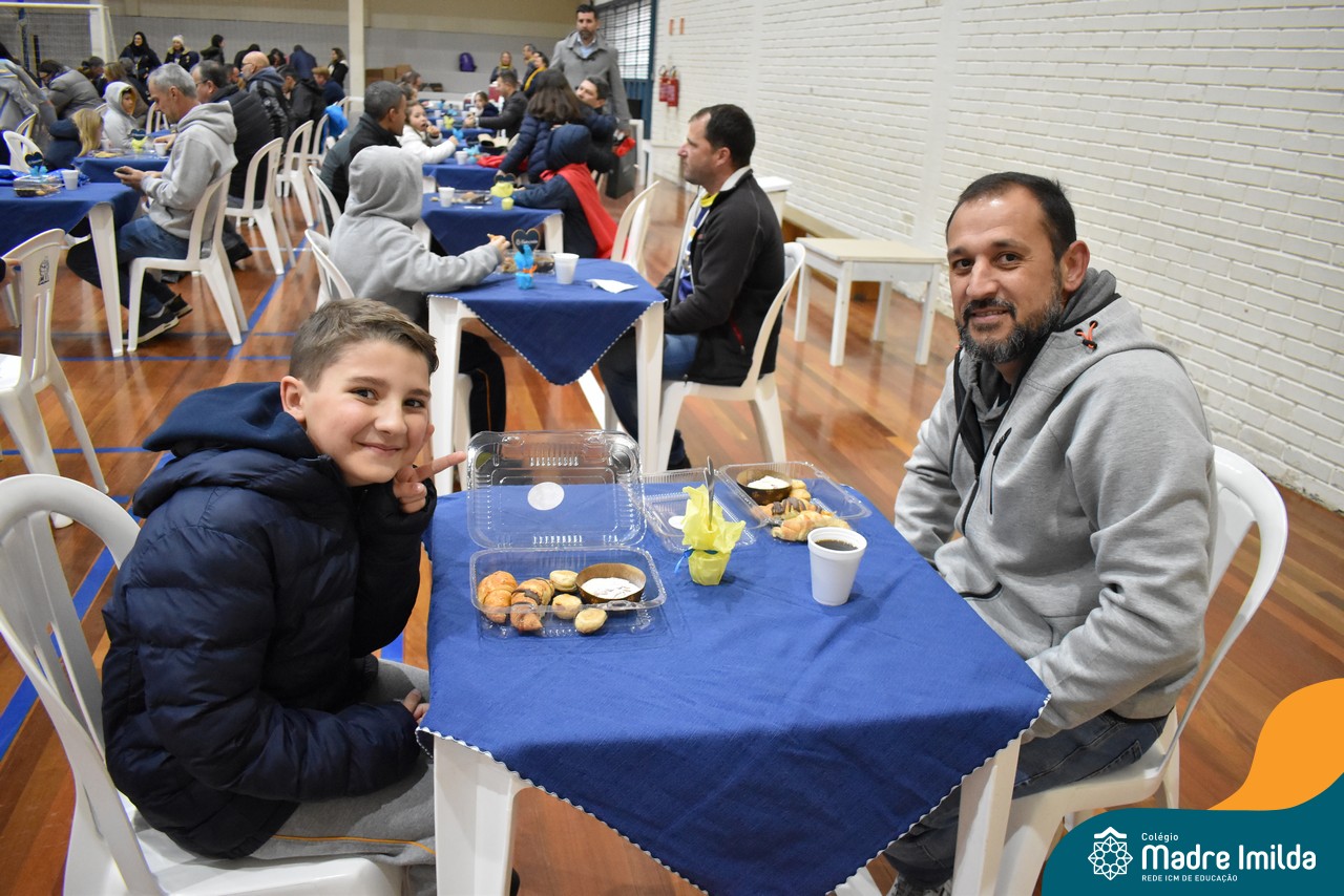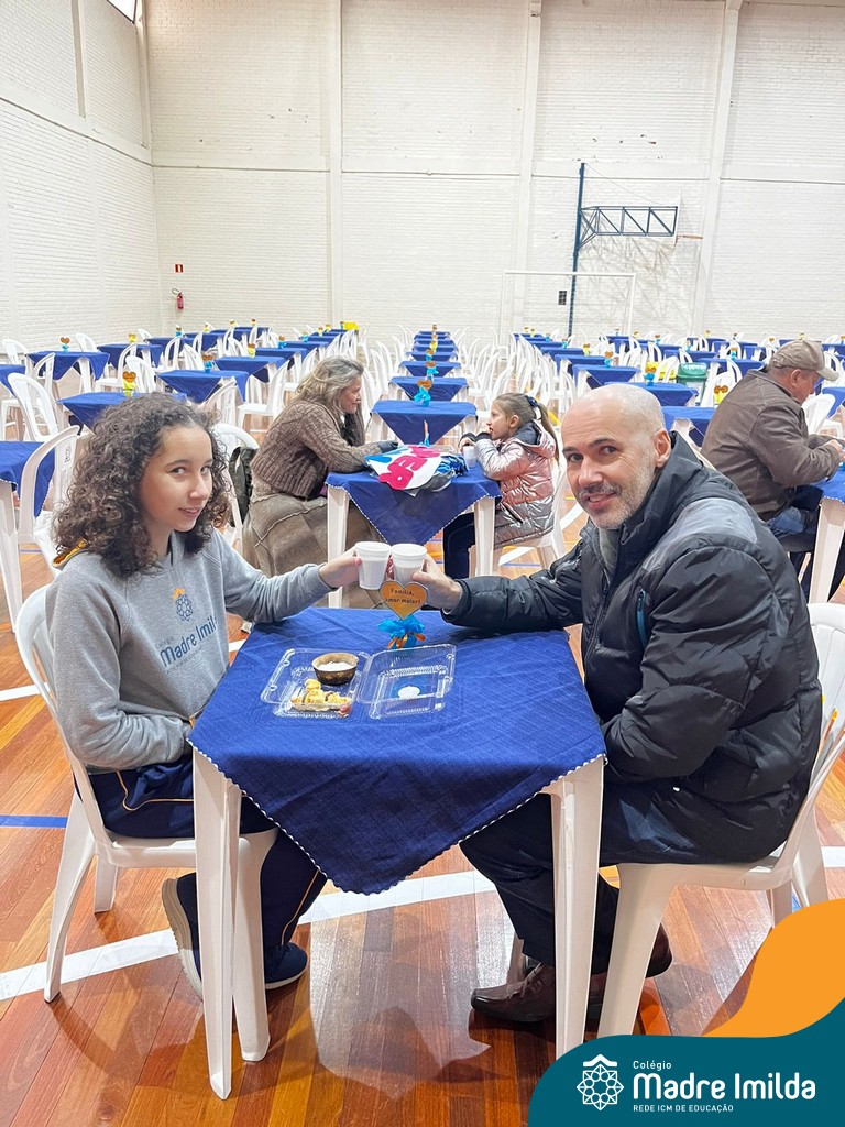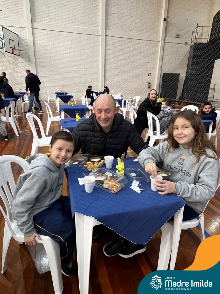 No último sábado, 10/08, o Colégio Madre Imilda foi palco de um momento especial de união e afeto. Promovido pela APM, o “Café dos Pais” reuniu pais e filhos para um delicioso café da manhã, fortalecendo os laços familiares em um ambiente de acolhimento e carinho.