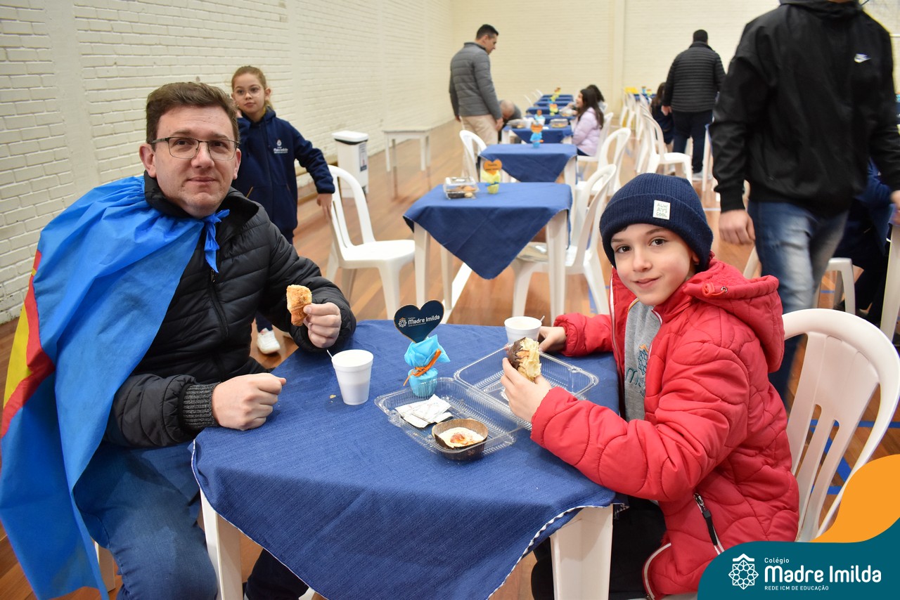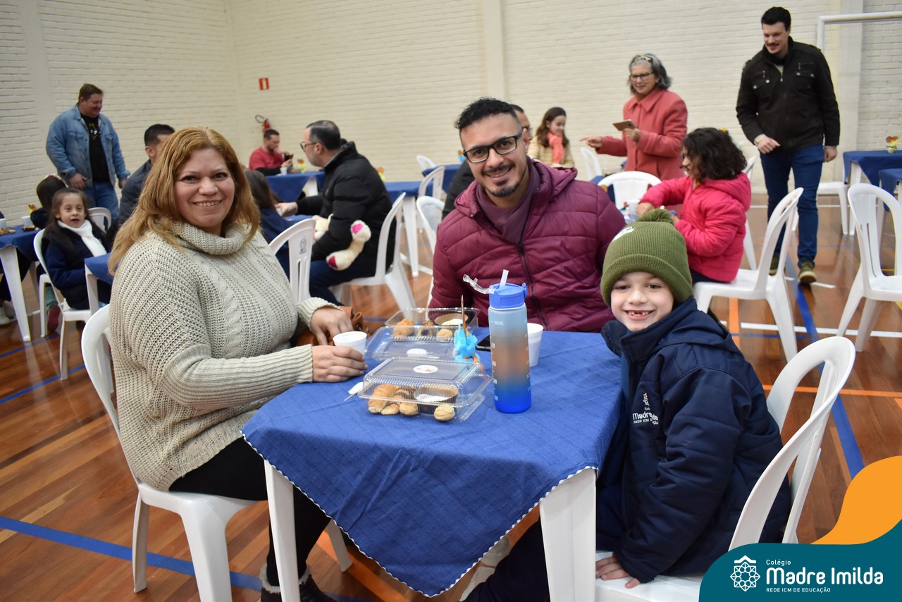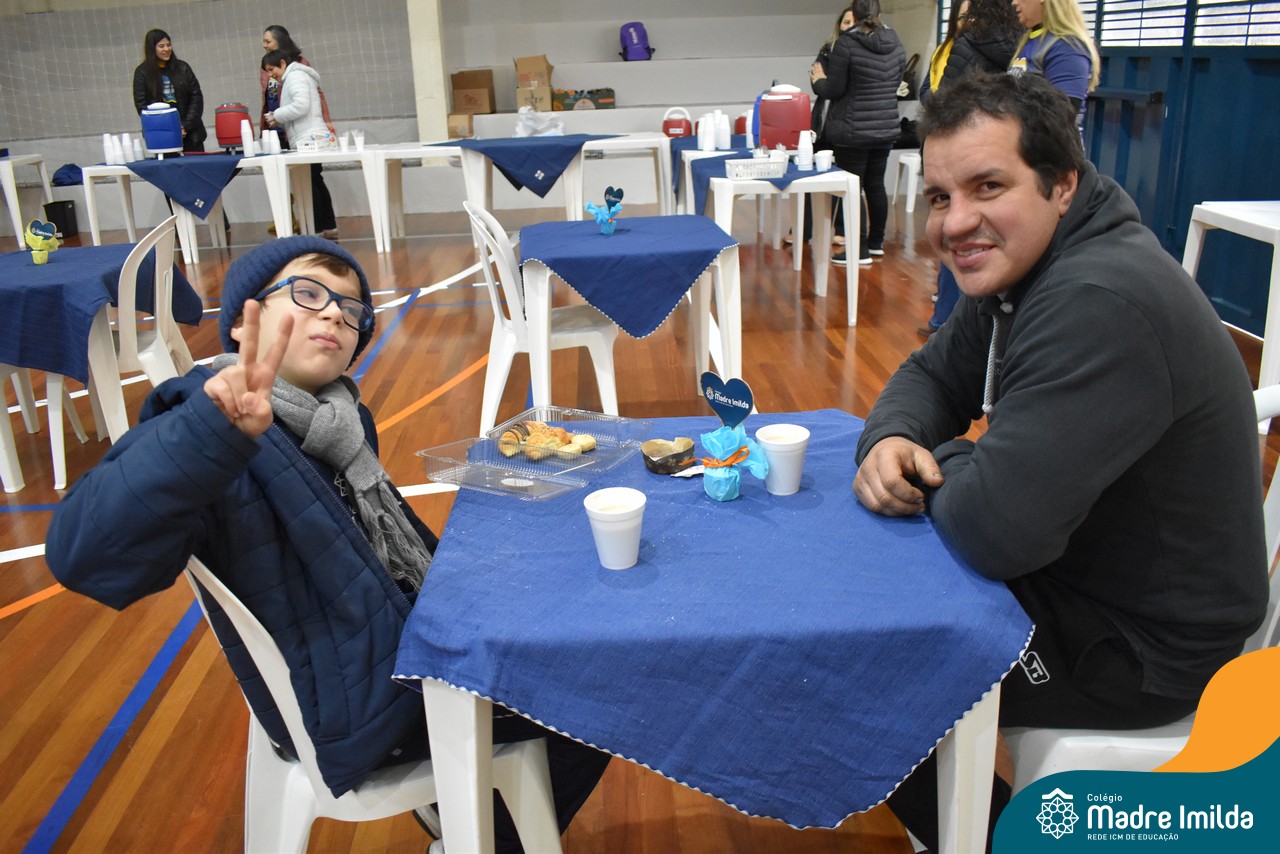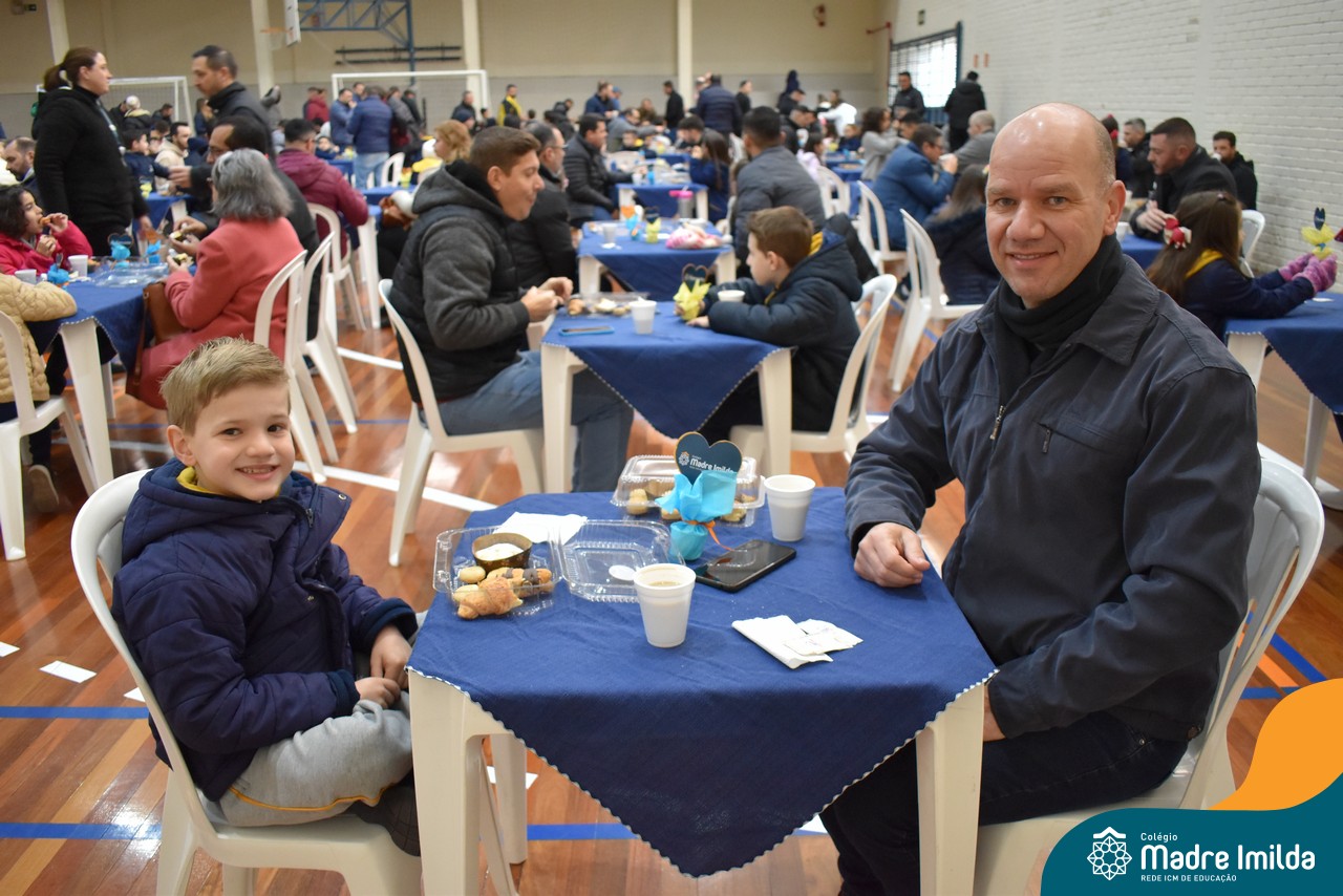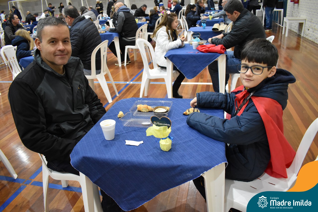 No último sábado, 10/08, o Colégio Madre Imilda foi palco de um momento especial de união e afeto. Promovido pela APM, o “Café dos Pais” reuniu pais e filhos para um delicioso café da manhã, fortalecendo os laços familiares em um ambiente de acolhimento e carinho.