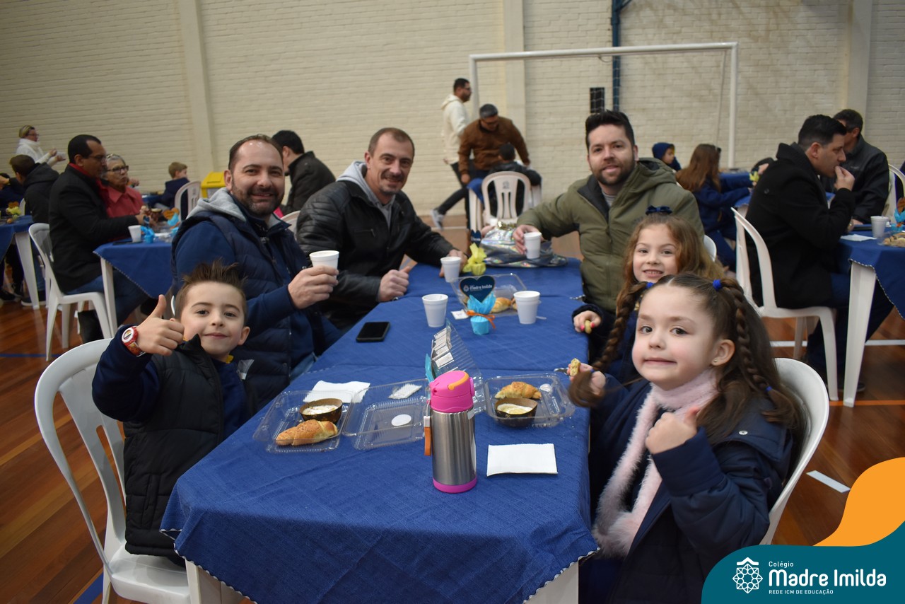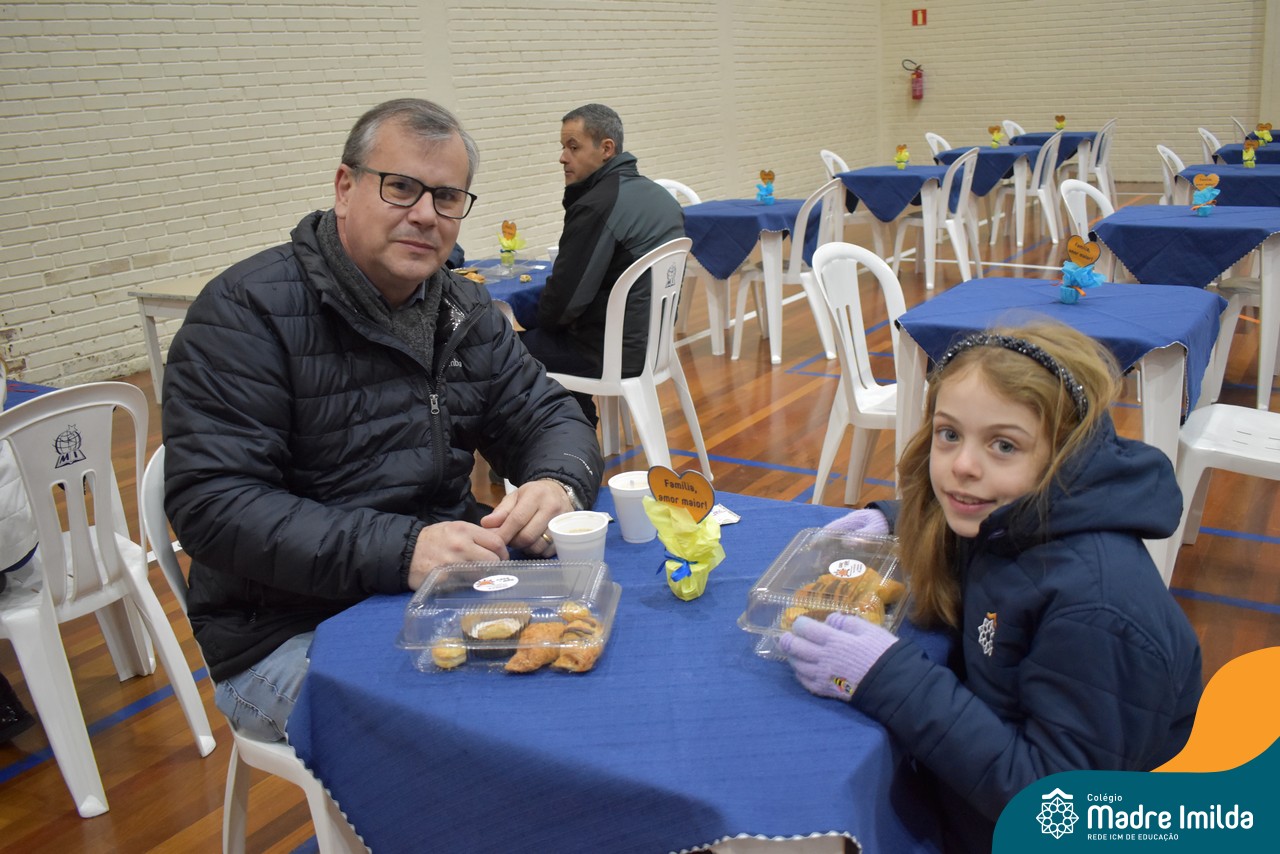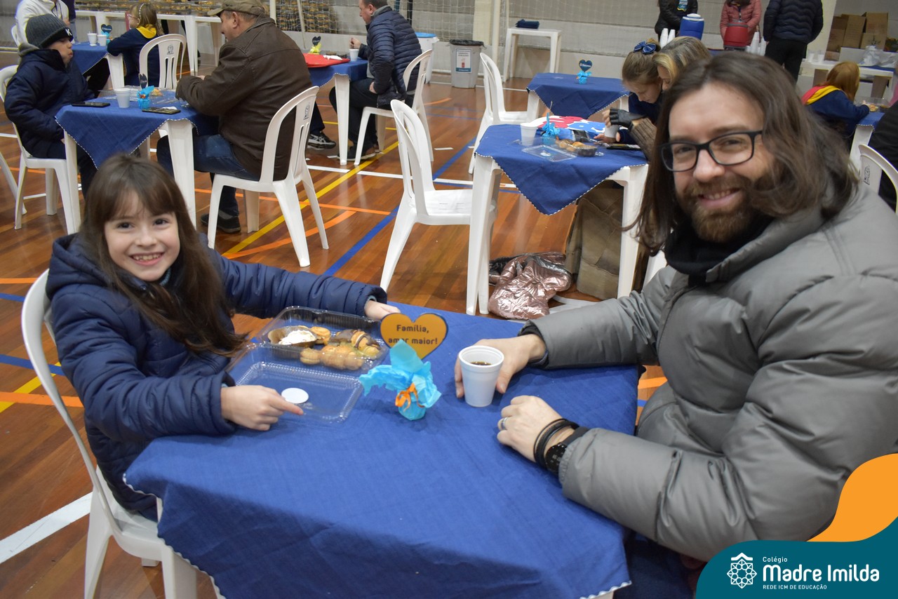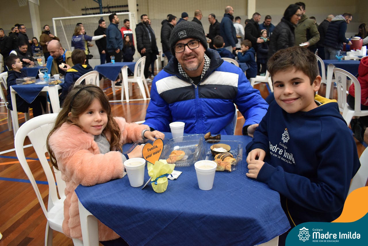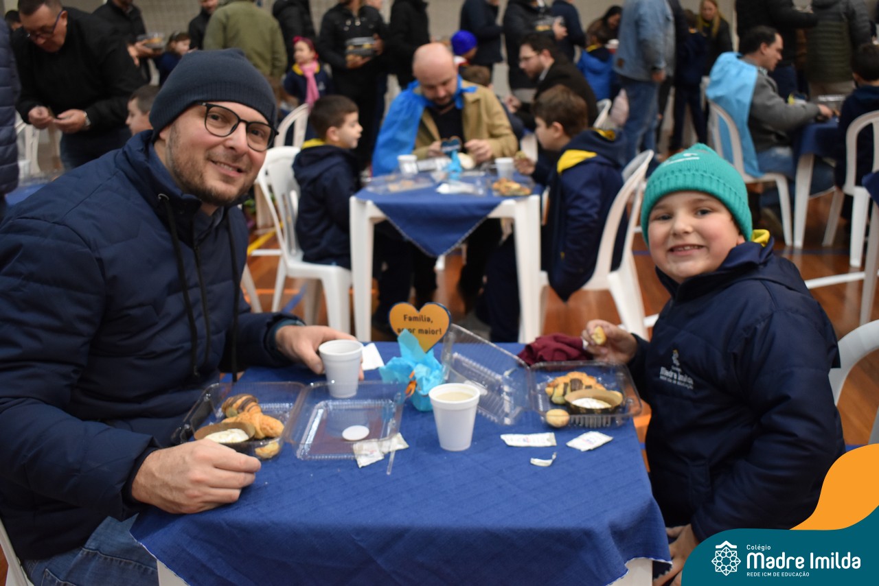 No último sábado, 10/08, o Colégio Madre Imilda foi palco de um momento especial de união e afeto. Promovido pela APM, o “Café dos Pais” reuniu pais e filhos para um delicioso café da manhã, fortalecendo os laços familiares em um ambiente de acolhimento e carinho.