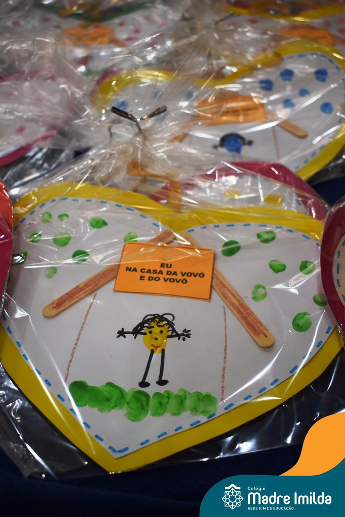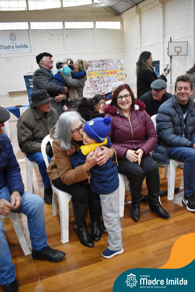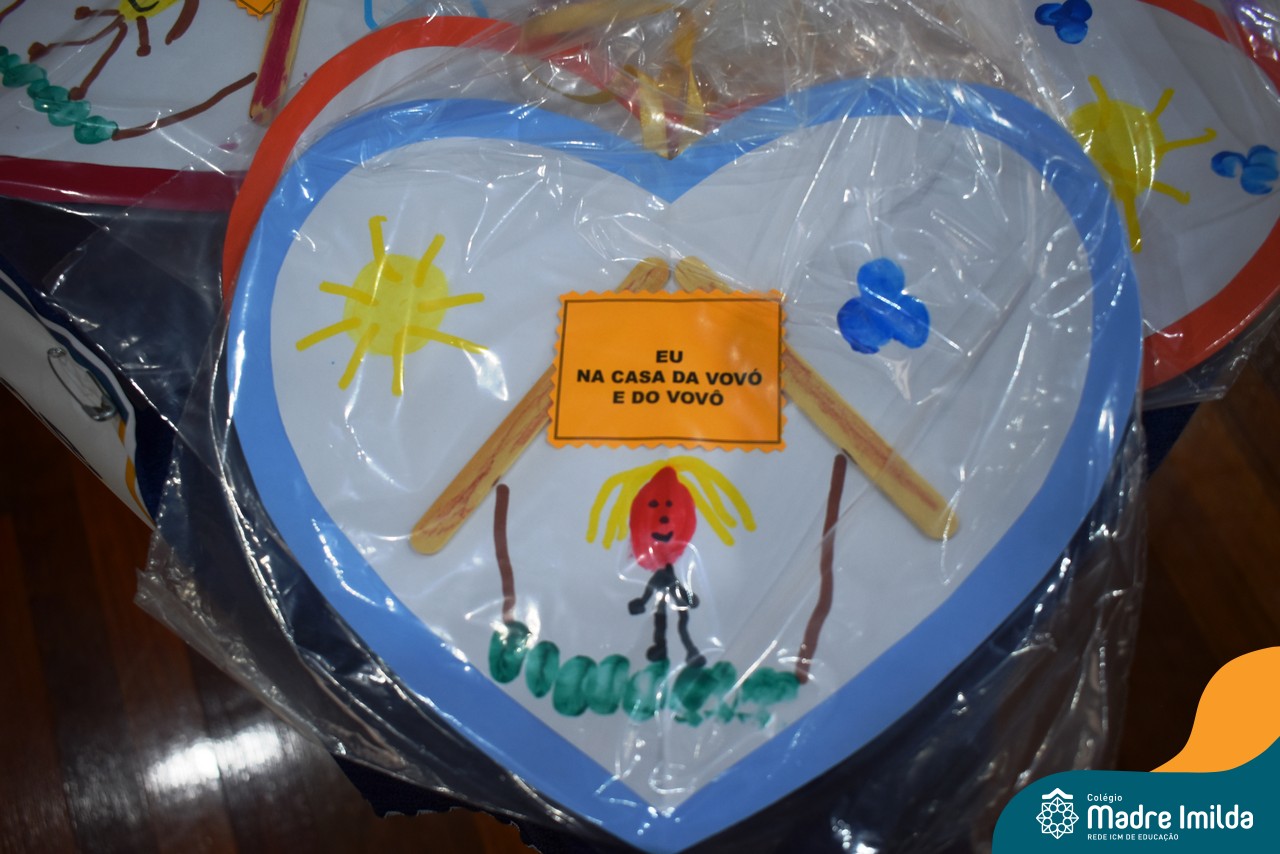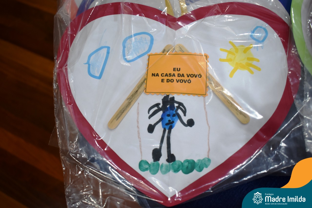 Após a apresentação, as crianças entregaram cartões personalizados, que foram cuidadosamente confeccionados por elas mesmas. Esse gesto carinhoso emocionou os avós, que receberam os presentes com sorrisos e abraços calorosos.