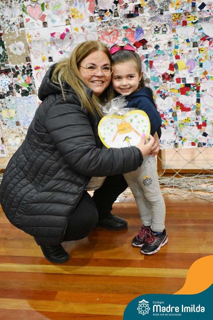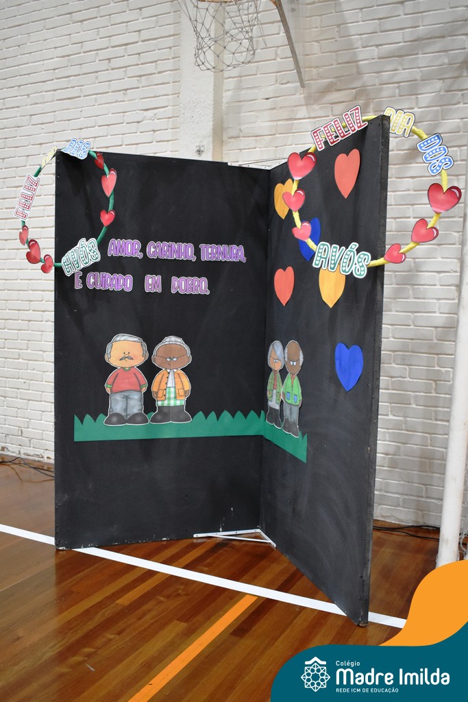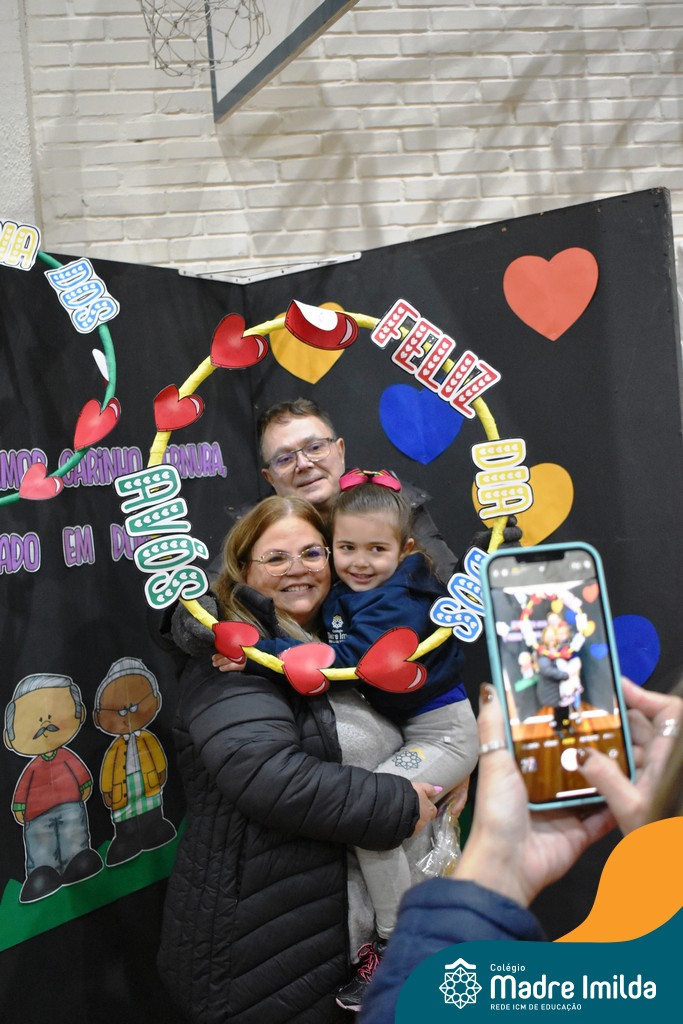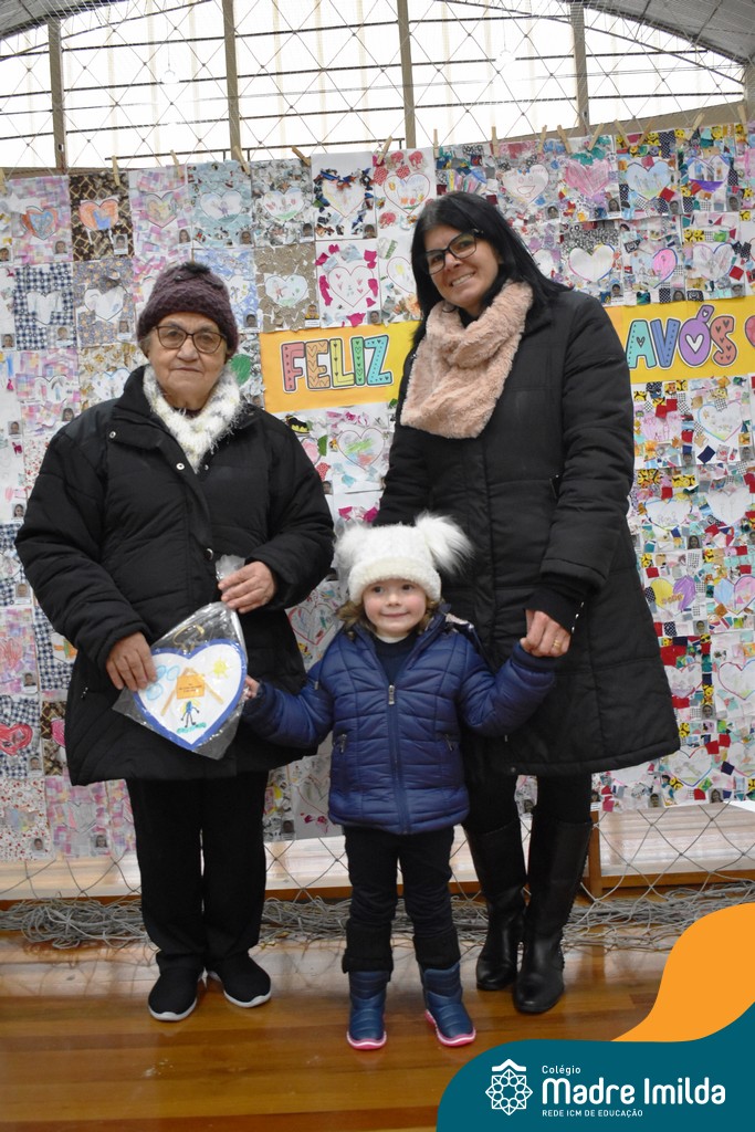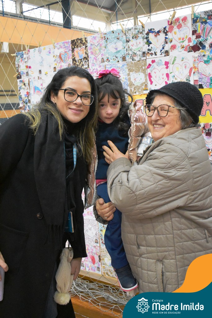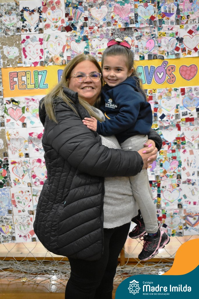 Após a apresentação, as crianças entregaram cartões personalizados, que foram cuidadosamente confeccionados por elas mesmas. Esse gesto carinhoso emocionou os avós, que receberam os presentes com sorrisos e abraços calorosos.