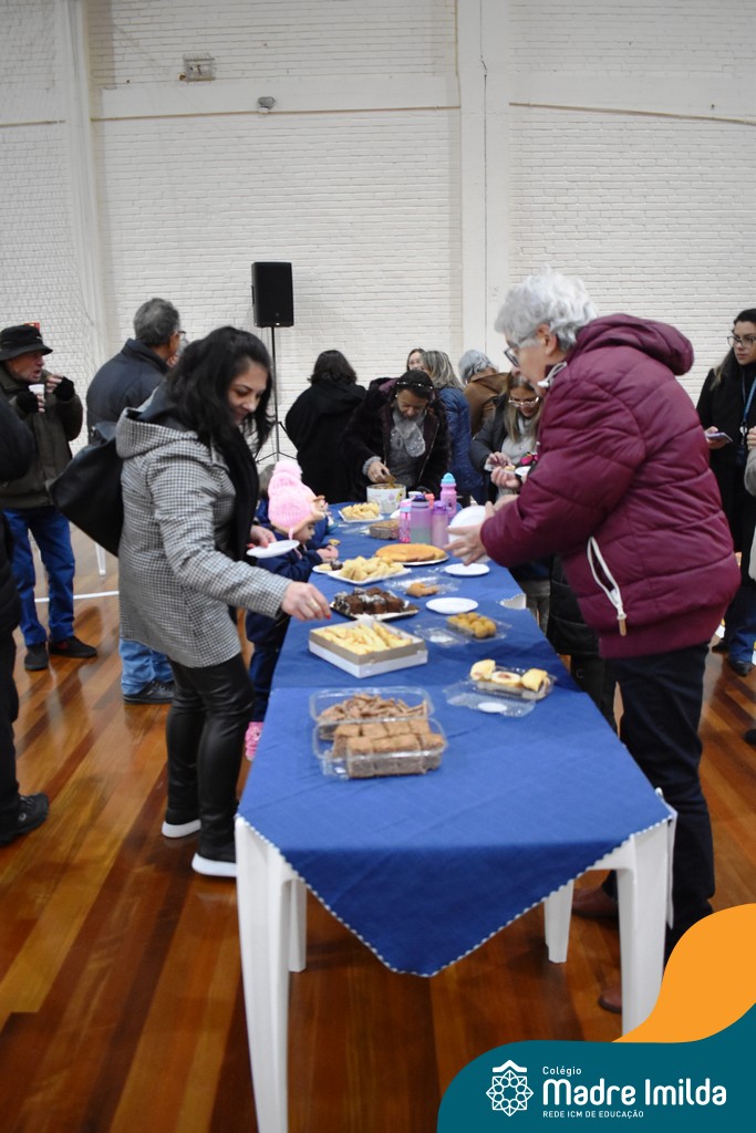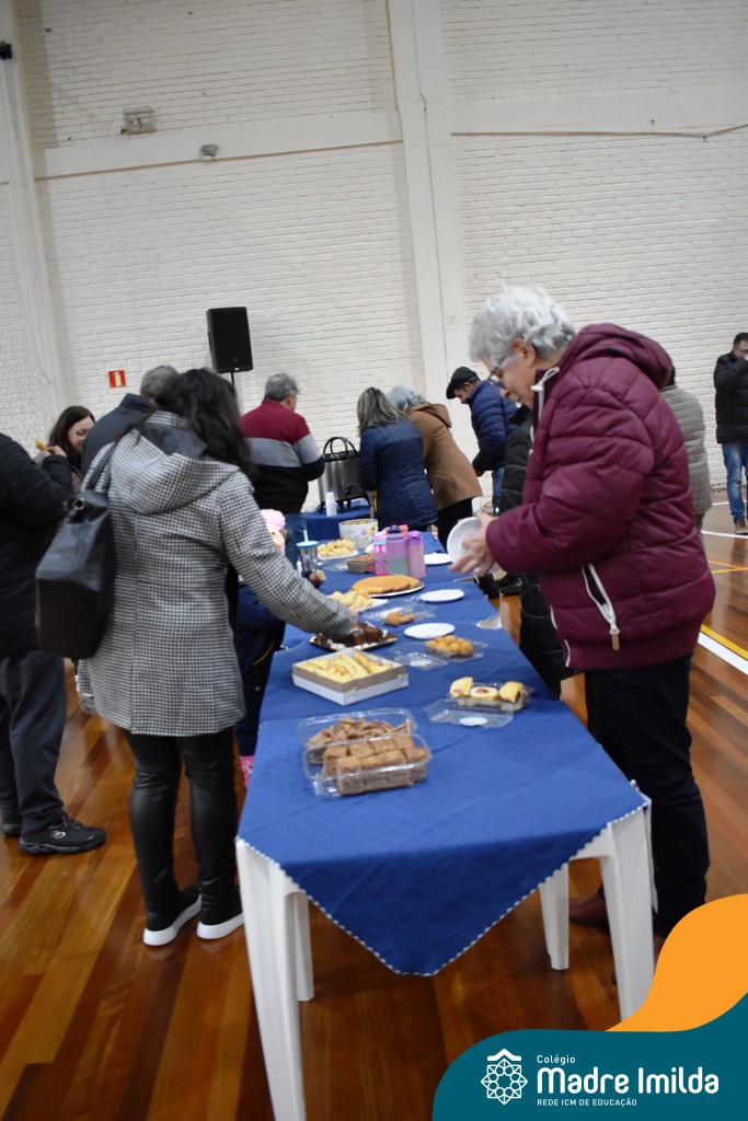 A confraternização continuou com um delicioso lanche, composto por pratos preparados e trazidos pelos próprios avós. Essa partilha de alimentos não só enriqueceu o encontro, mas também proporcionou um momento de convivência e troca de experiências entre as famílias.