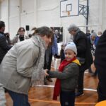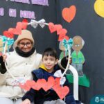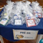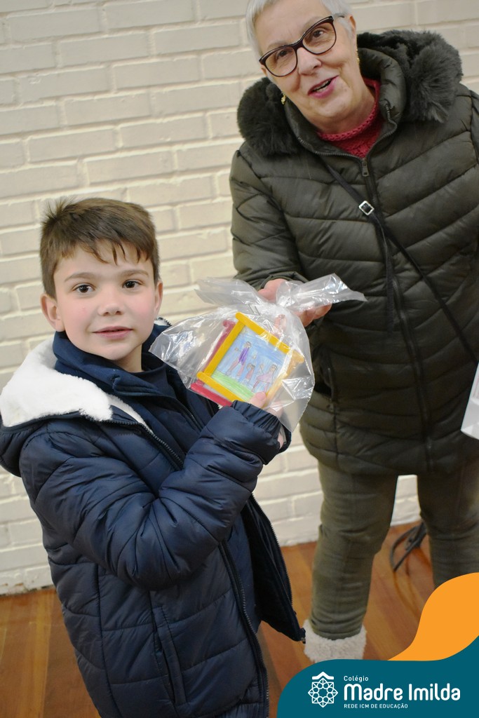 Após as brincadeiras, as crianças entregaram cartões personalizados que haviam confeccionado com muito carinho. Este gesto emocionou os avós, que receberam os presentes com sorrisos e abraços afetuosos.