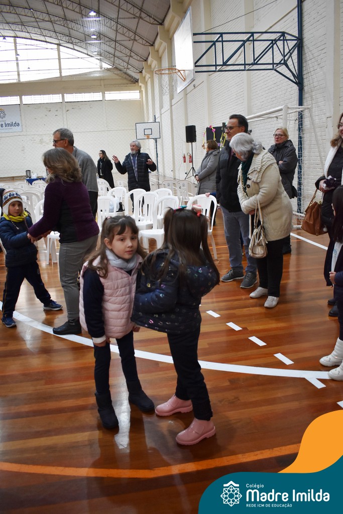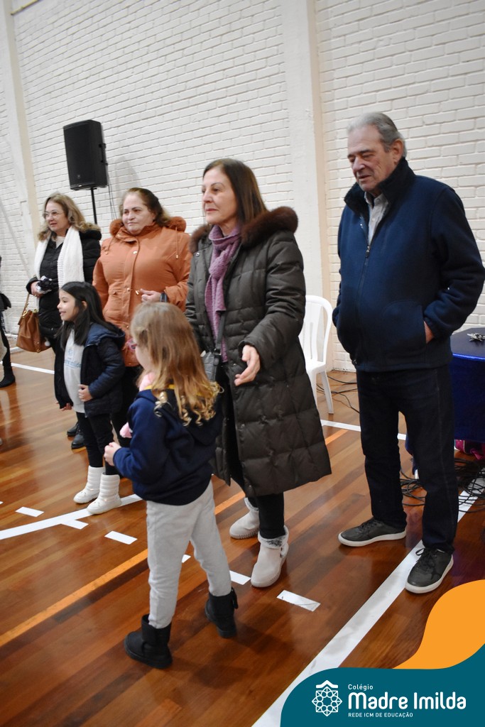 Antes do lanche, houve uma divertida brincadeira de estátuas, organizada pelo professor de educação física Eduardo e pela professora de música Isabela. Essa atividade garantiu muitos risos e interação entre as crianças e seus avós, estreitando ainda mais os vínculos afetivos.