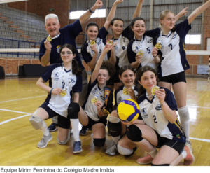 A equipe Mirim Feminina de Voleibol do Colégio Madre Imilda, conquistou o 1º lugar nos Jogos Escolares de Caxias do Sul e Isabela Sgarabotto foi escolhida como a melhor jogadora. O grupo é composto por 8 meninas e treina há dois anos sob o comando do técnico Ivan Reisdorfer.