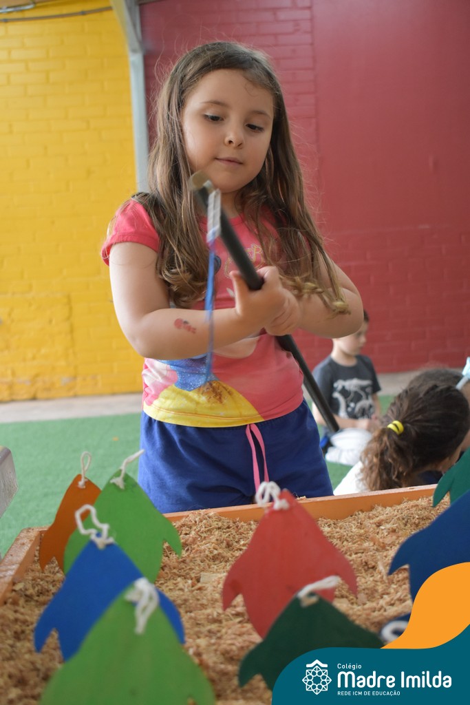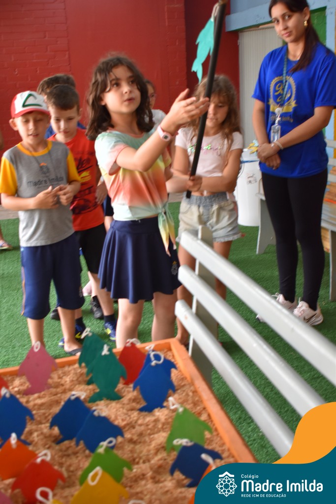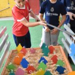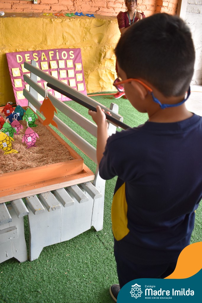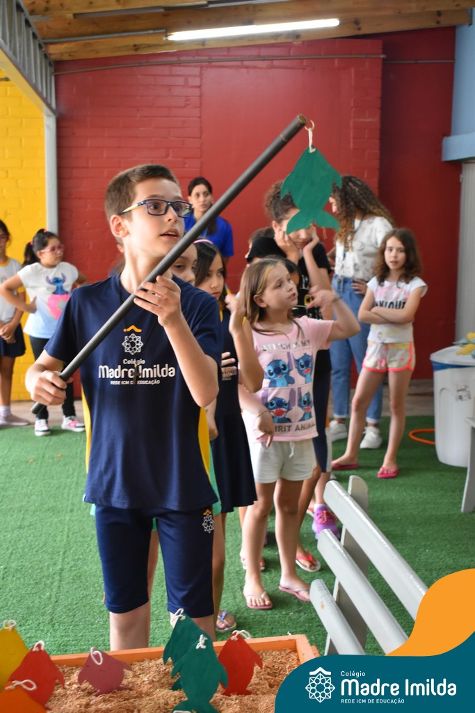 Na segunda semana, com o tema “Um Oceano de Histórias”, as atividades continuaram a cativar os alunos. A “Hora do Conto” transportou os alunos para mundos imaginários, despertando o amor pela leitura e pela imaginação. As esculturas de argila permitiram que expressassem sua criatividade de maneira única, enquanto a “Pescaria Divertida” proporcionou momentos de concentração e alegria.