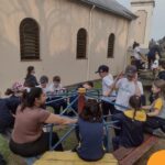 Durante a visita, os estudantes não apenas aprenderam sobre a história da imigração italiana, mas vivenciaram essa herança de forma prática. Na adega de vinhos e sucos, puderam saborear suco natural integral de uva, uma experiência que conectou as crianças diretamente à cultura e aos sabores preservados por gerações.
