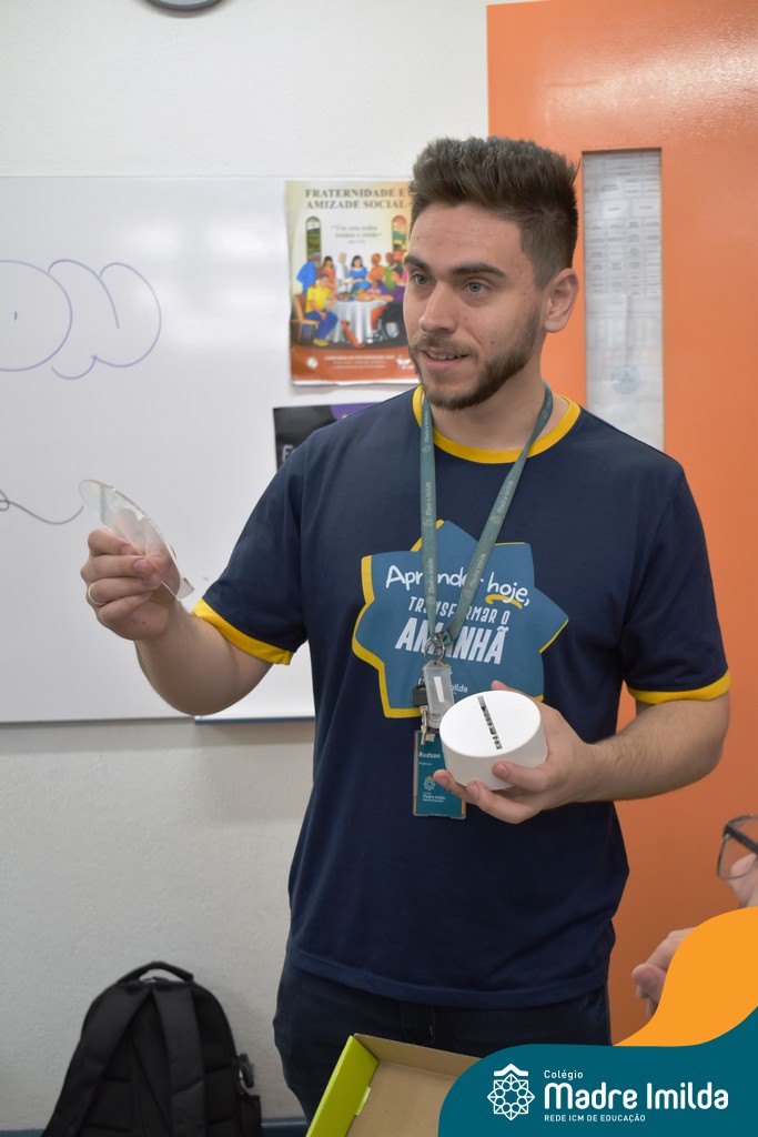 Com uma surpresa planejada com muito cuidado, os alunos presentearam os professores com luminárias personalizadas, cada uma conectada diretamente às suas disciplinas. Para o professor Rudson, que ensina Física e Astronomia, a luminária representava o cosmos, um toque simbólico para quem compartilha o fascínio pelos mistérios do universo. Já a professora Amanda, que leciona Biologia, recebeu uma luminária que remetia ao DNA, uma homenagem à sua paixão pela ciência da vida.