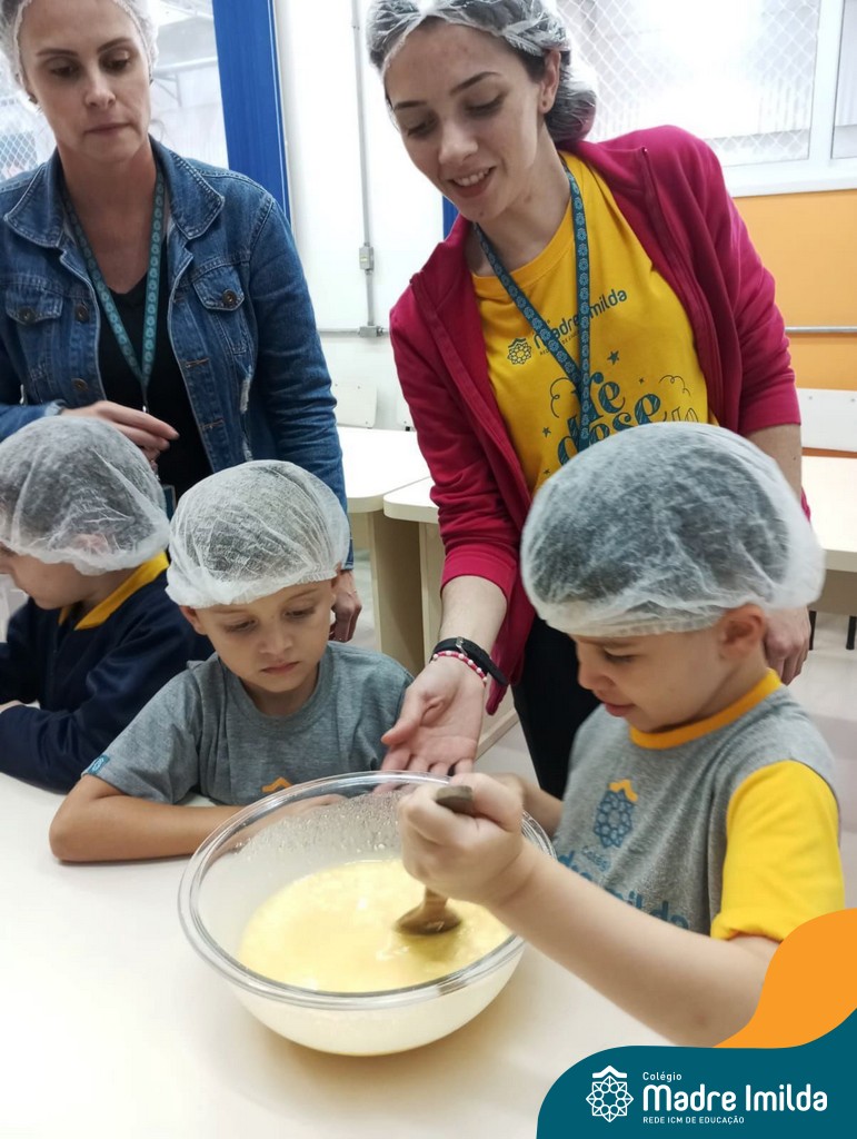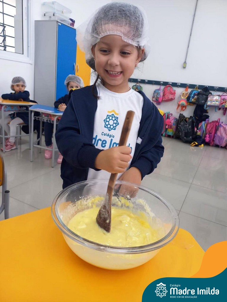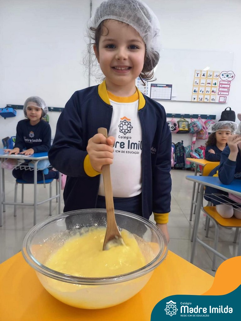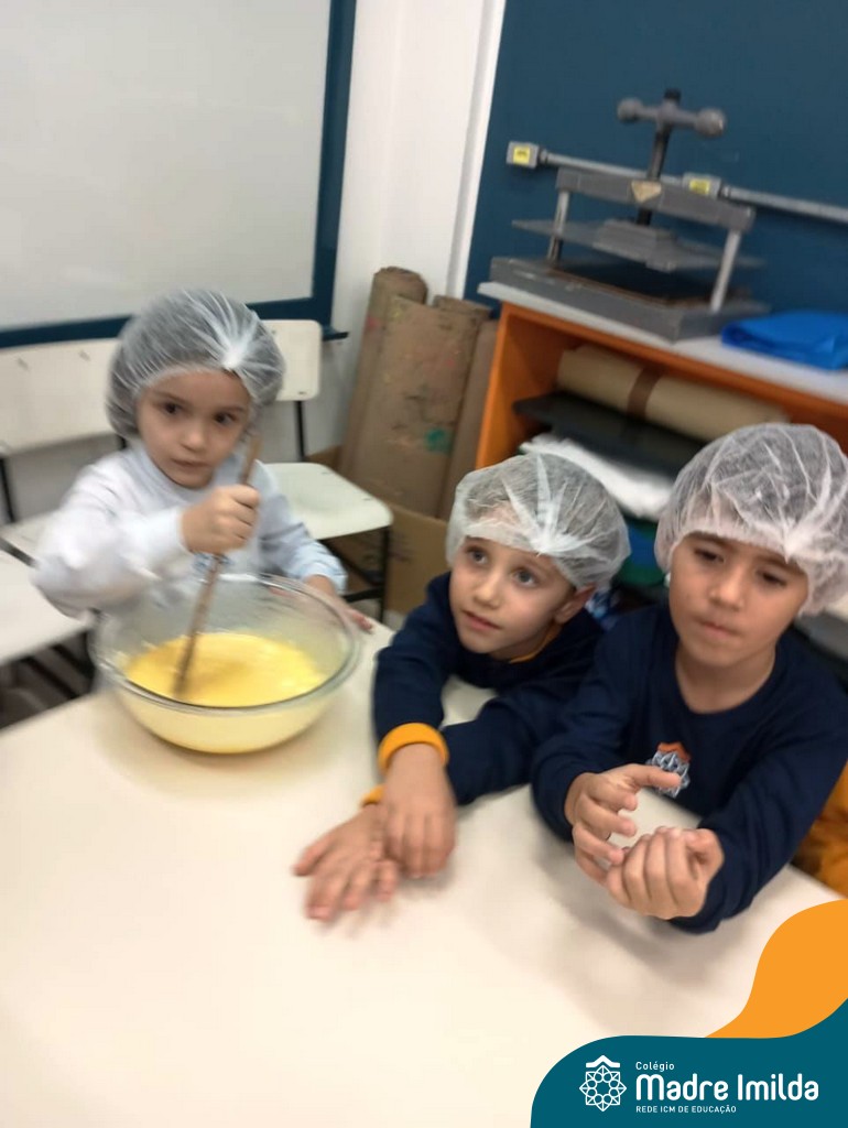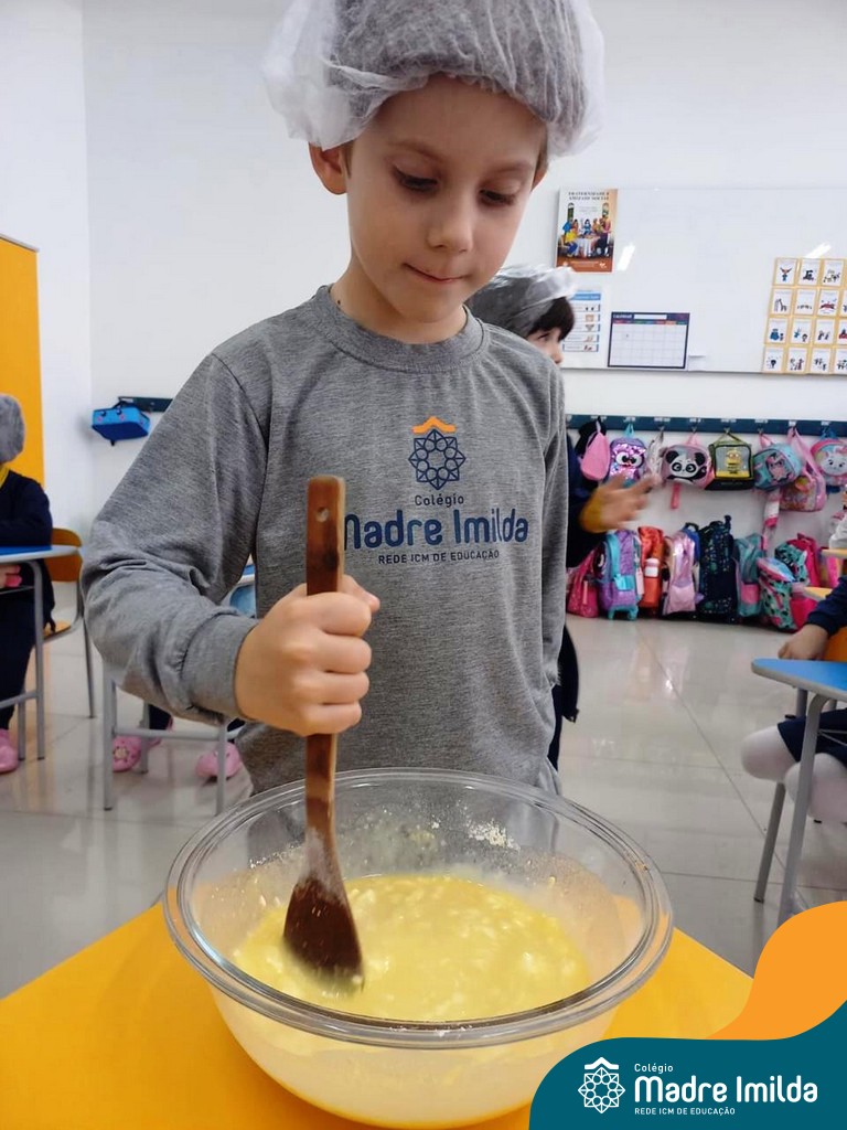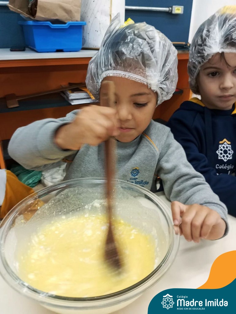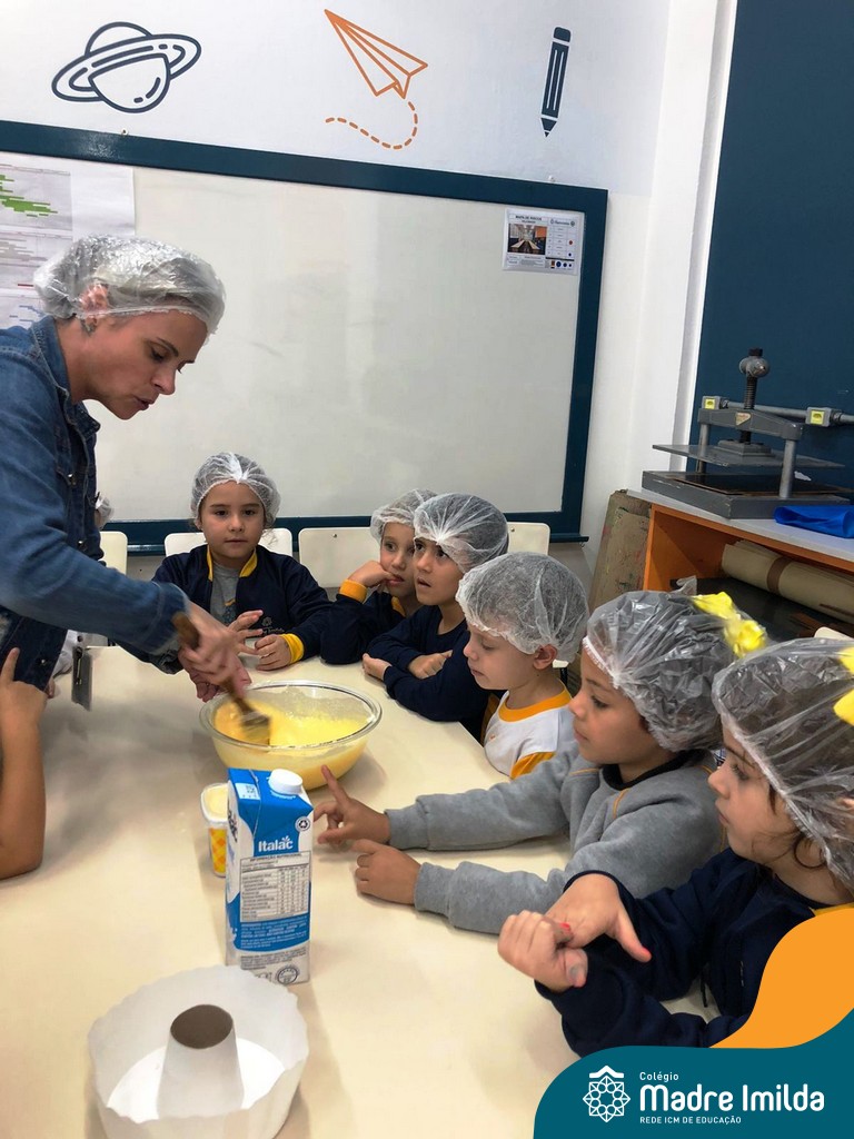 Os estudantes das turmas de PRÉ 2 da Educação Infantil participaram de uma atividade divertida na cozinha. Eles trabalharam juntos para preparar um bolo, desde a mistura da massa até o momento em que o bolo saiu do forno.