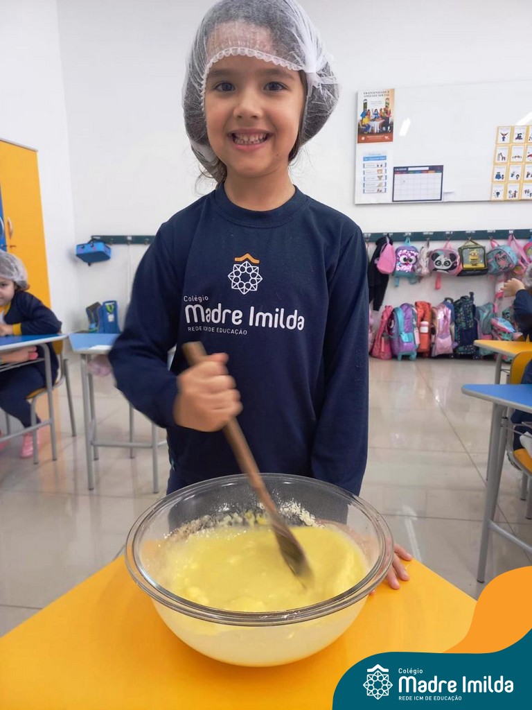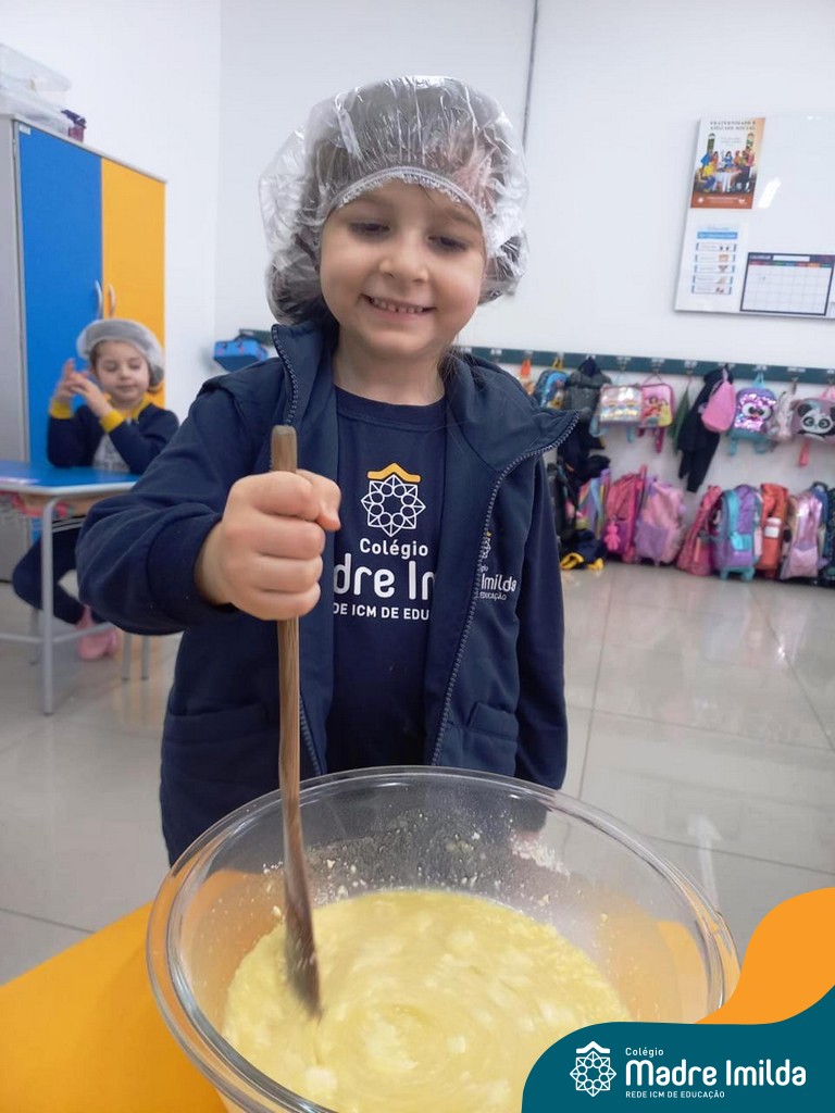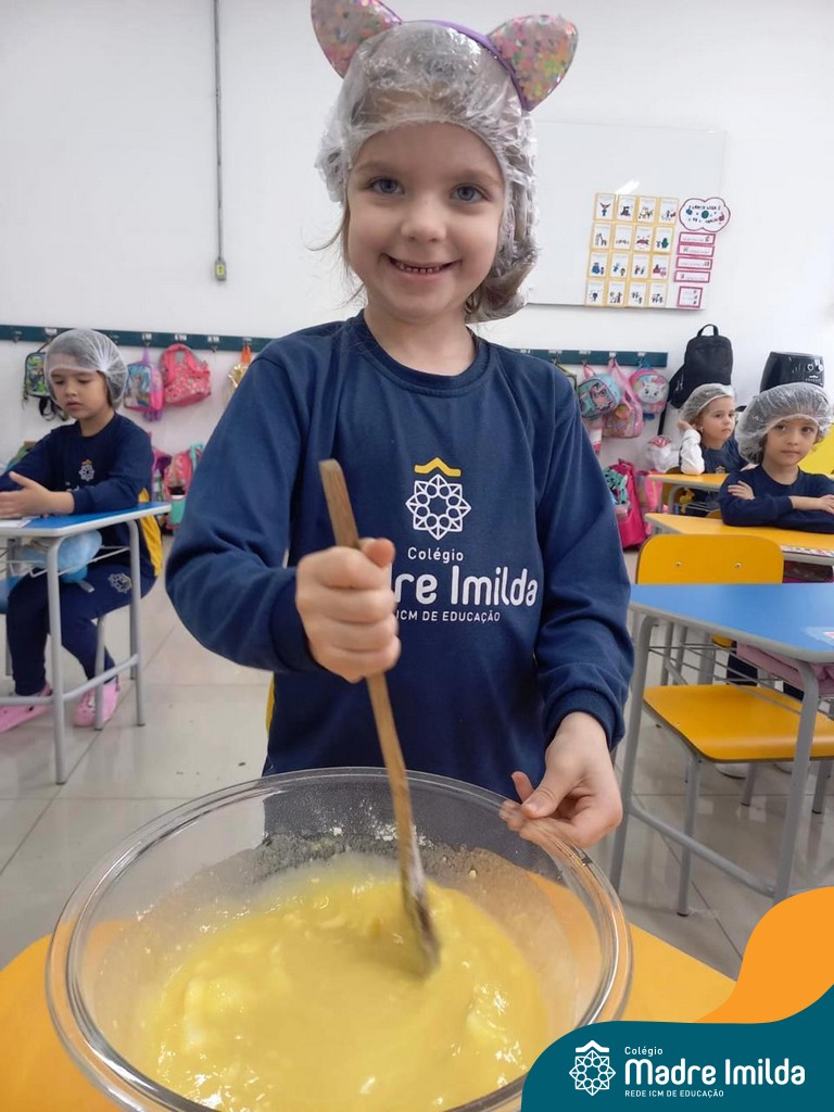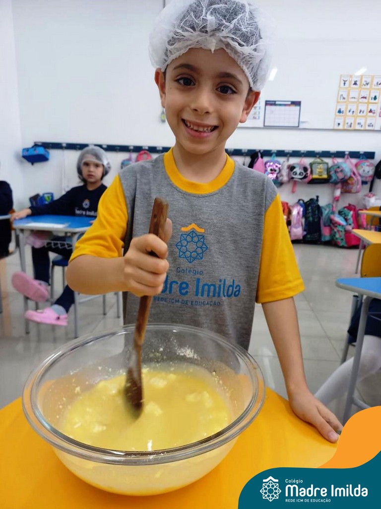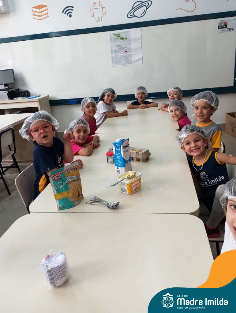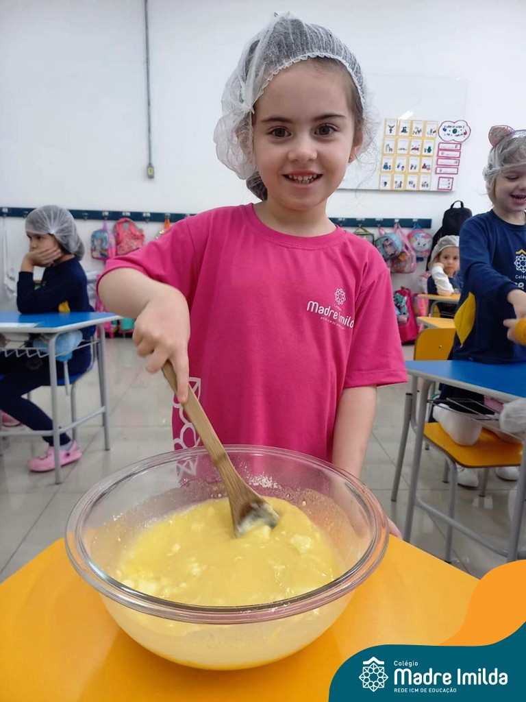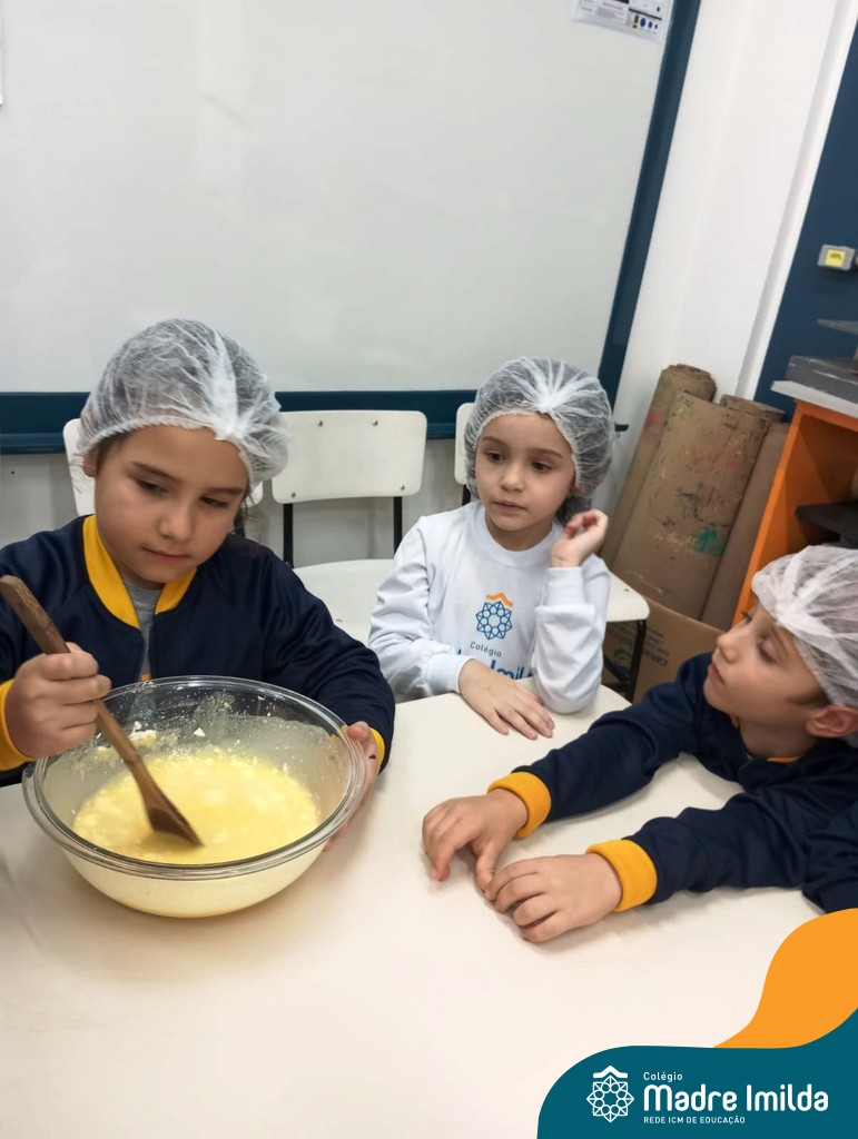 Os estudantes das turmas de PRÉ 2 da Educação Infantil participaram de uma atividade divertida na cozinha. Eles trabalharam juntos para preparar um bolo, desde a mistura da massa até o momento em que o bolo saiu do forno.