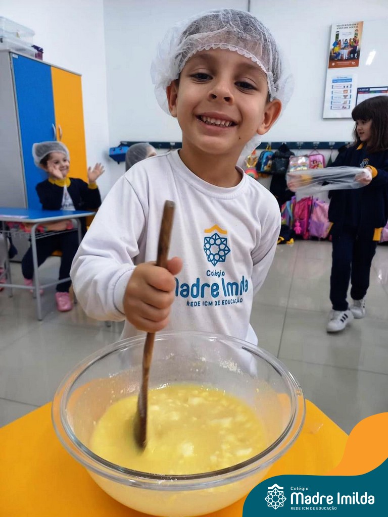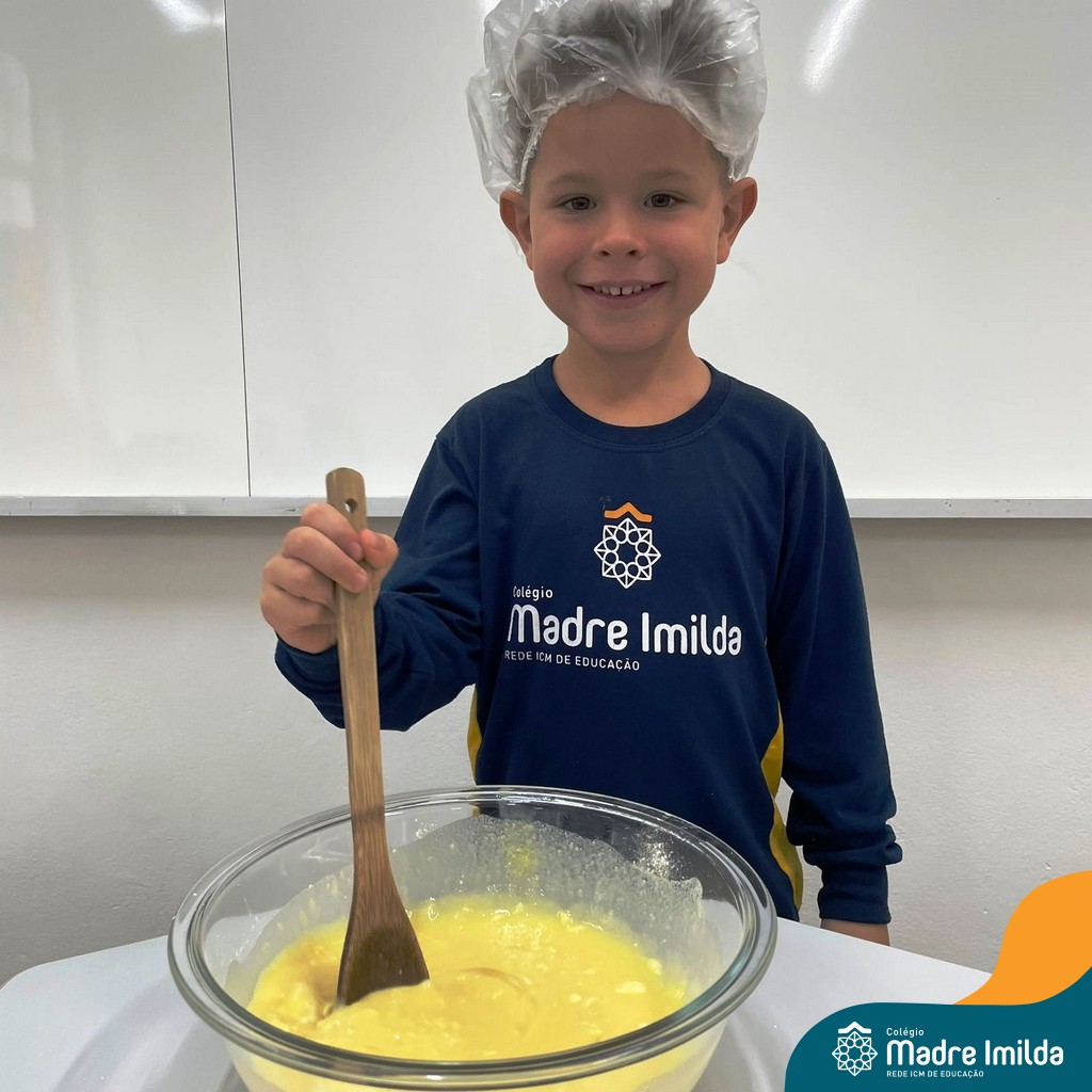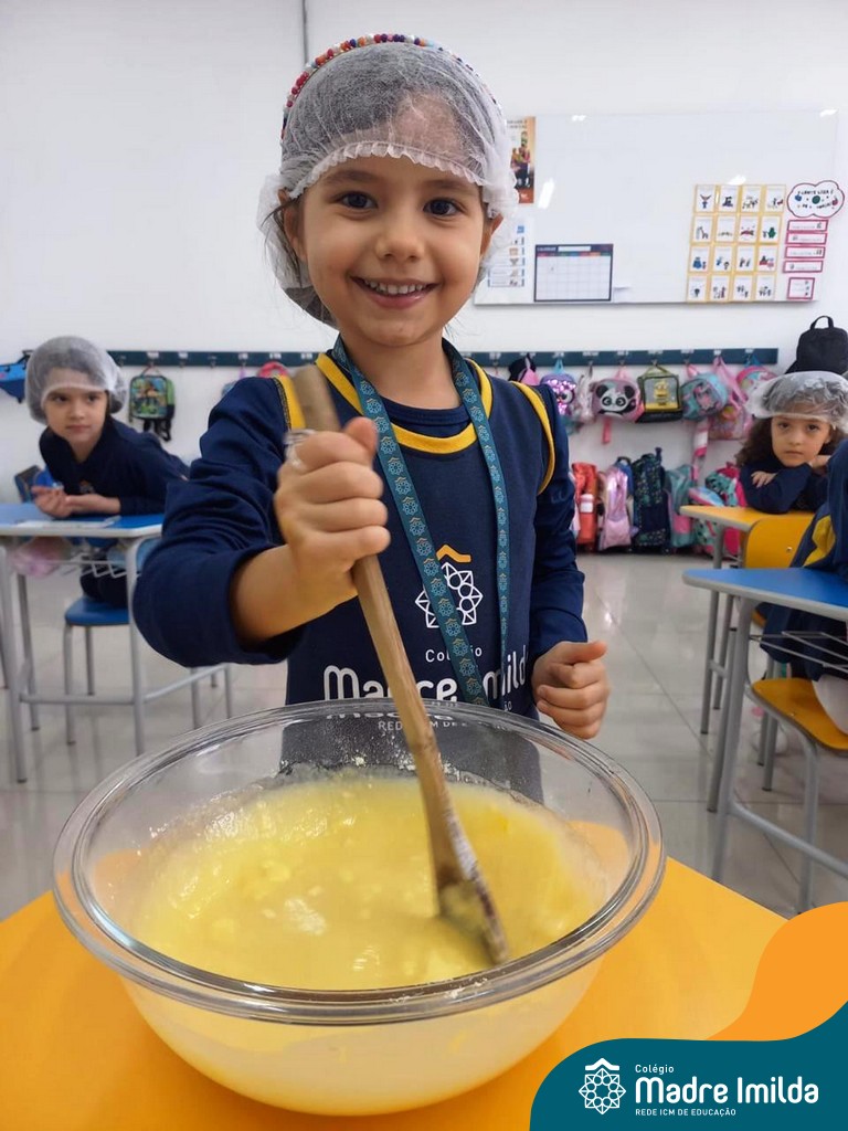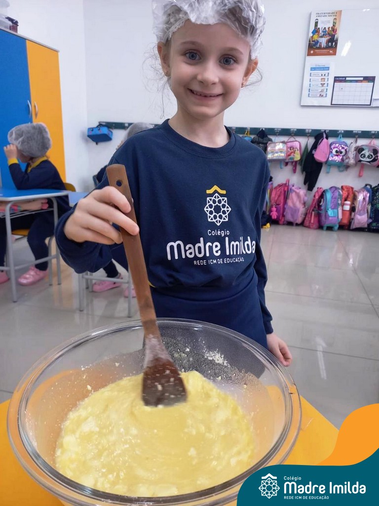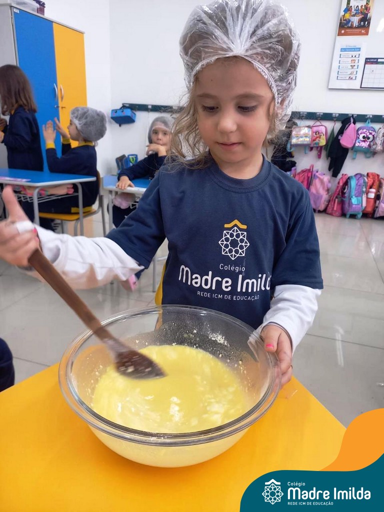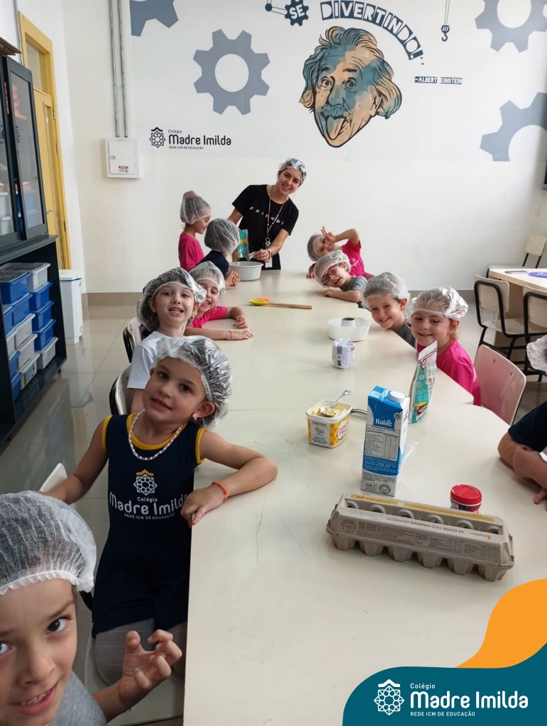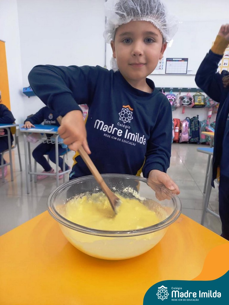 Os estudantes das turmas de PRÉ 2 da Educação Infantil participaram de uma atividade divertida na cozinha. Eles trabalharam juntos para preparar um bolo, desde a mistura da massa até o momento em que o bolo saiu do forno.