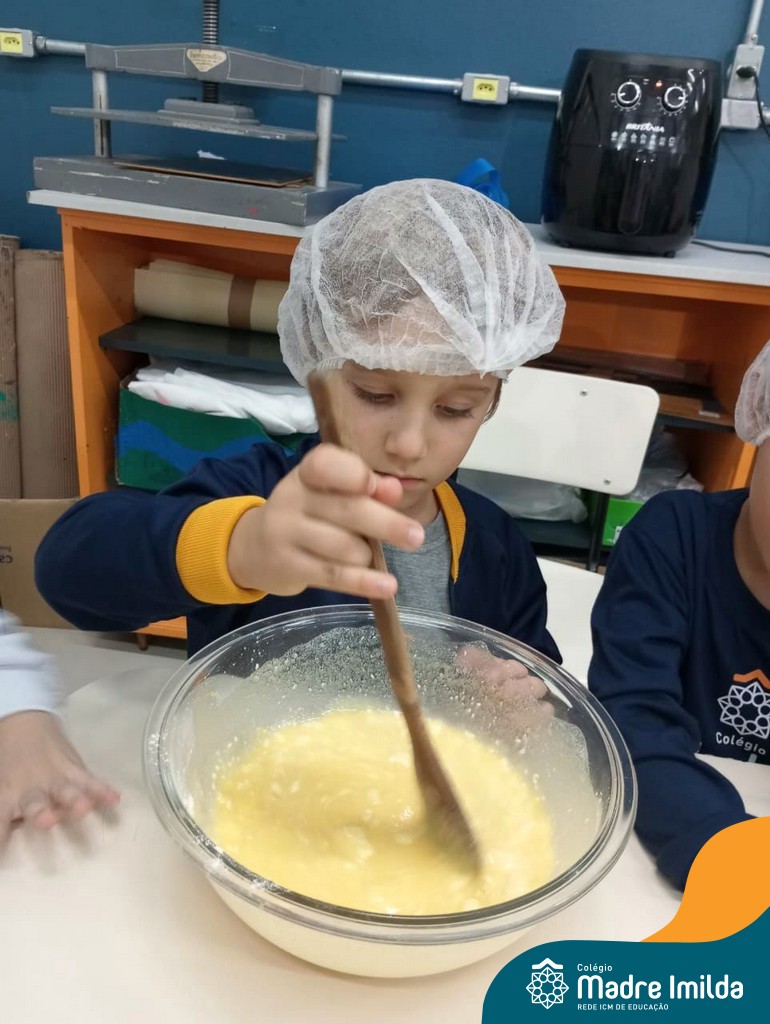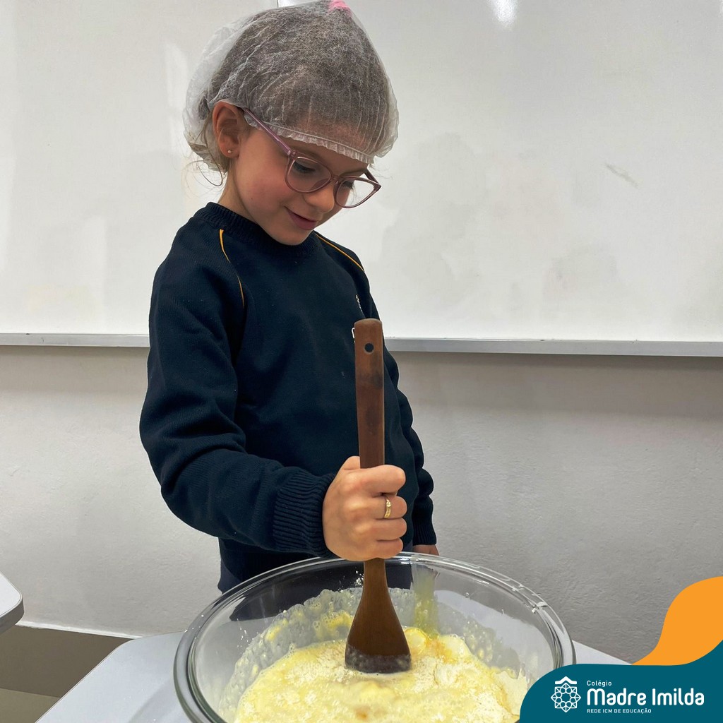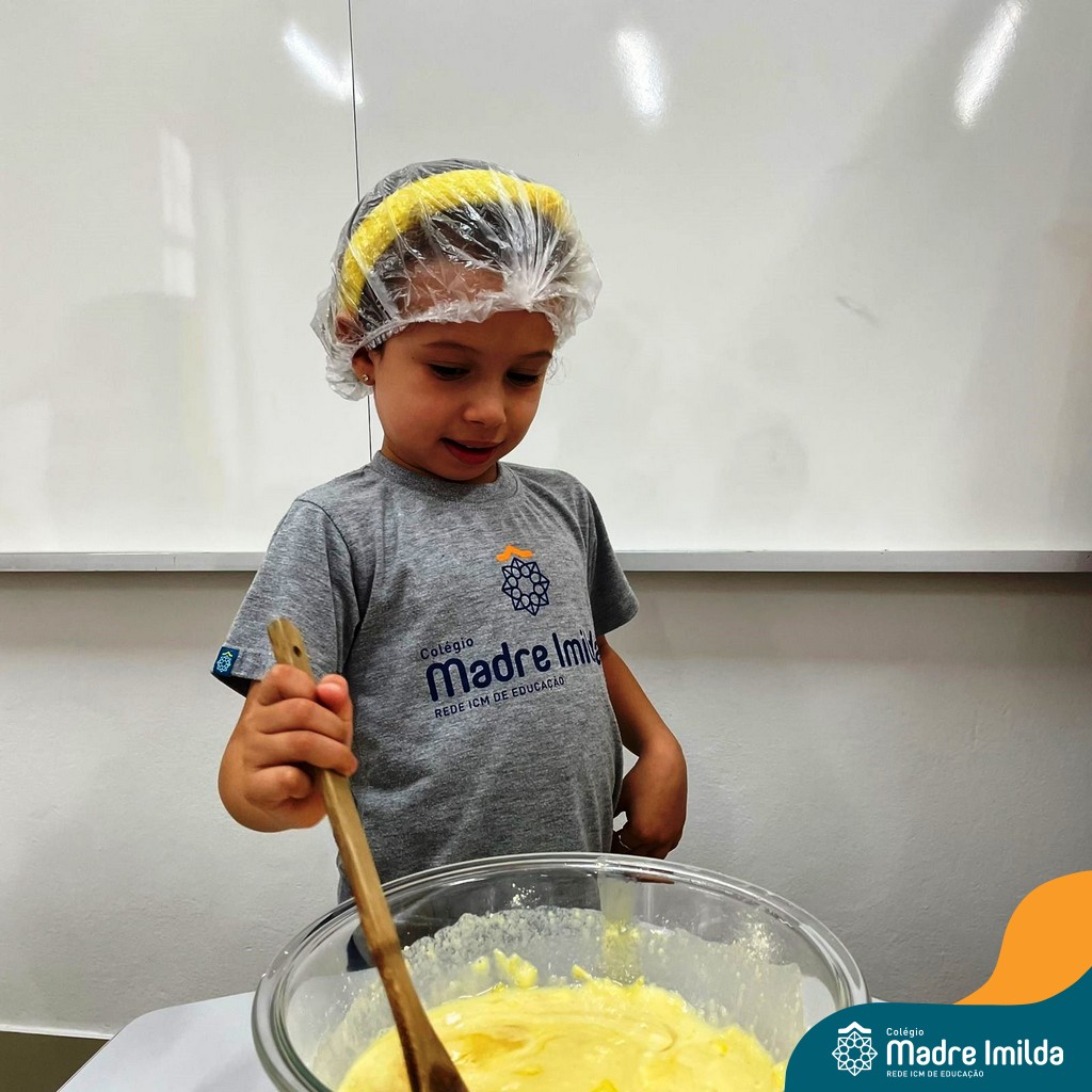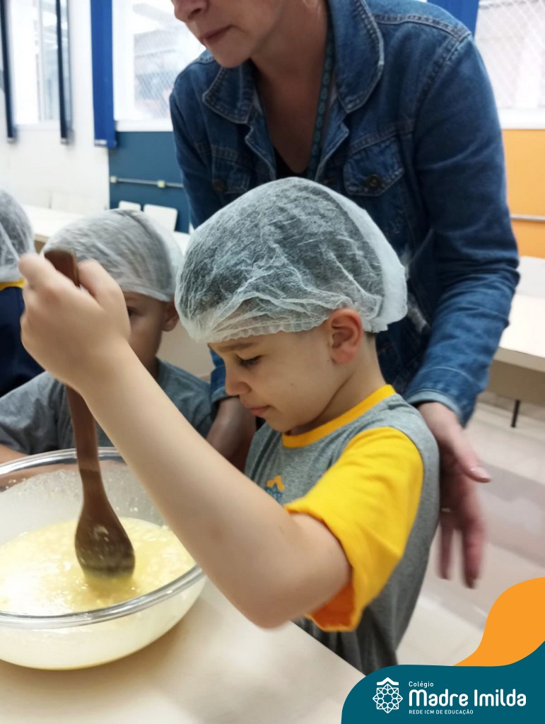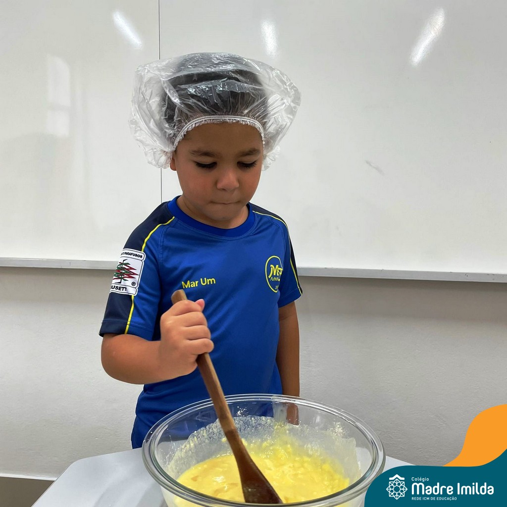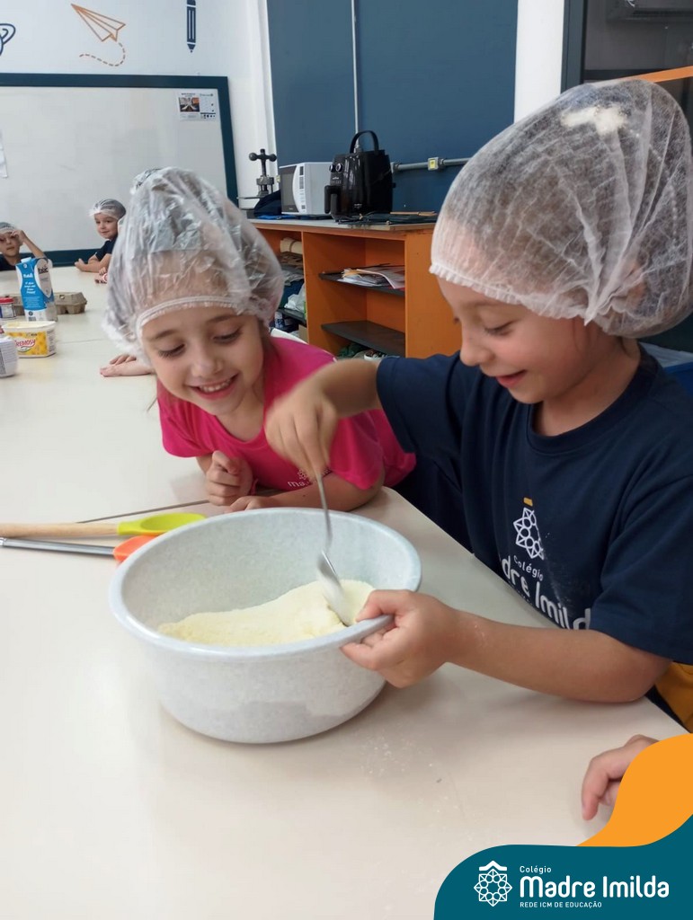 Os estudantes das turmas de PRÉ 2 da Educação Infantil participaram de uma atividade divertida na cozinha. Eles trabalharam juntos para preparar um bolo, desde a mistura da massa até o momento em que o bolo saiu do forno.