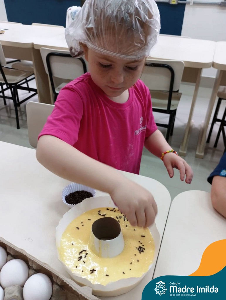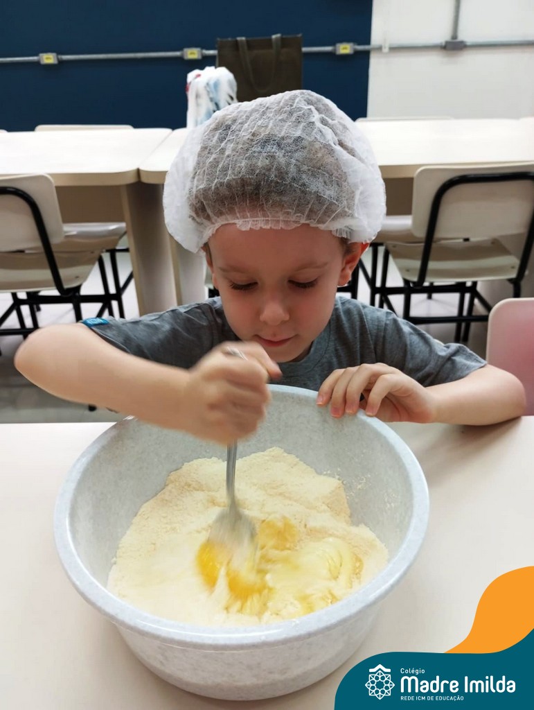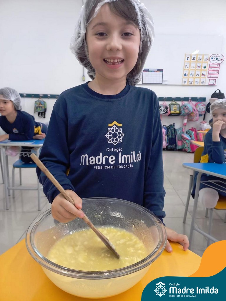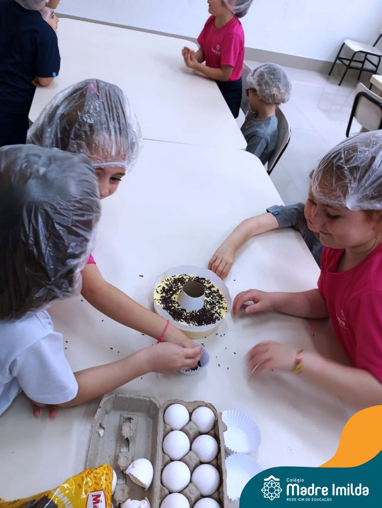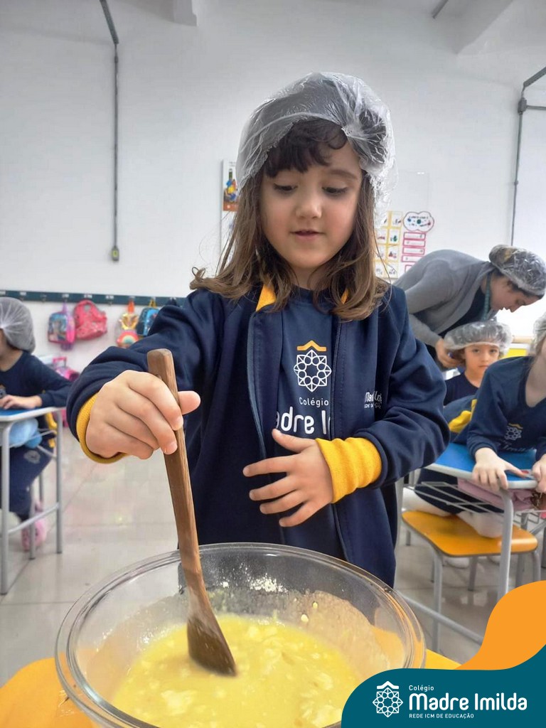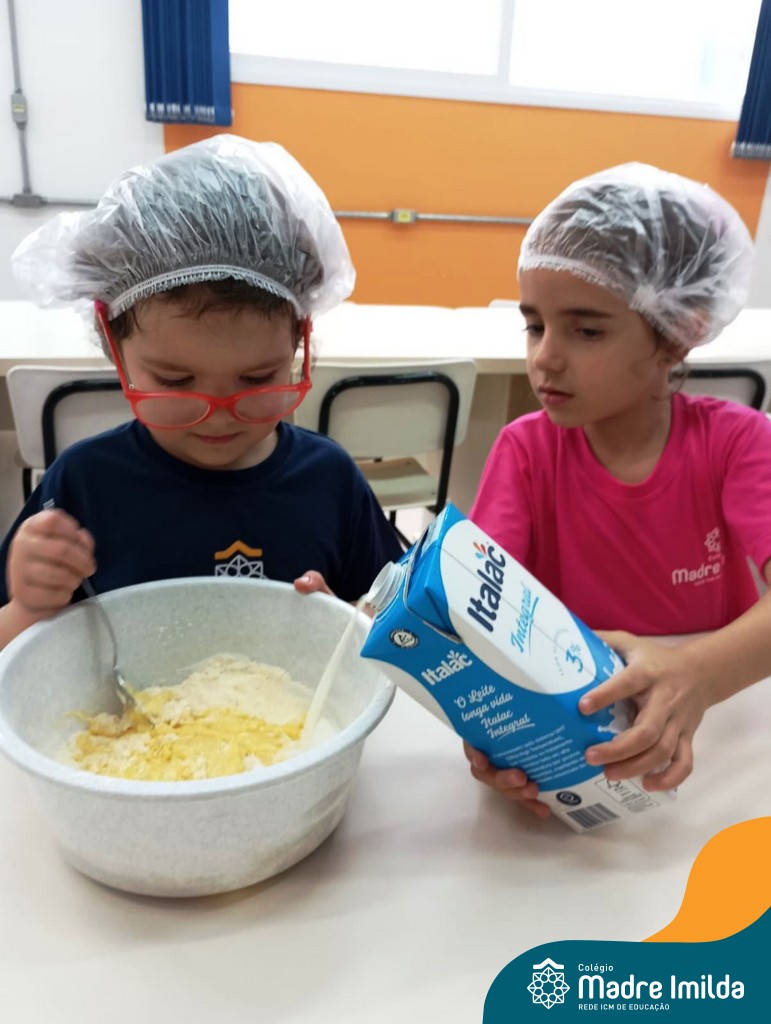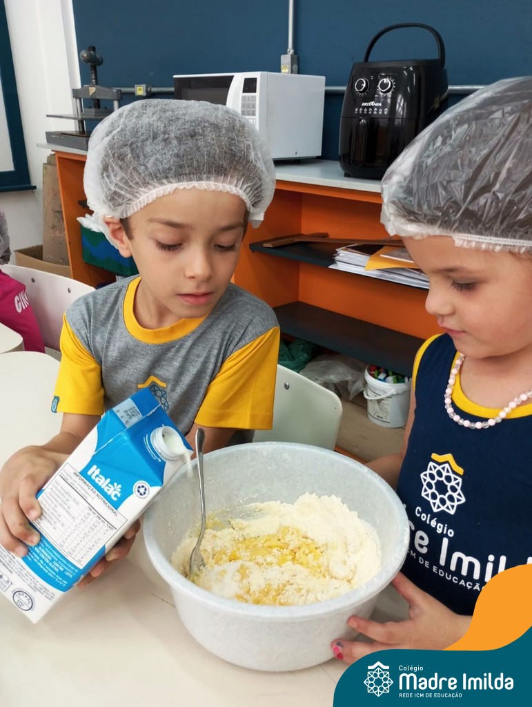 Os estudantes das turmas de PRÉ 2 da Educação Infantil participaram de uma atividade divertida na cozinha. Eles trabalharam juntos para preparar um bolo, desde a mistura da massa até o momento em que o bolo saiu do forno.