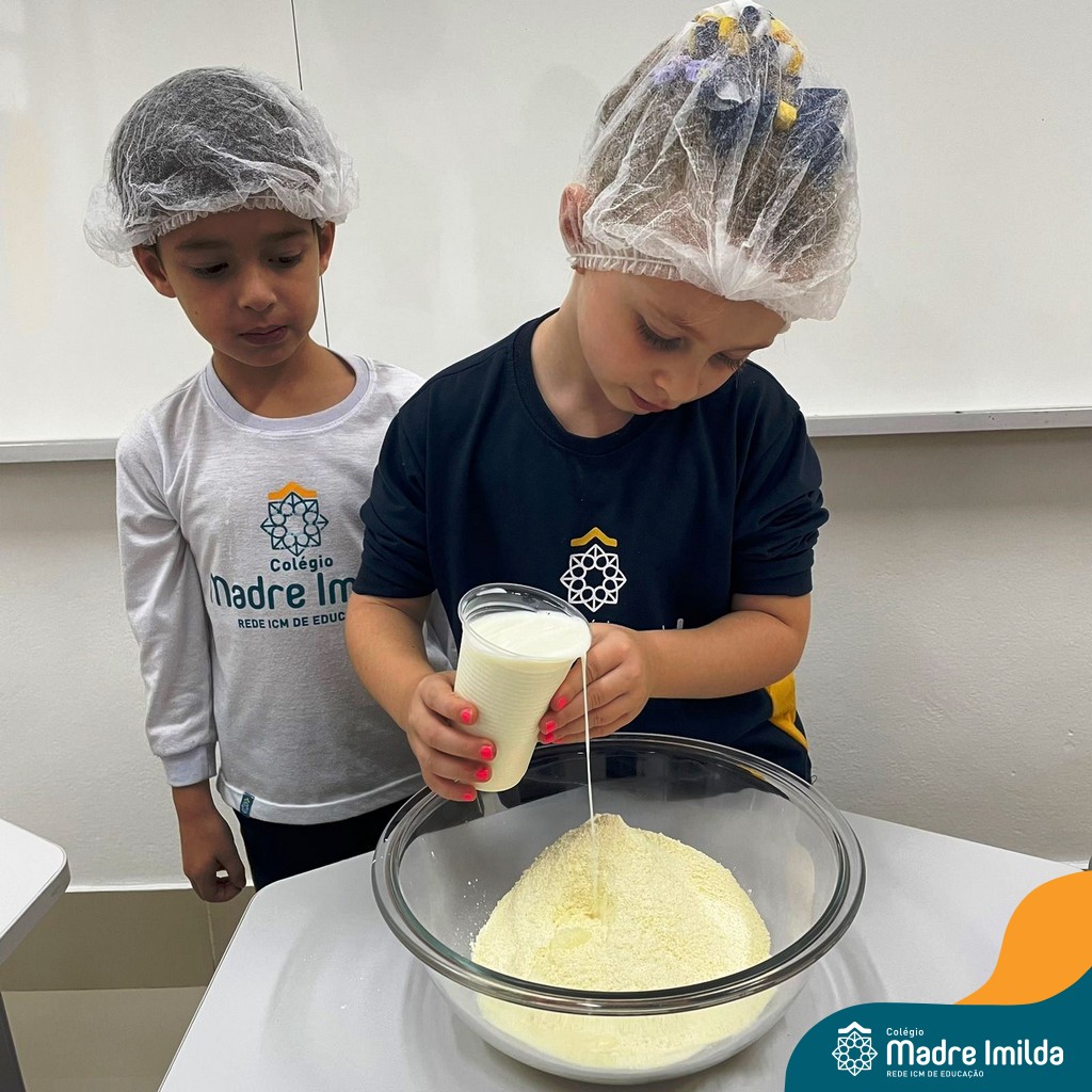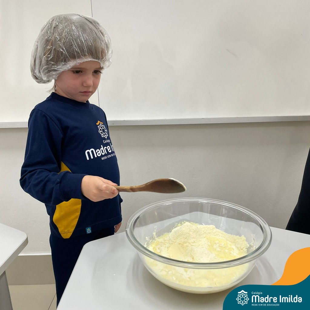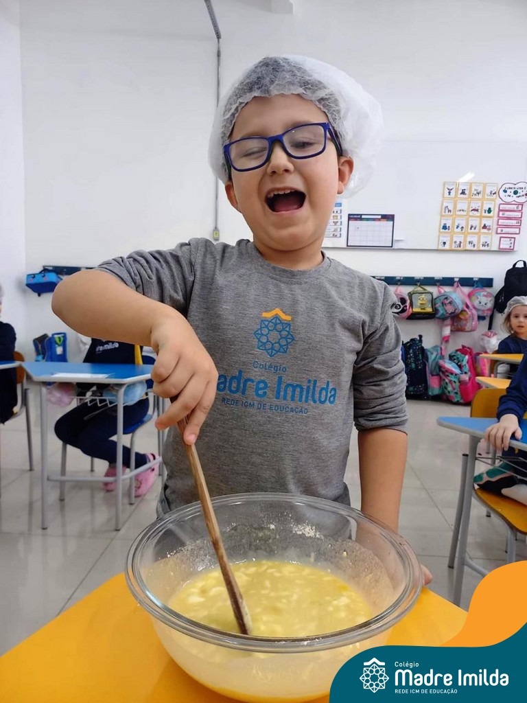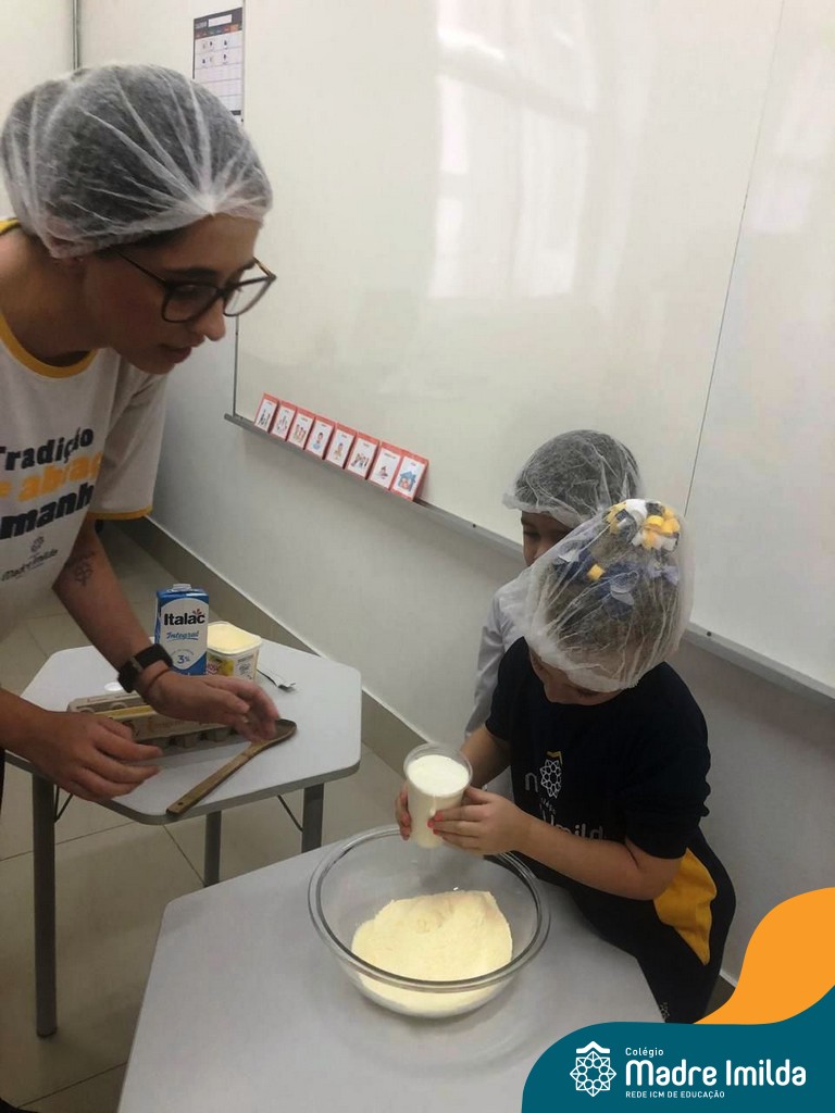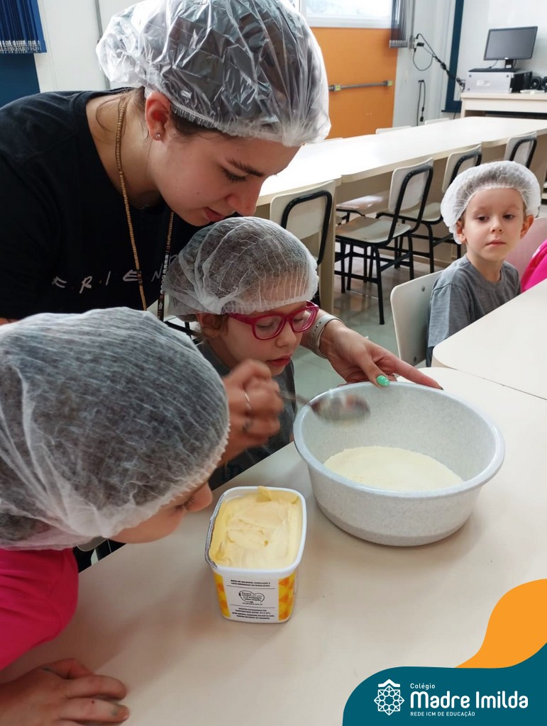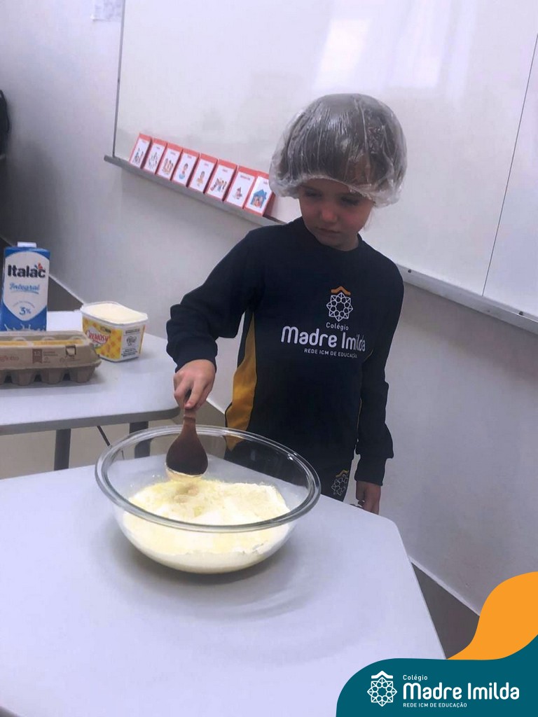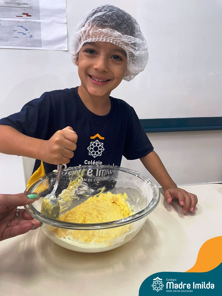 Os estudantes das turmas de PRÉ 2 da Educação Infantil participaram de uma atividade divertida na cozinha. Eles trabalharam juntos para preparar um bolo, desde a mistura da massa até o momento em que o bolo saiu do forno.
