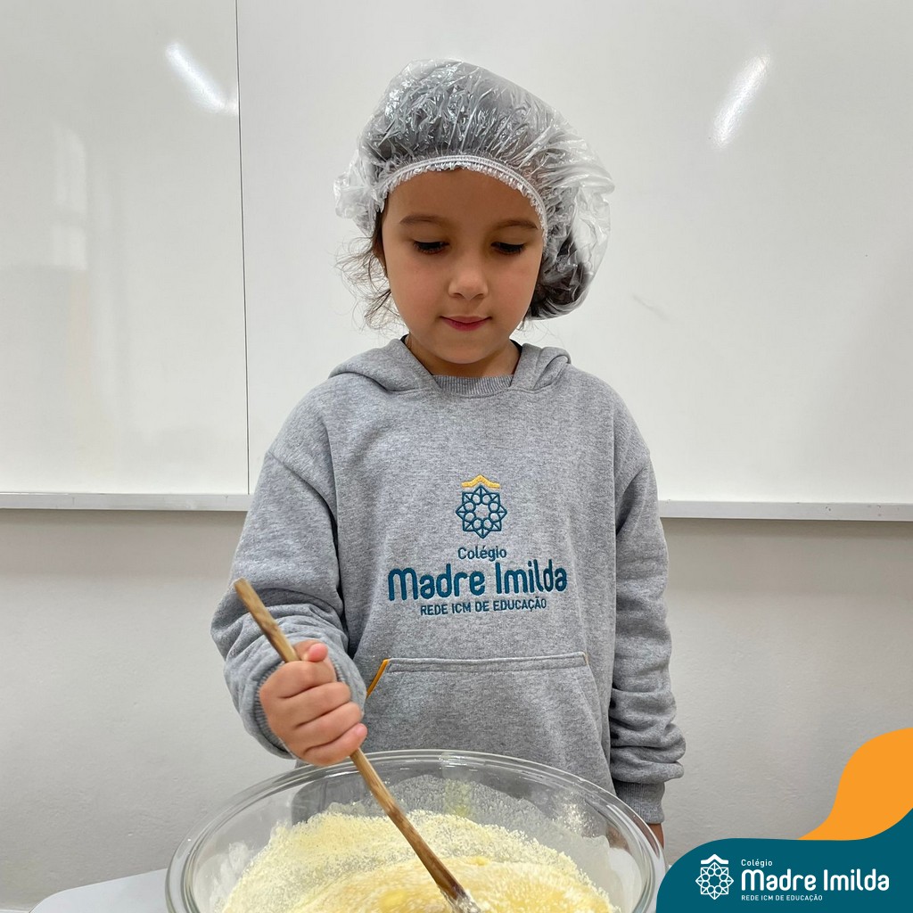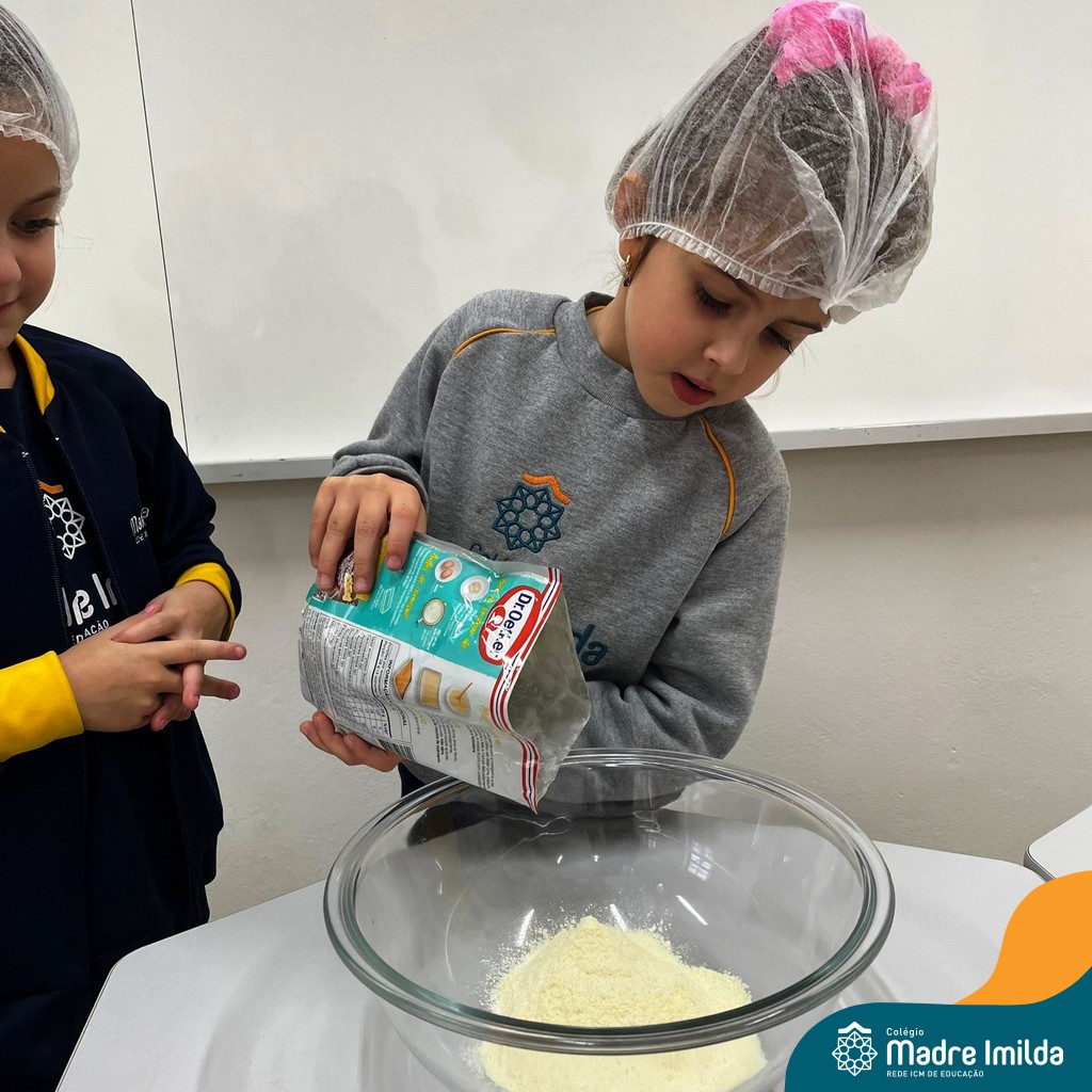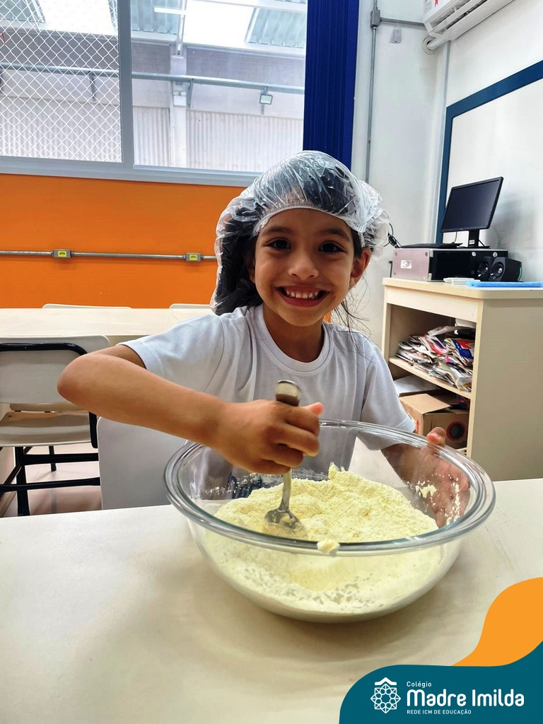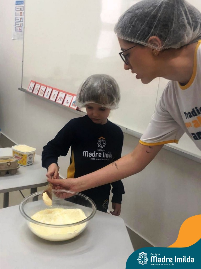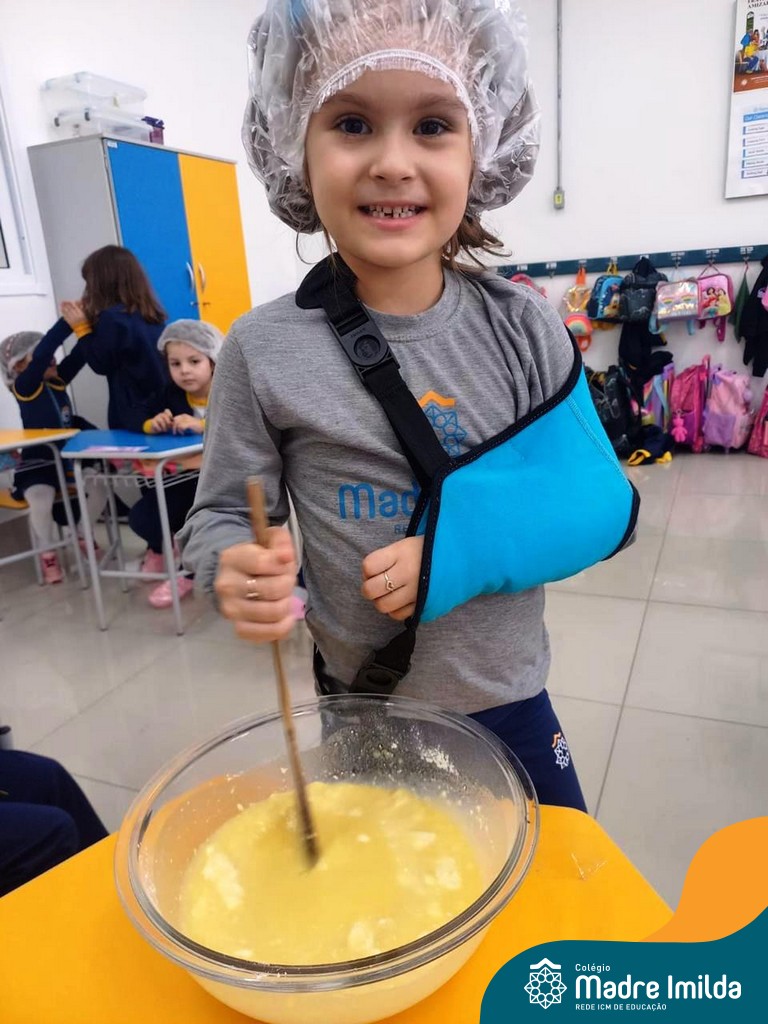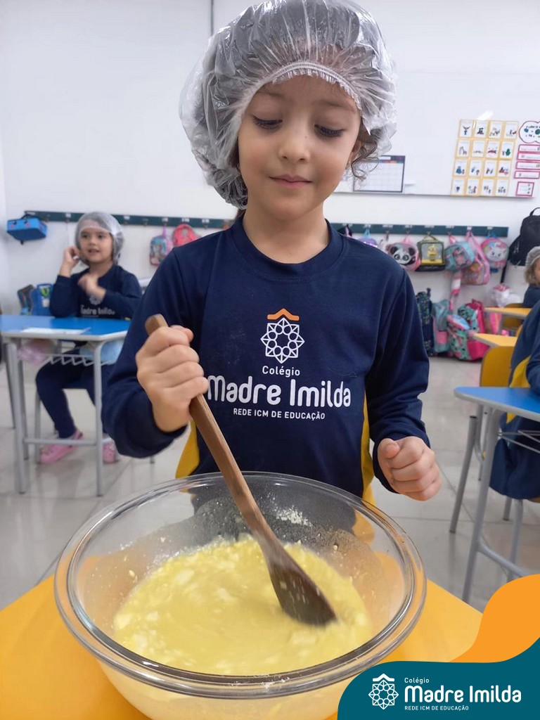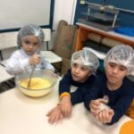Os estudantes das turmas de PRÉ 2 da Educação Infantil participaram de uma atividade divertida na cozinha. Eles trabalharam juntos para preparar um bolo, desde a mistura da massa até o momento em que o bolo saiu do forno.