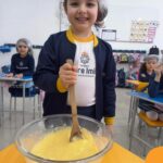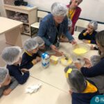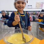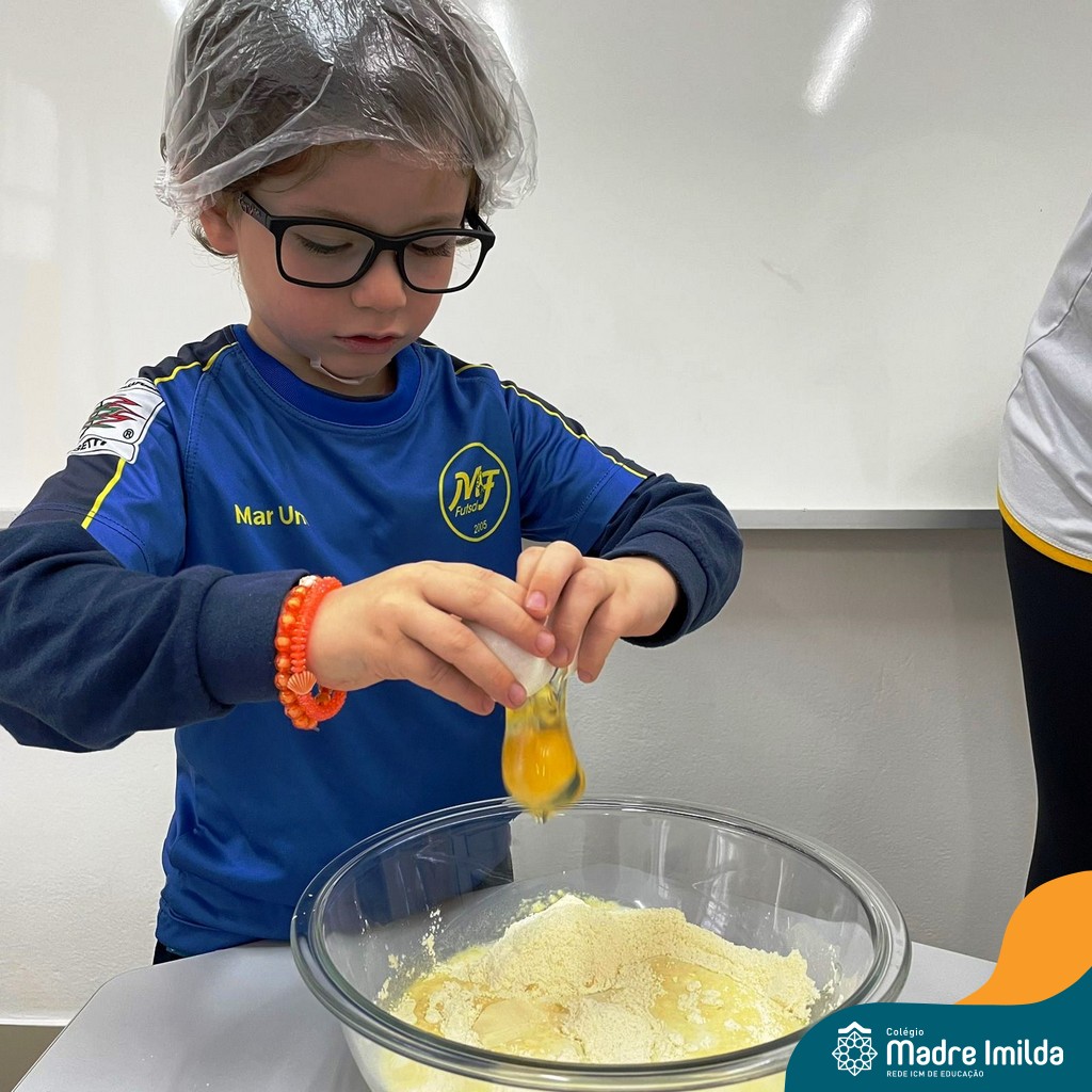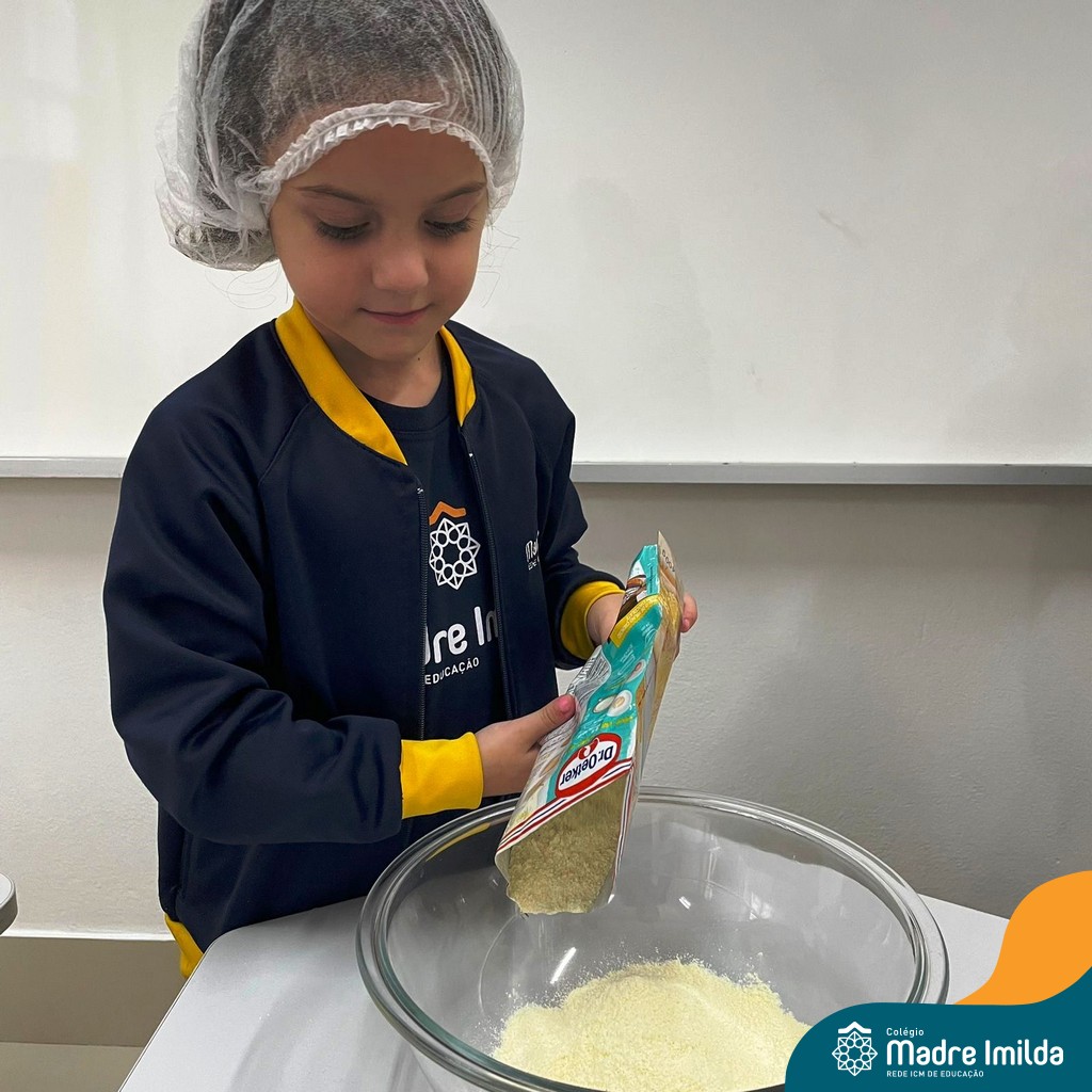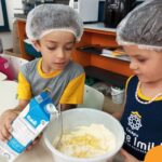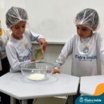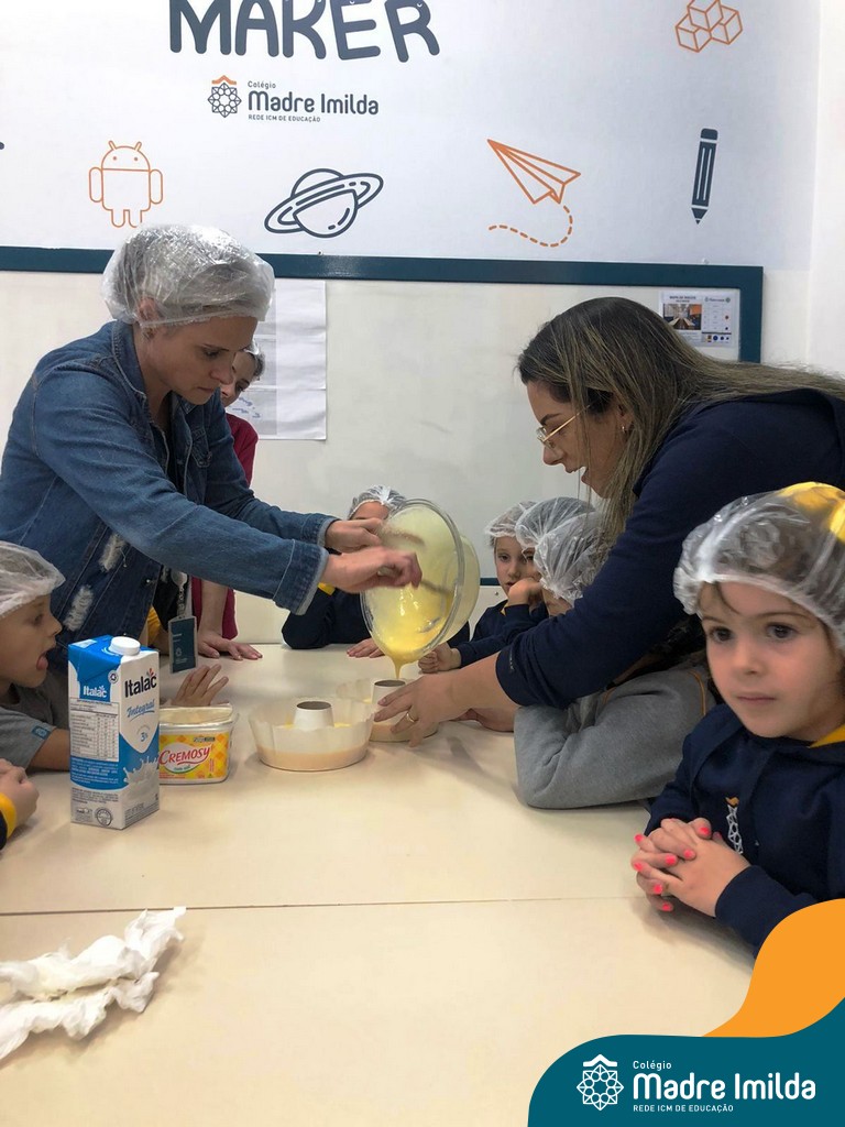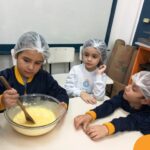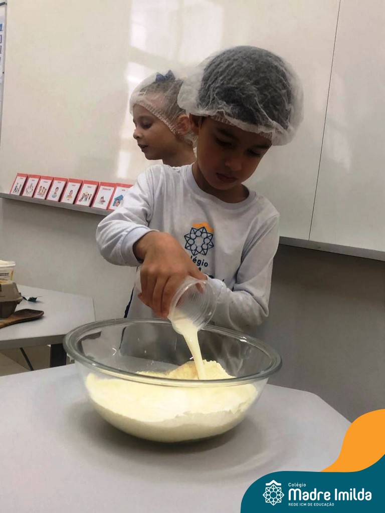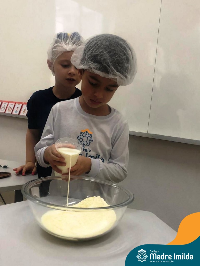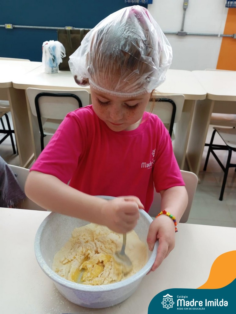 Os estudantes das turmas de PRÉ 2 da Educação Infantil participaram de uma atividade divertida na cozinha. Eles trabalharam juntos para preparar um bolo, desde a mistura da massa até o momento em que o bolo saiu do forno.