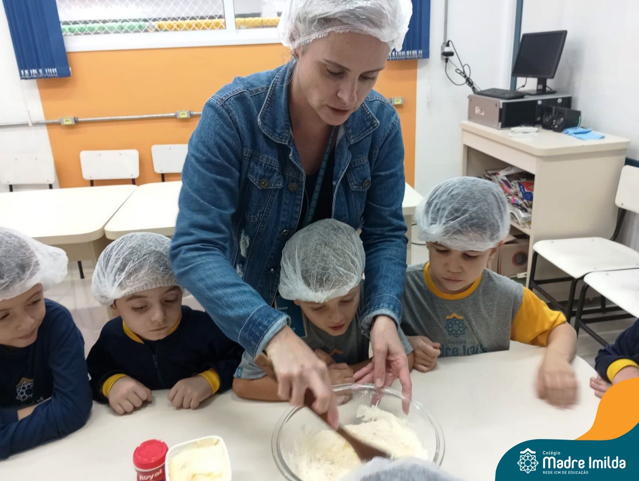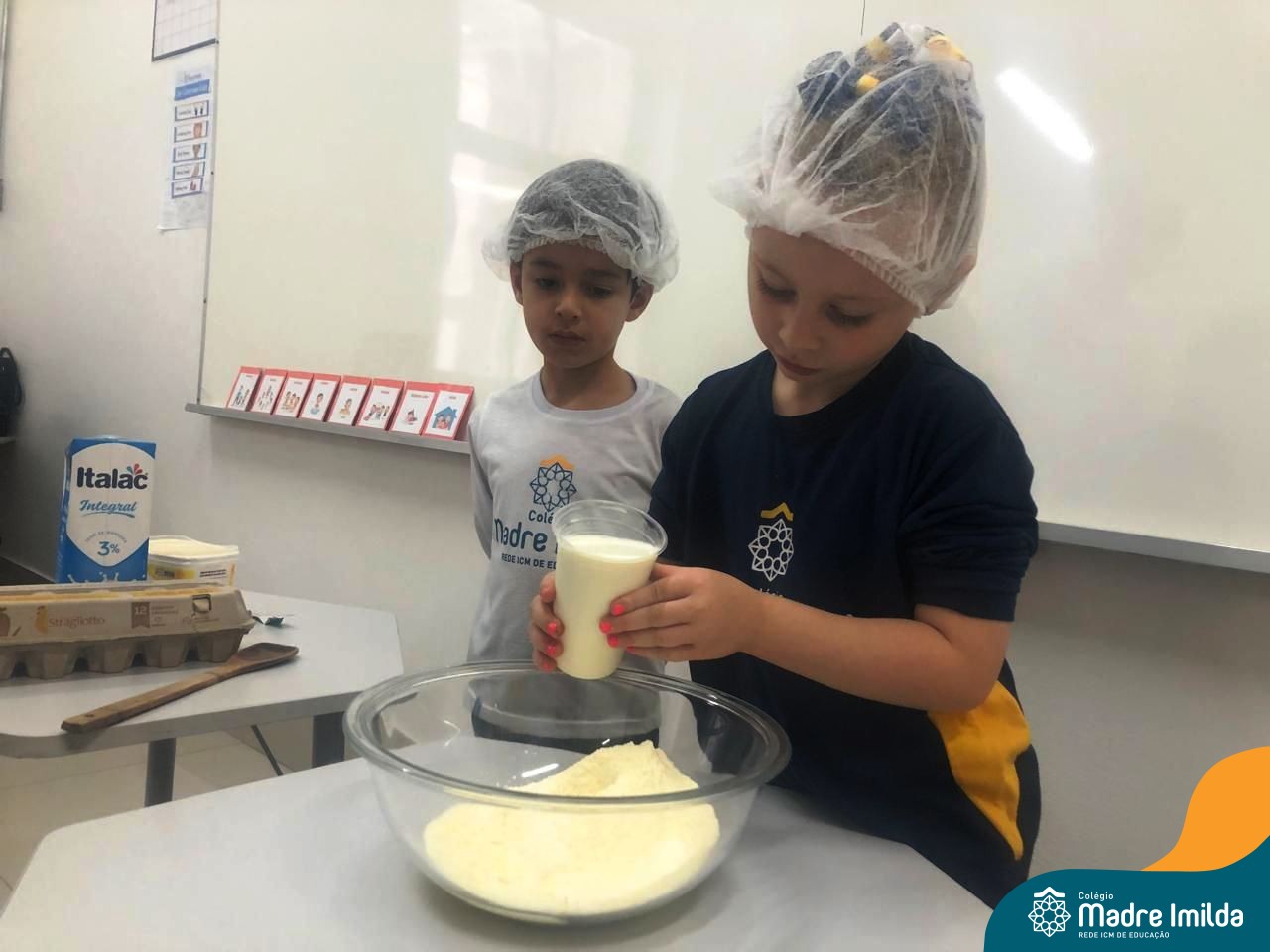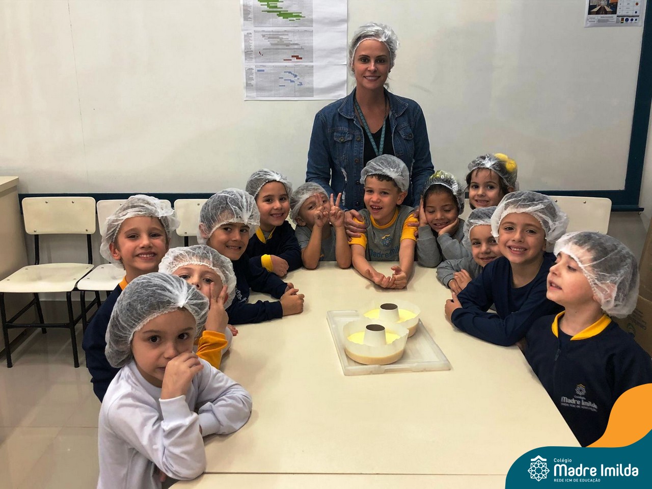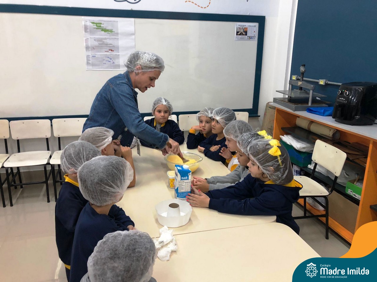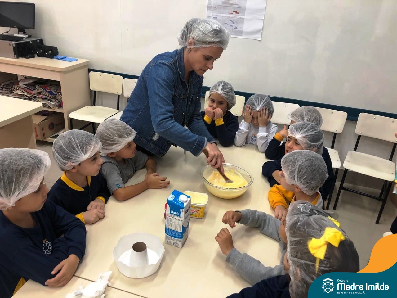 Os estudantes das turmas de PRÉ 2 da Educação Infantil participaram de uma atividade divertida na cozinha. Eles trabalharam juntos para preparar um bolo, desde a mistura da massa até o momento em que o bolo saiu do forno.