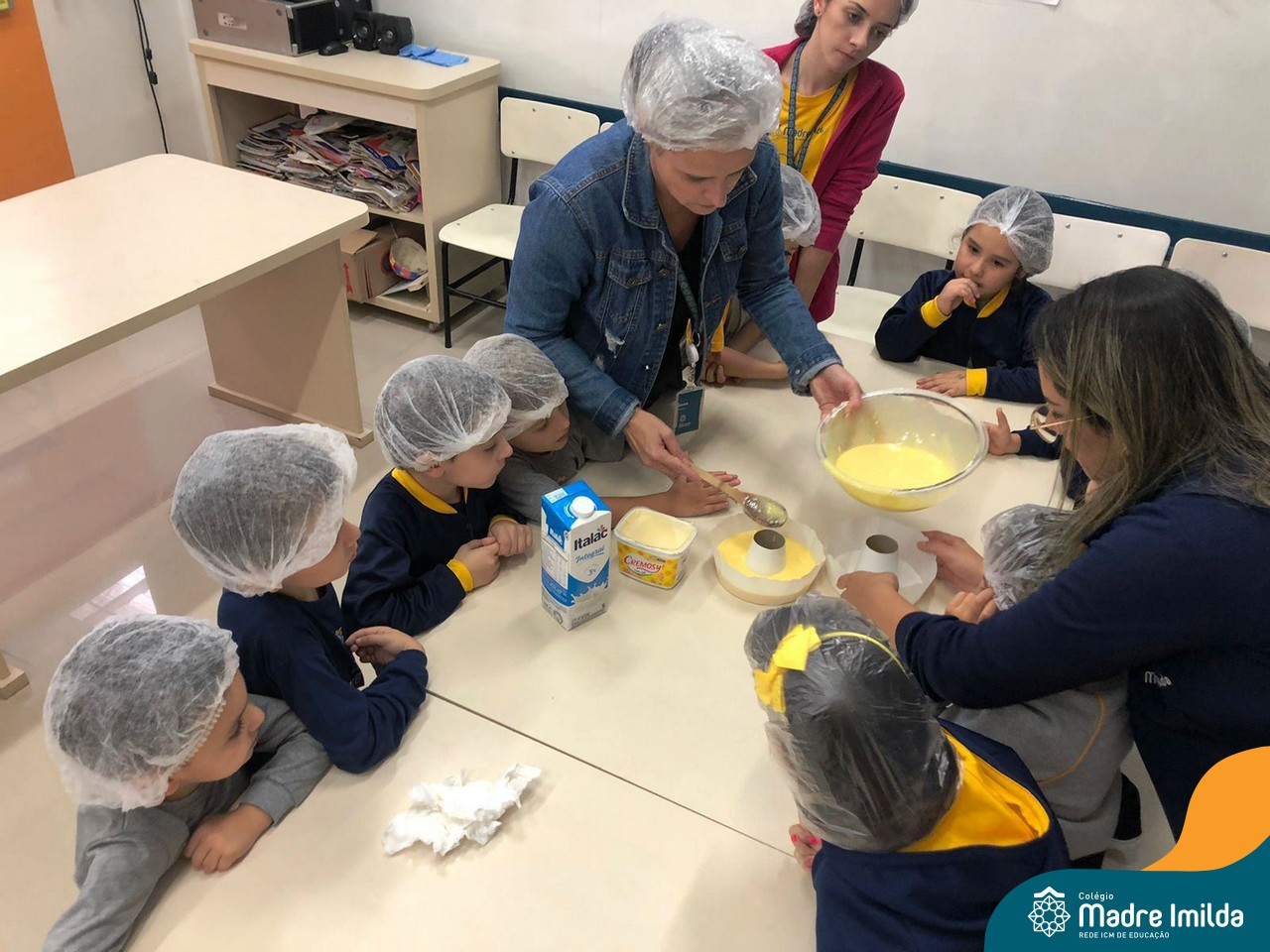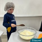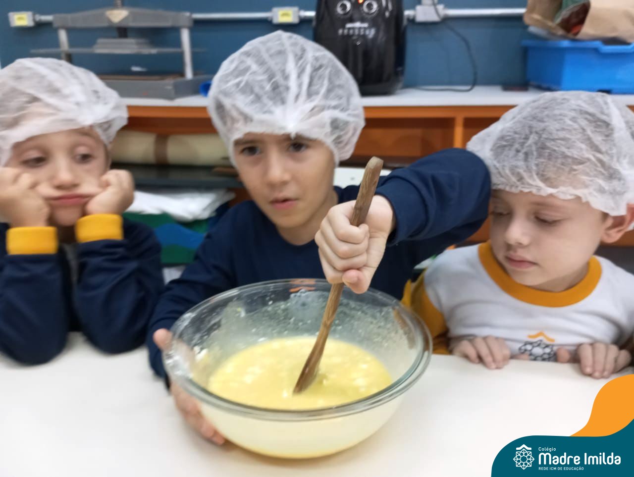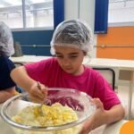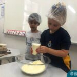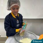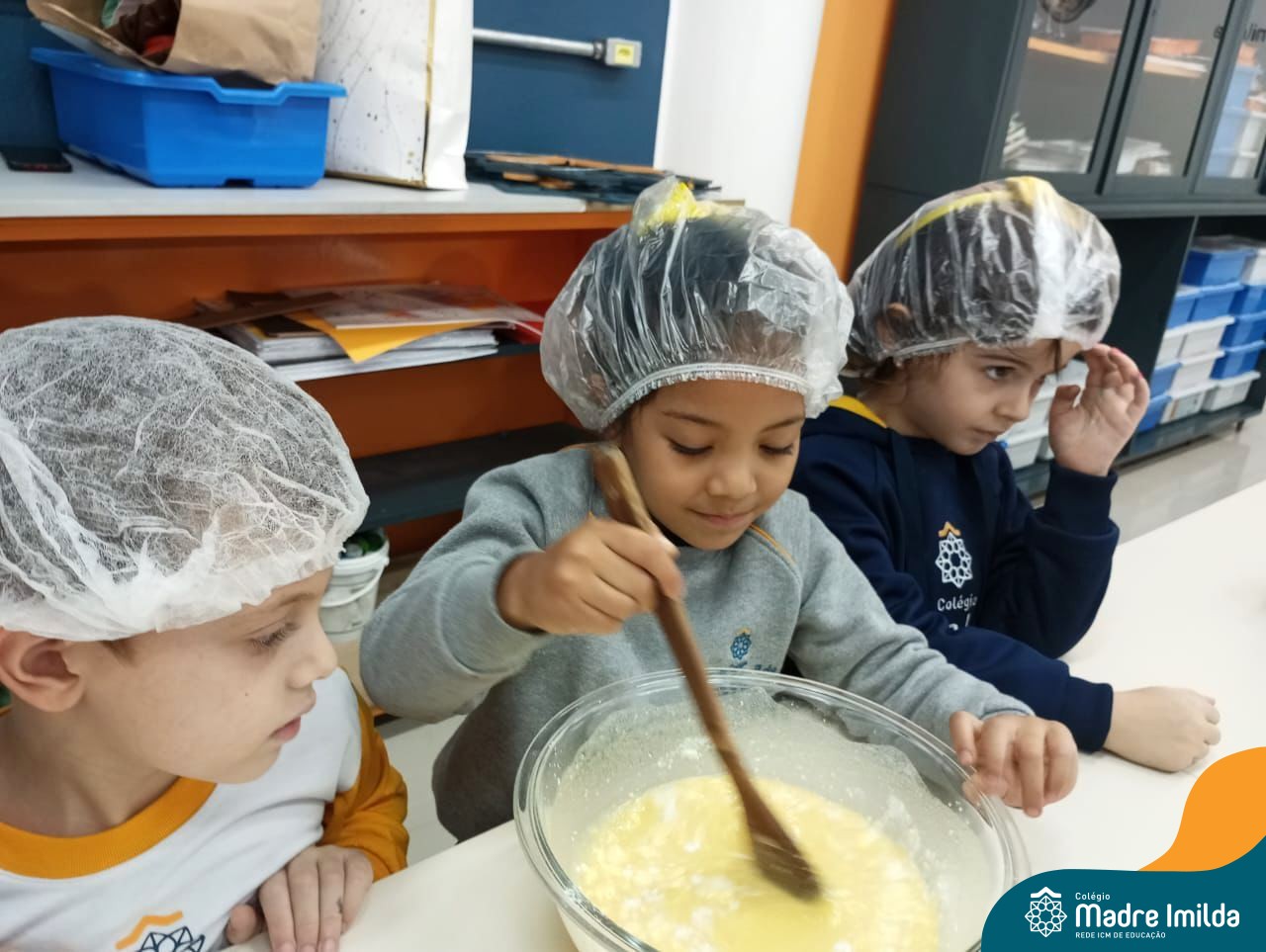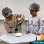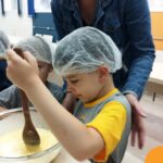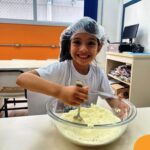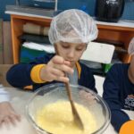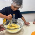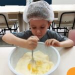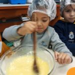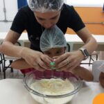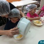 Sob a supervisão de suas educadoras, os estudantes aprenderam sobre ingredientes e técnicas culinárias básicas. Eles se divertiram medindo os ingredientes, misturando a massa e observando enquanto o bolo assava.