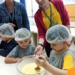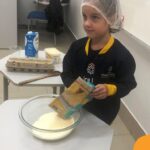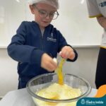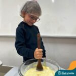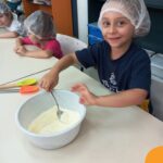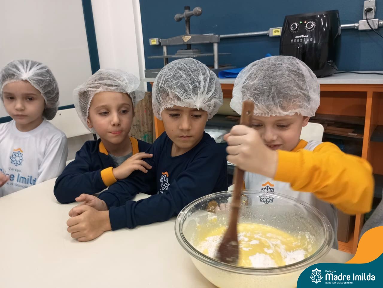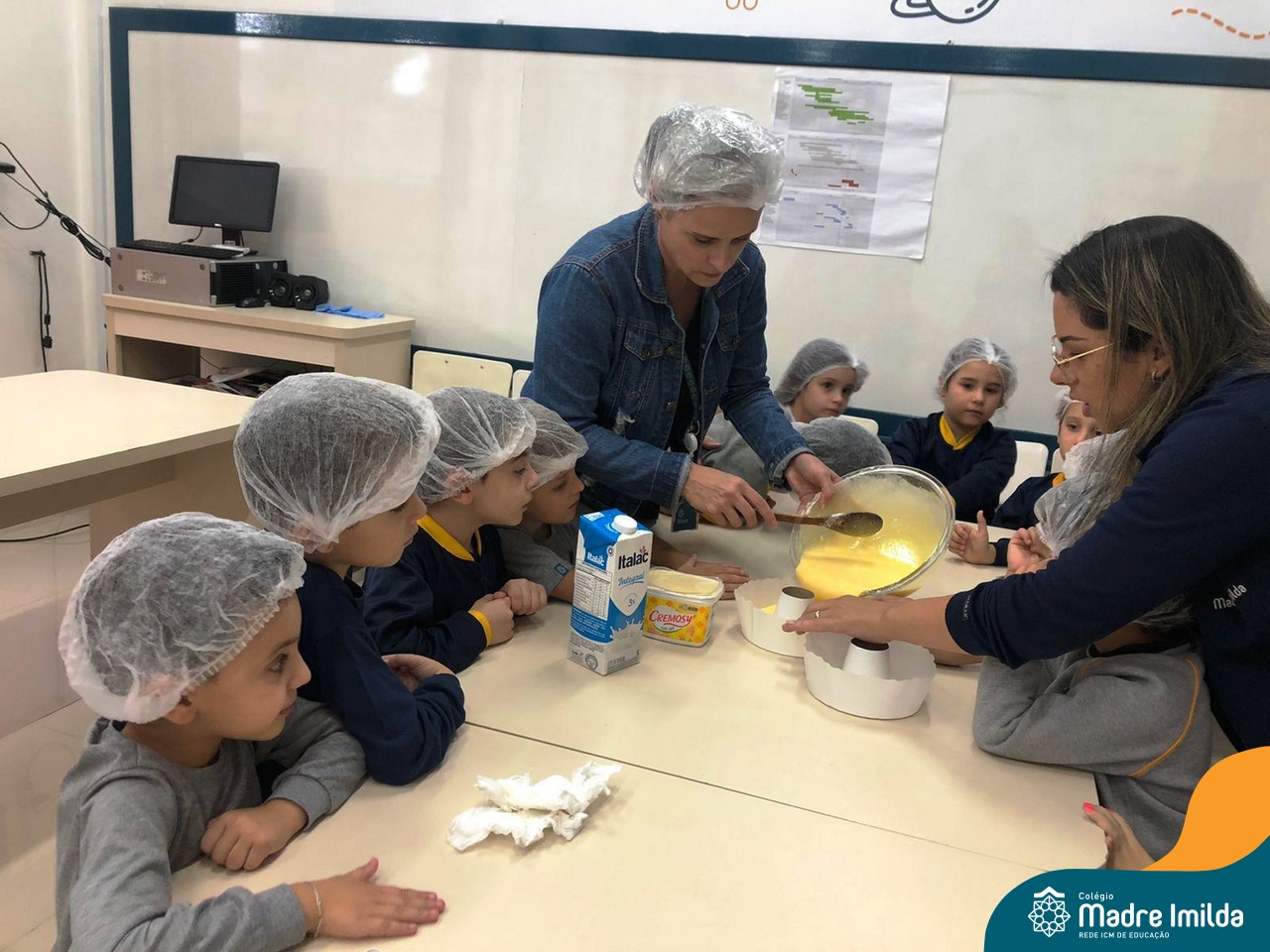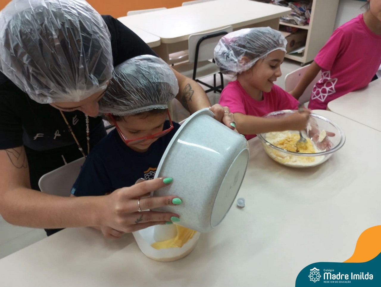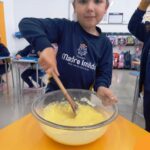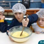 Sob a supervisão de suas educadoras, os estudantes aprenderam sobre ingredientes e técnicas culinárias básicas. Eles se divertiram medindo os ingredientes, misturando a massa e observando enquanto o bolo assava.