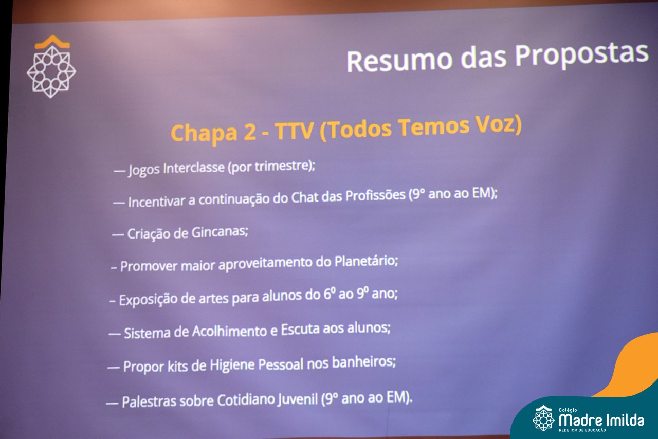 Enquanto algumas propostas focavam em questões práticas, como melhorias nas instalações escolares ou na organização de eventos extracurriculares, outras destacavam a importância da representatividade e inclusão, buscando dar voz às minorias e criar um ambiente mais acolhedor e igualitário para todos.