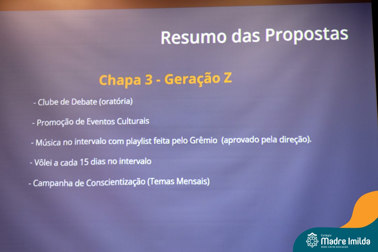 Na segunda-feira, dia 1º de abril, as chapas concorrentes ao Grêmio Estudantil se apresentaram diante dos estudantes do turno da manhã. Foi um momento de intensa participação cívica e engajamento democrático, onde os estudantes tiveram a oportunidade de conhecer as propostas e visões de cada equipe.