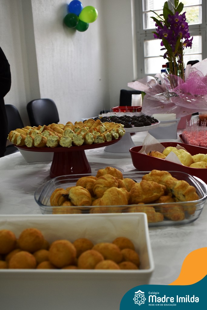 Na segunda-feira (16/10) os professores e colaboradores foram recebidos na sala da Diretoria com um carinhoso café da manhã/tarde. A atmosfera estava impregnada de sorrisos, conversas animadas e alegria, criando um ambiente acolhedor e de apreço mútuo.