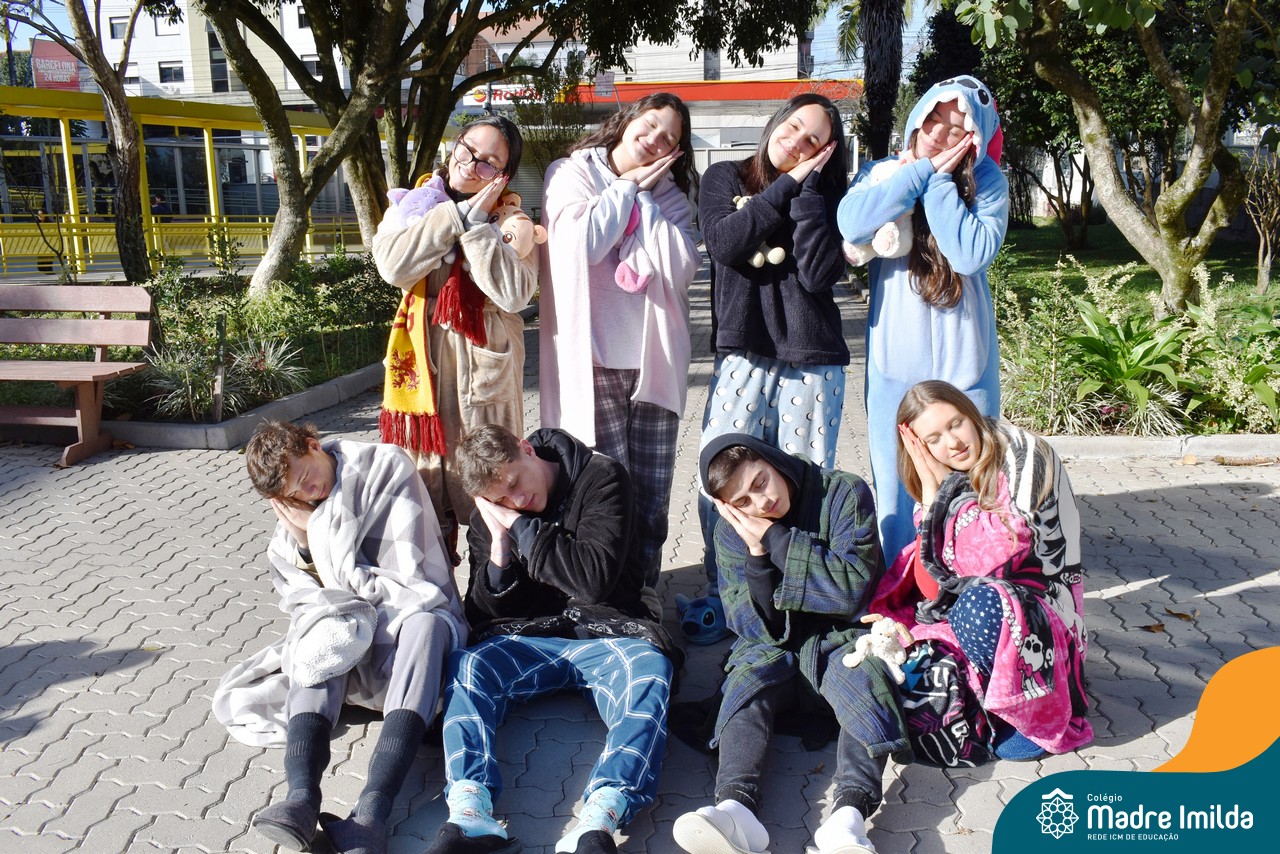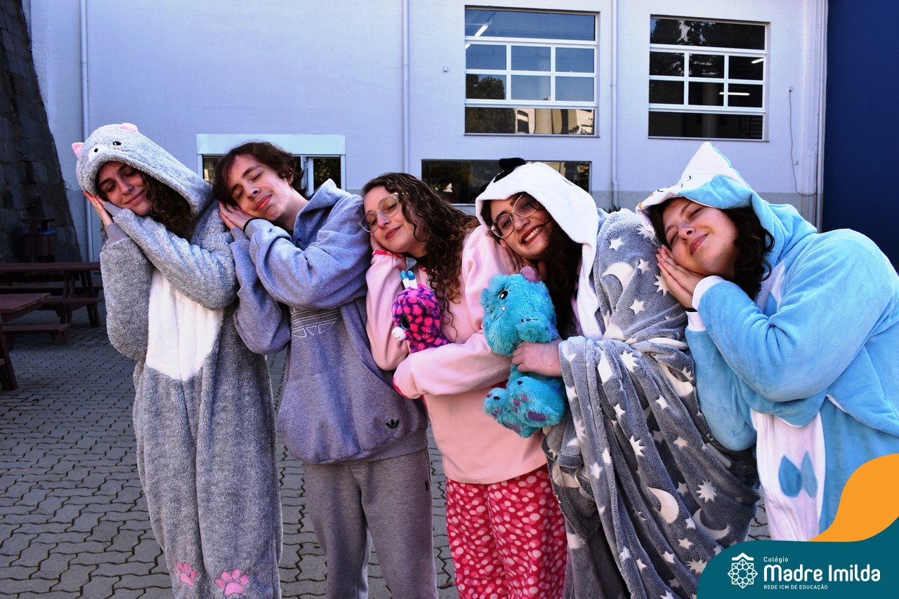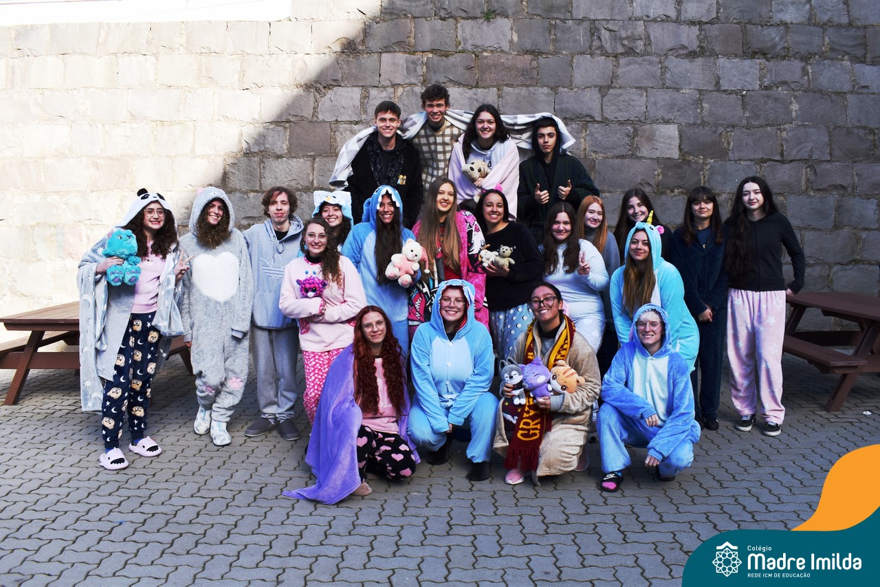 Mais um dia temático marcou a rotina do Terceirão no Colégio Madre Imilda! Dessa vez, os corredores foram tomados por pijamas criativos, pantufas e até travesseiros. Os estudantes abraçaram o espírito de diversão e vieram para a escola como se estivessem saindo direto da cama, mas com muita energia e descontração.