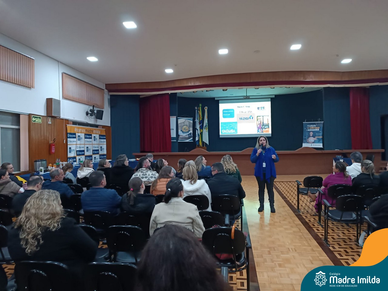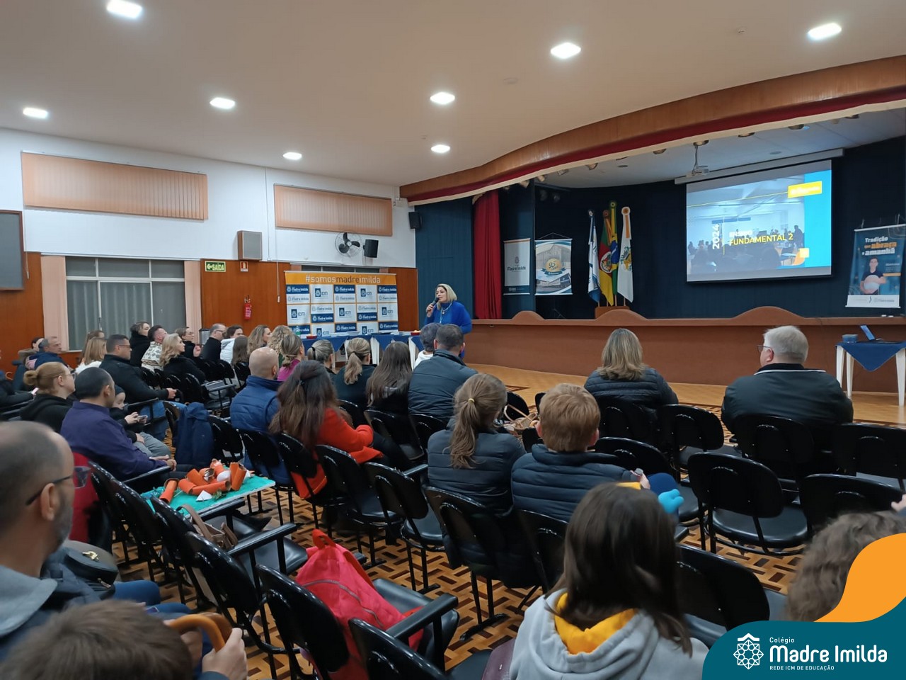 Nossas coordenadoras e equipe diretiva estiveram presentes para dar as boas-vindas a todos e compartilhar informações detalhadas sobre essa nova modalidade de ensino. Durante as falas, destacaram a importância desse turno adicional na formação acadêmica e no desenvolvimento dos nossos estudantes.
