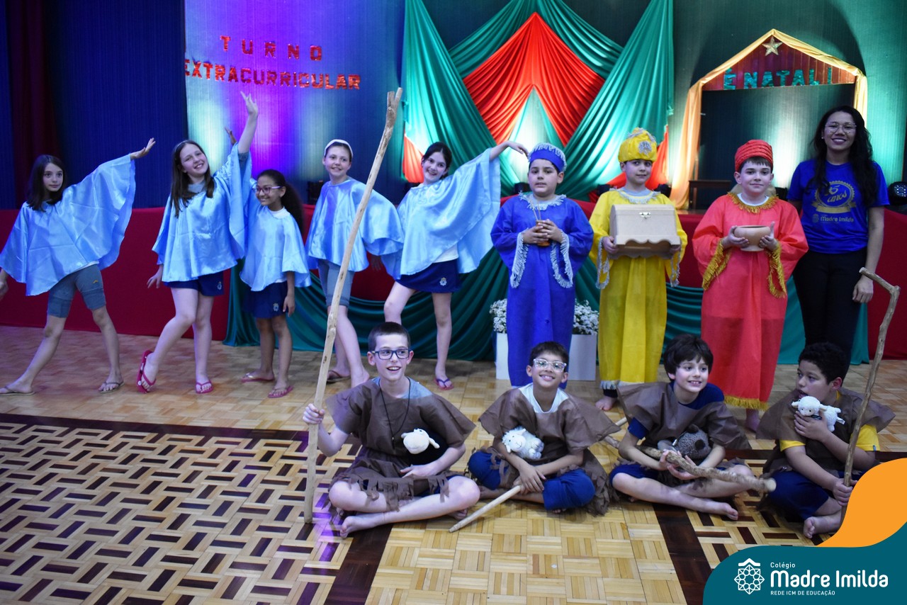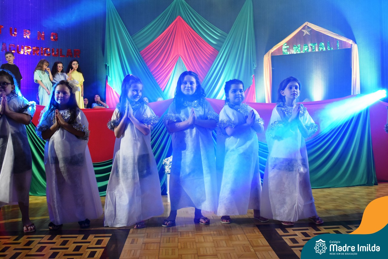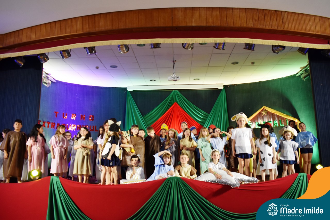 Na última terça-feira(12/12), nossos estudantes do Turno Extracurricular iluminaram o palco do Salão Nobre com apresentações teatrais cativantes, mergulhando todos os presentes na encantadora história do Natal.