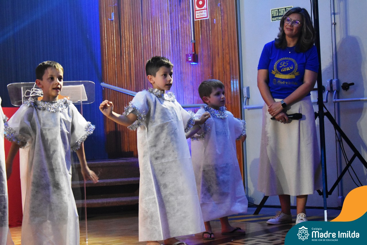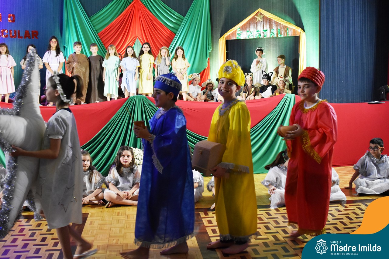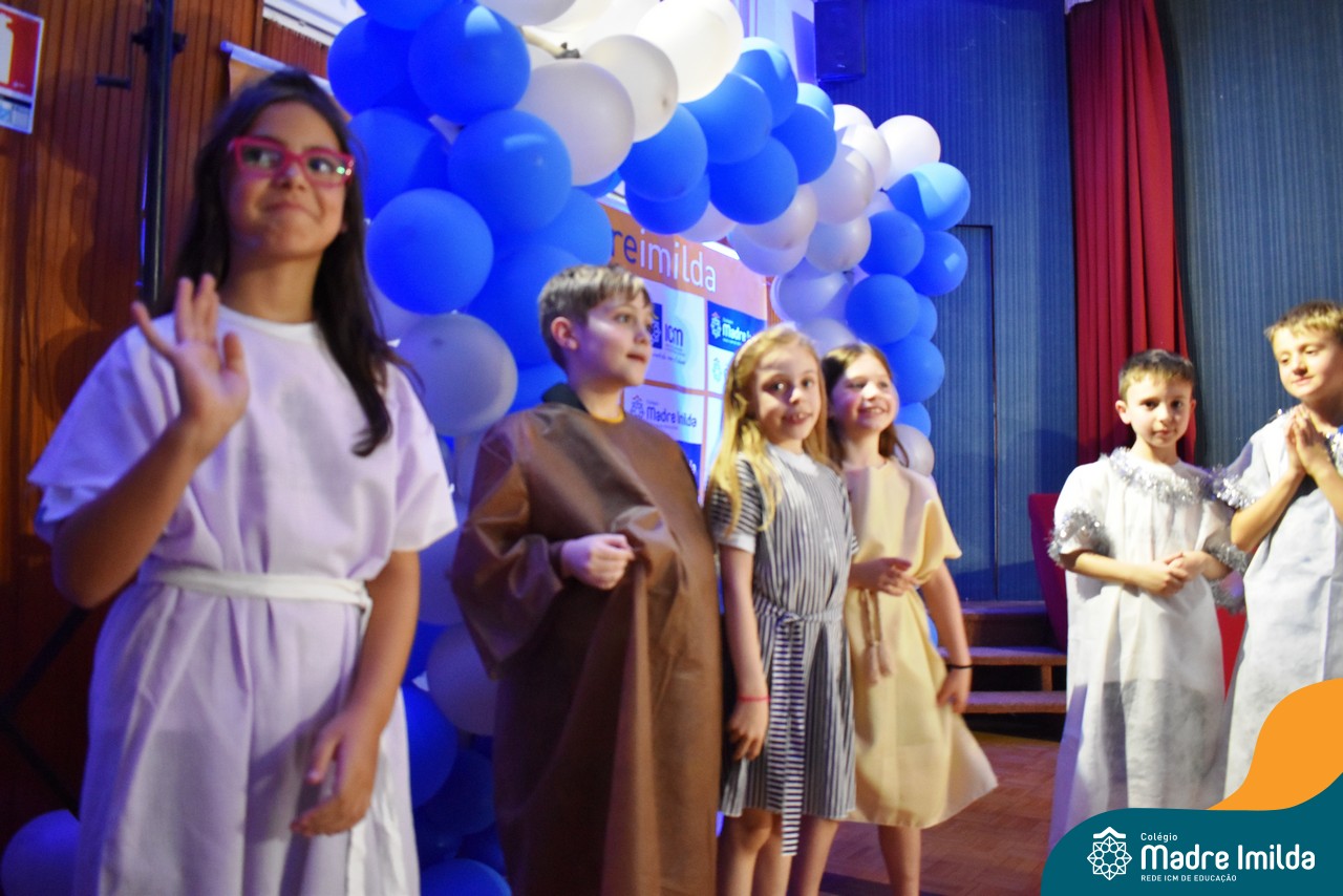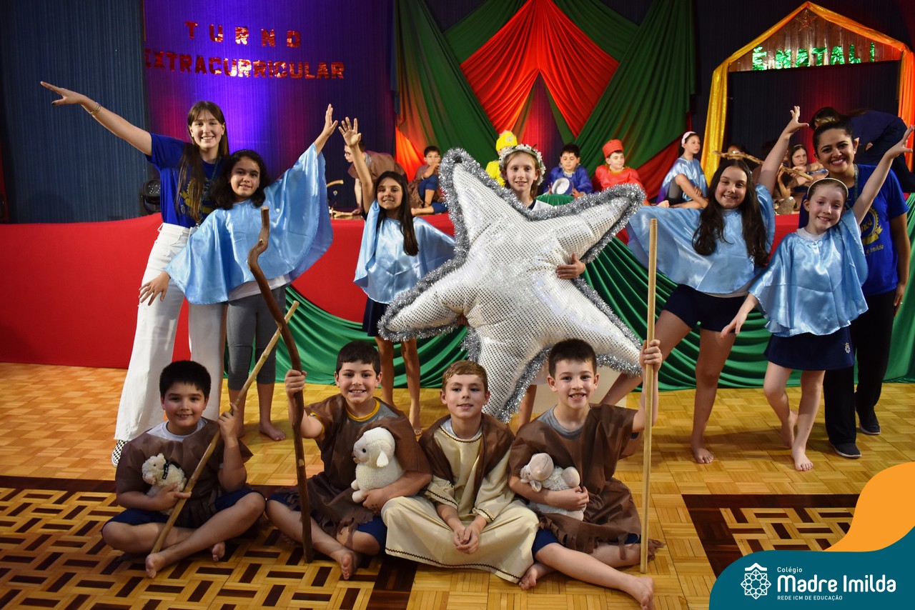 Na última terça-feira(12/12), nossos estudantes do Turno Extracurricular iluminaram o palco do Salão Nobre com apresentações teatrais cativantes, mergulhando todos os presentes na encantadora história do Natal.