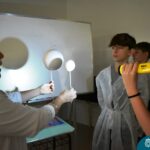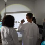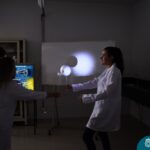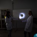 Durante as experiências, os alunos puderam observar modelos simulando a posição relativa da Terra, Lua e Sol durante um eclipse lunar. Eles também utilizaram equipamentos simples, como lanternas e bolas de isopor, para representar os movimentos dos corpos celestes e entender como ocorre a sombra da Terra sobre a Lua durante o eclipse.