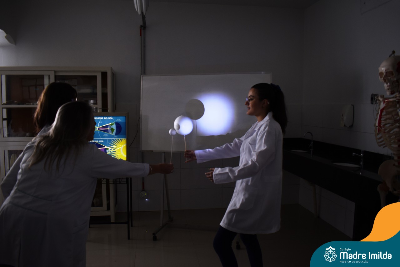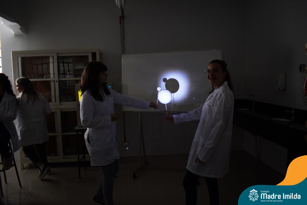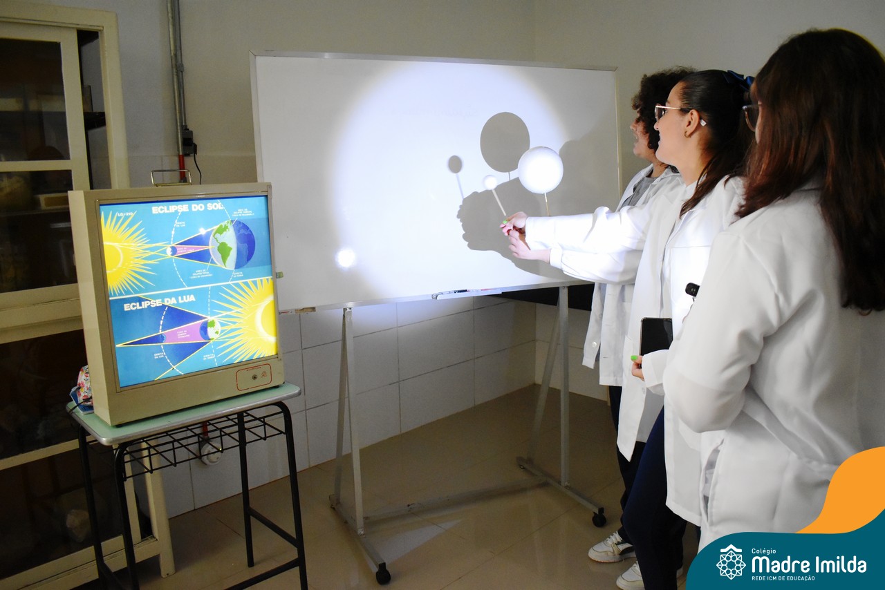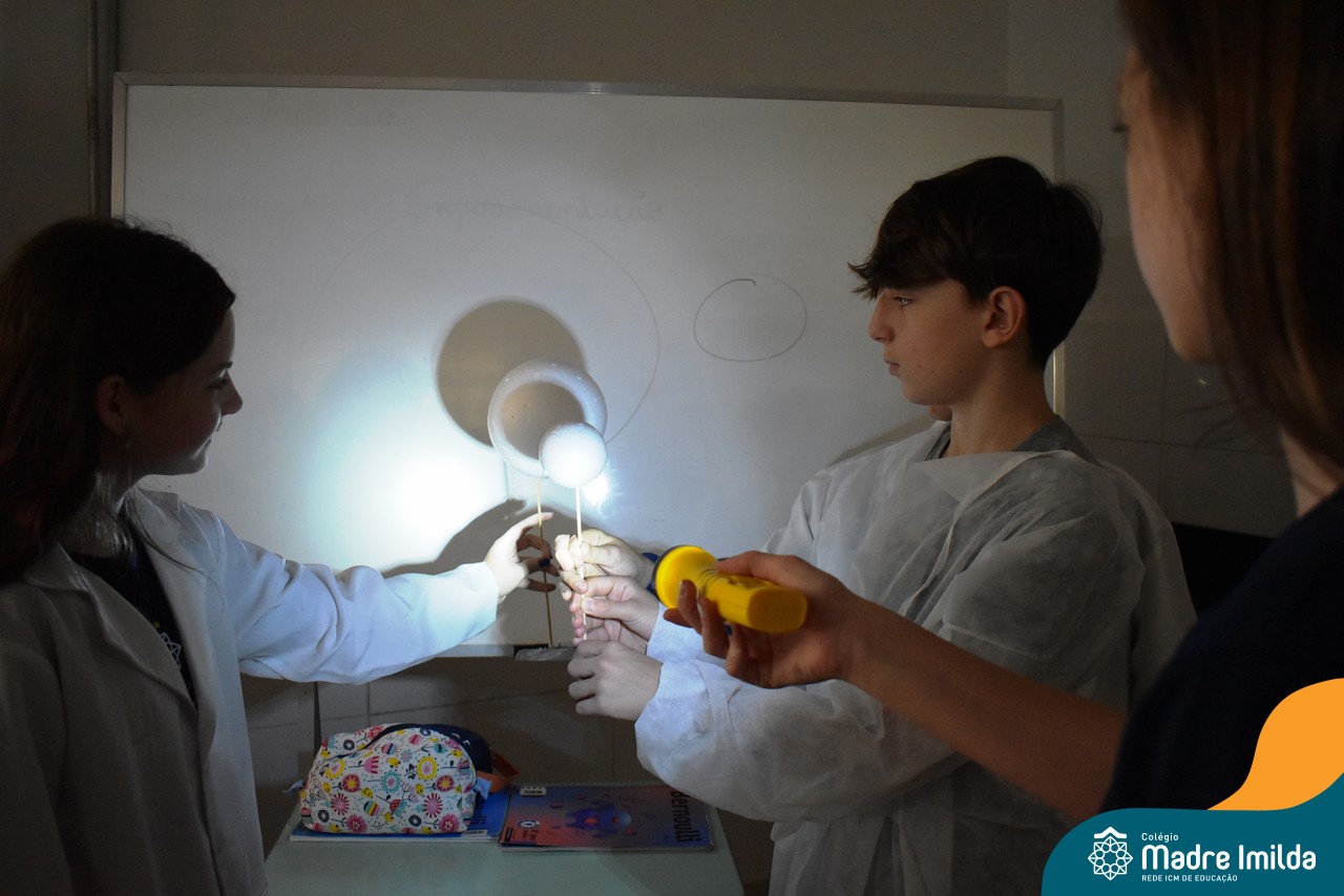 Na última semana, os alunos do 8º ano do Colégio Madre Imilda mergulharam no estudo do Eclipse Lunar durante suas aulas de geografia. A atividade consistiu em uma série de experimentos realizados no laboratório, com o objetivo de compreender os fundamentos por trás desse fenômeno astronômico.