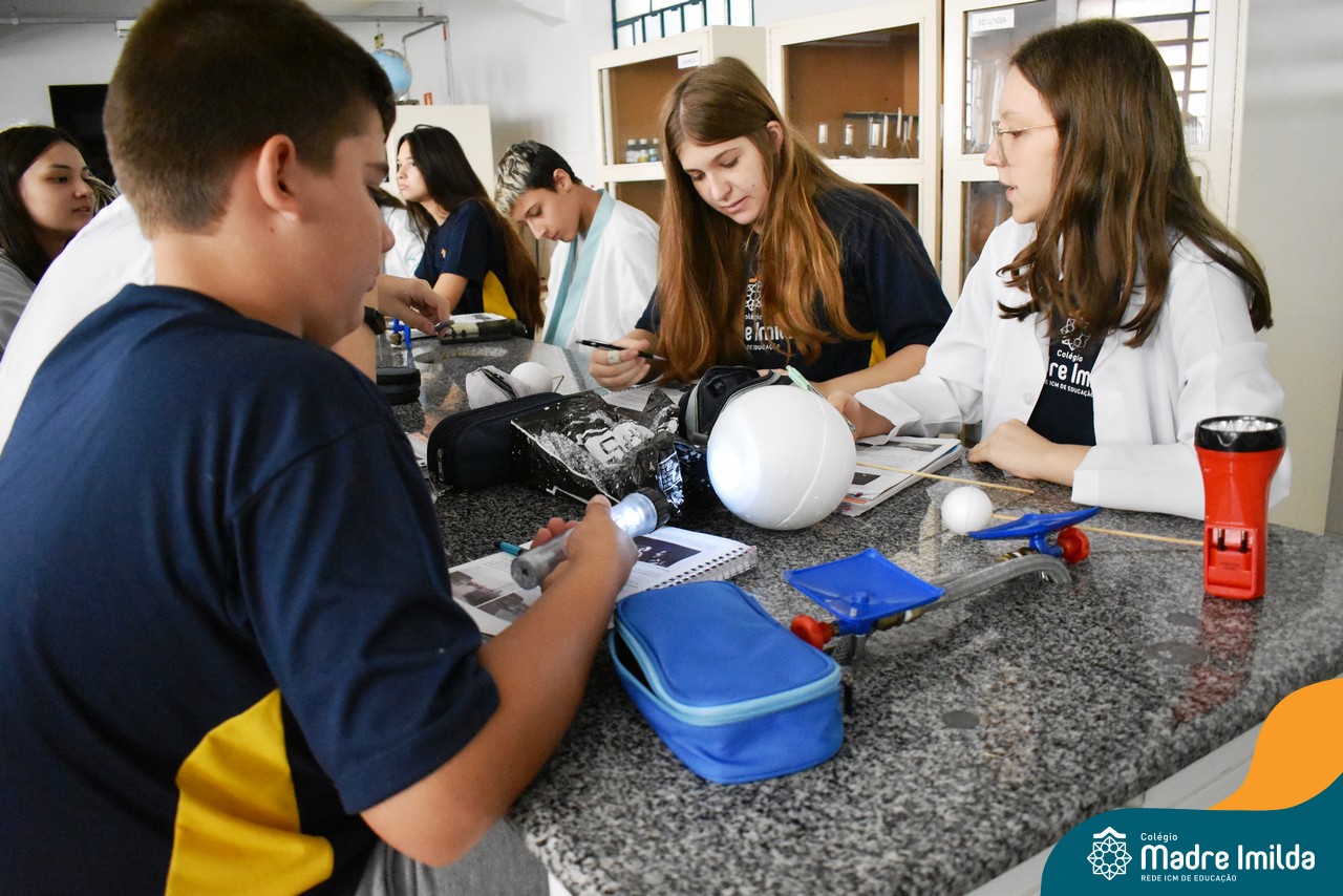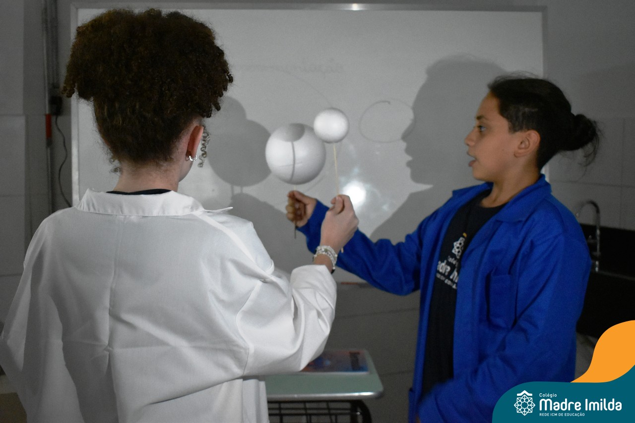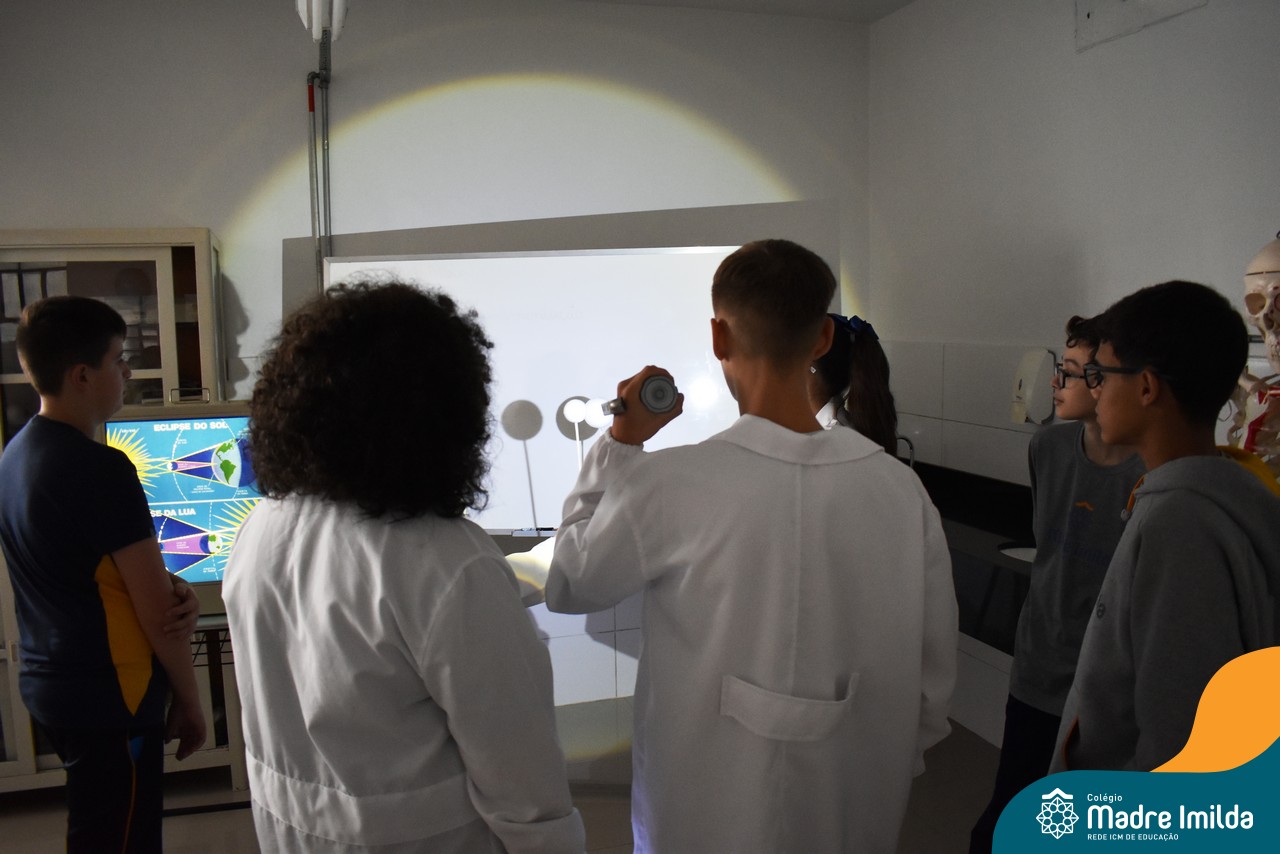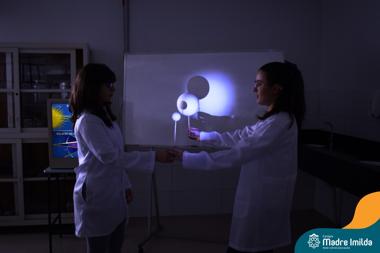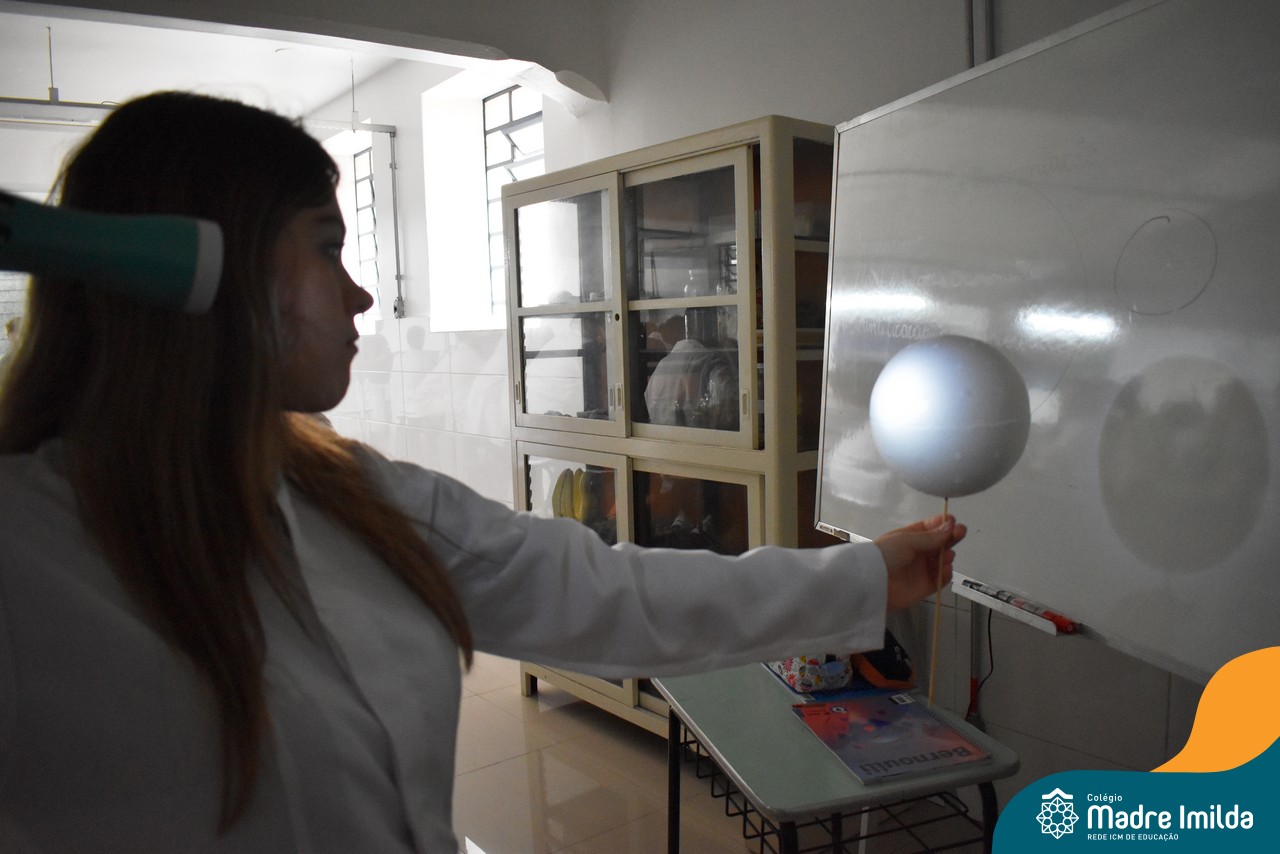 Na última semana, os alunos do 8º ano do Colégio Madre Imilda mergulharam no estudo do Eclipse Lunar durante suas aulas de geografia. A atividade consistiu em uma série de experimentos realizados no laboratório, com o objetivo de compreender os fundamentos por trás desse fenômeno astronômico.