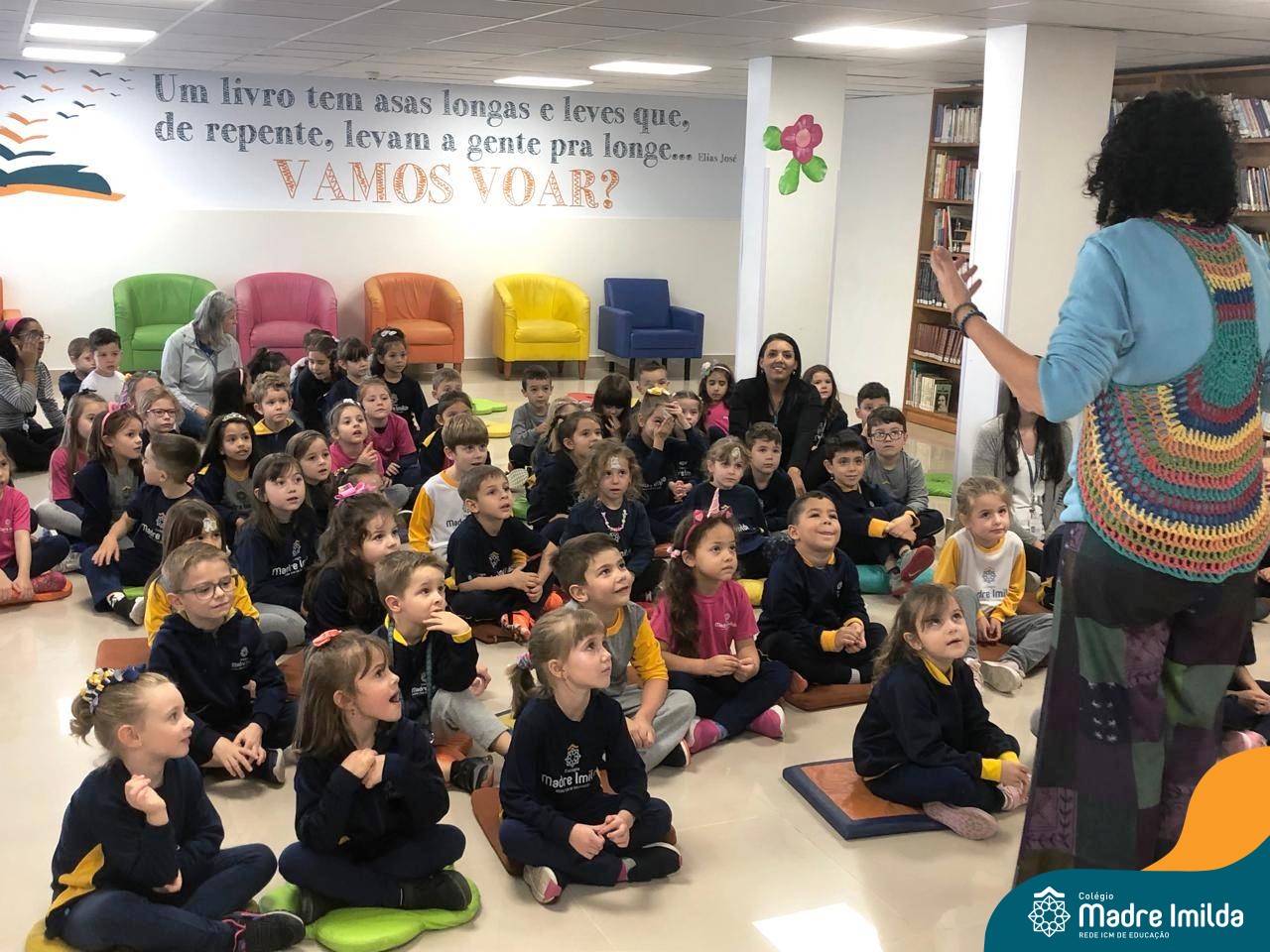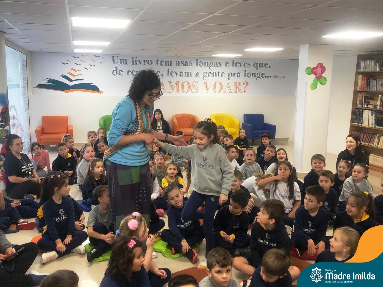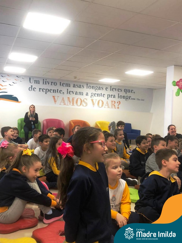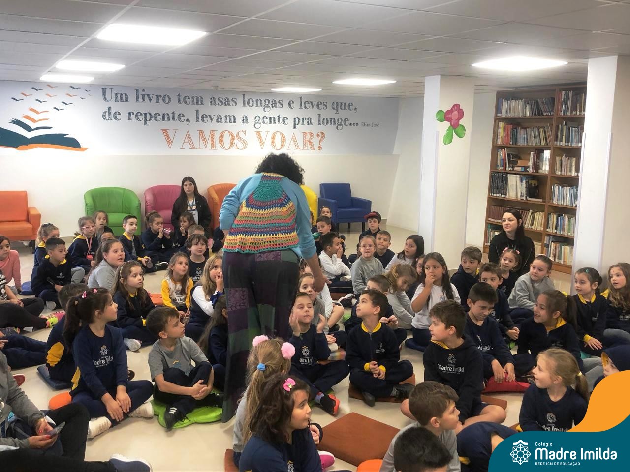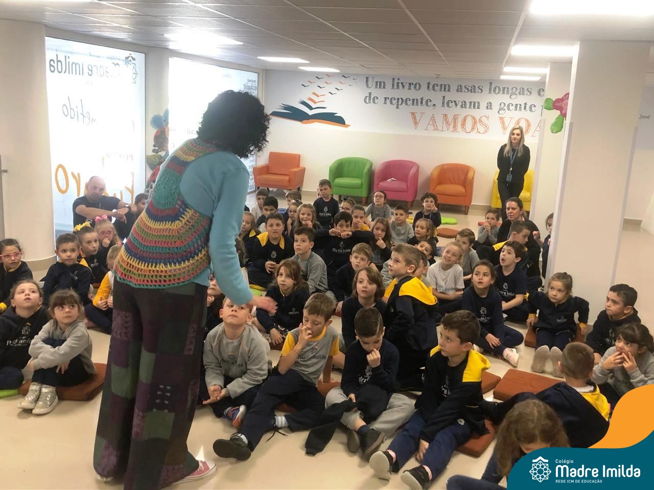 Durante a Feira do Livro 2024, as turmas da Educação Infantil e do 1º ano do Ensino Fundamental mergulharam em uma viagem de imaginação e aprendizado através da Contação de Histórias com a Aline Luz, realizada na Biblioteca da escola.