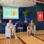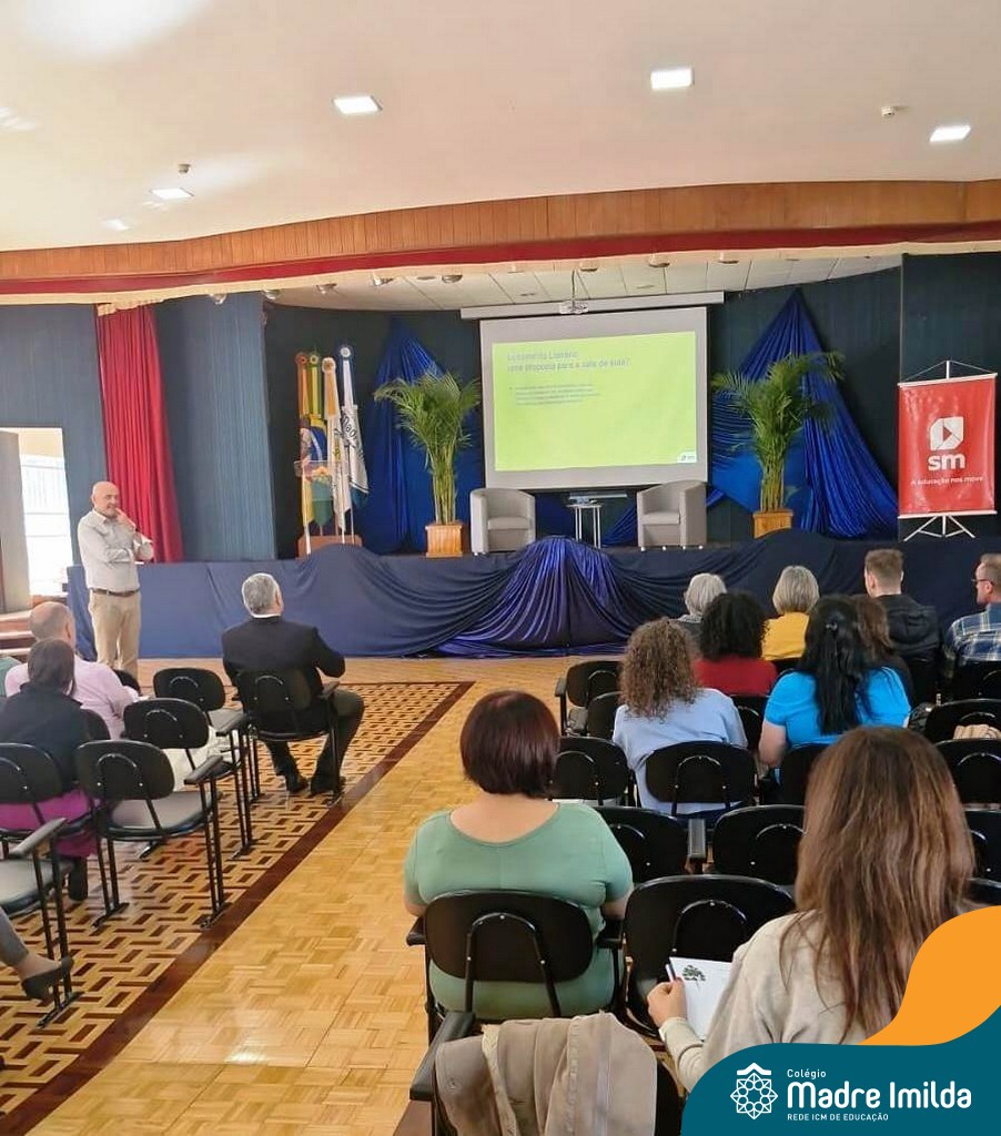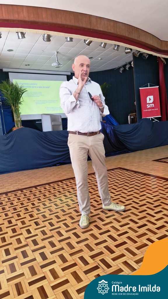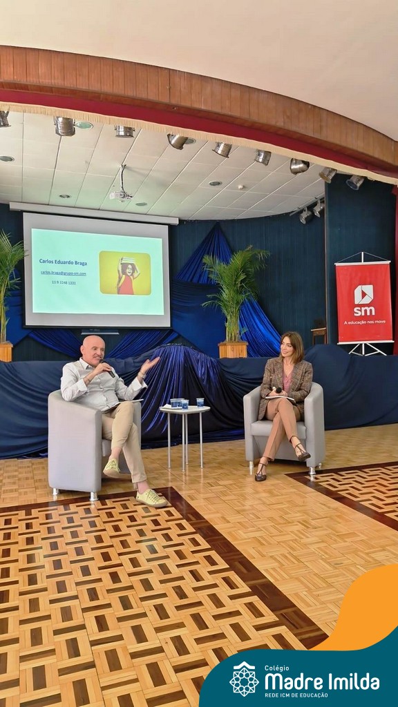 1º Momento: Bate-papo com o mediador da SM Carlos Eduardo Braga e a autora Elaine Pasquali. Neste primeiro momento, os presentes tiveram a oportunidade de participar de um animado bate-papo mediado por Carlos Eduardo Braga, da SM, e a autora Elaine Pasquali. Juntos, exploraram temas relacionados à importância da literatura na educação e compartilharam insights valiosos sobre o processo criativo de escrita.
