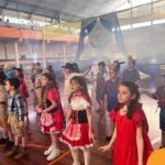 A atmosfera festiva começou a envolver o colégio desde cedo, quando familiares e amigos se reuniram para testemunhar as performances encantadoras dos estudantes. O palco foi transformado em um verdadeiro espetáculo, onde os pequenos protagonistas não apenas se apresentaram com desenvoltura, mas também compartilharam seus talentos musicais ao cantar e dançar, deixando uma marca inesquecível em todos os corações presentes.