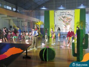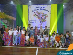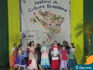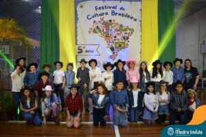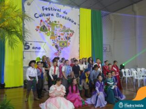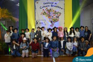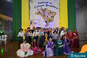 No Festival da Cultura Brasileira, os alunos do 5º ano do Ensino Fundamental mergulharam na diversidade e riqueza do nosso país. Com muito entusiasmo, apresentaram aspectos culturais das cinco regiões: Centro-Oeste, Sudeste, Nordeste, Norte e Sul. Em um espetáculo cheio de cores, danças e músicas típicas, cada grupo de alunos trouxe ao palco elementos característicos de sua região estudada, demonstrando o aprendizado e o respeito pela pluralidade cultural brasileira.