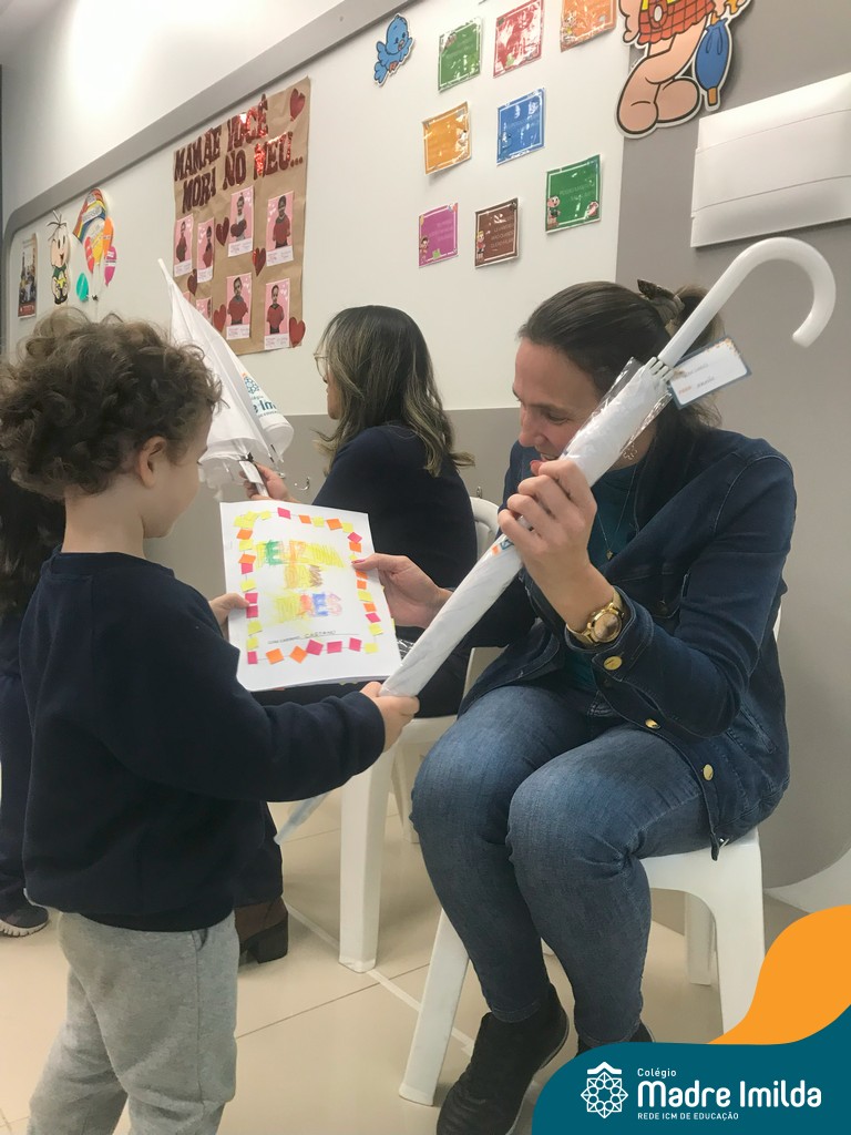 Como gesto de gratidão e apreço, cada mamãe recebeu um presente especial: um guarda-chuva personalizado, simbolizando a proteção e o amor que envolvem suas famílias.