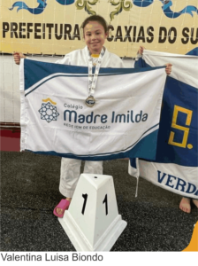 O 1º lugar do masculino infantil, categoria peso médio, foi conquistado pelo aluno Artur Adamatti (turma 92) e o 1º lugar feminino mirim, peso ligeiro, por Valentina Luisa Biondo (turma 52).