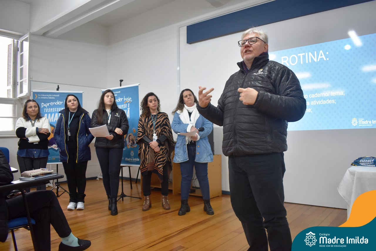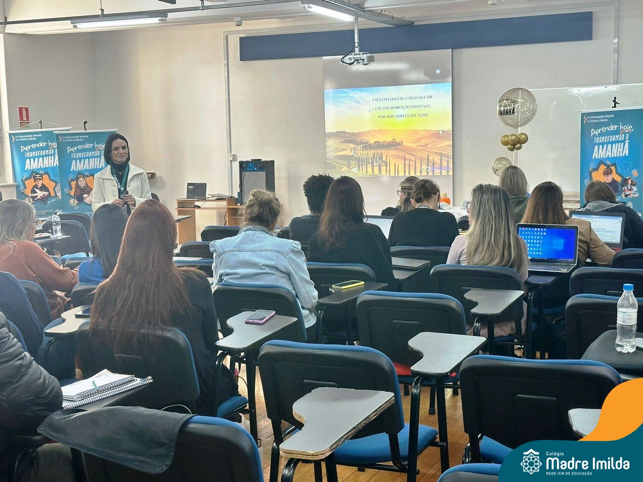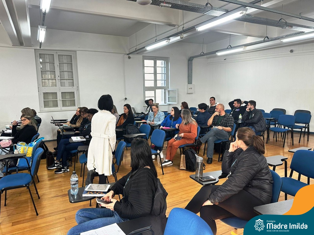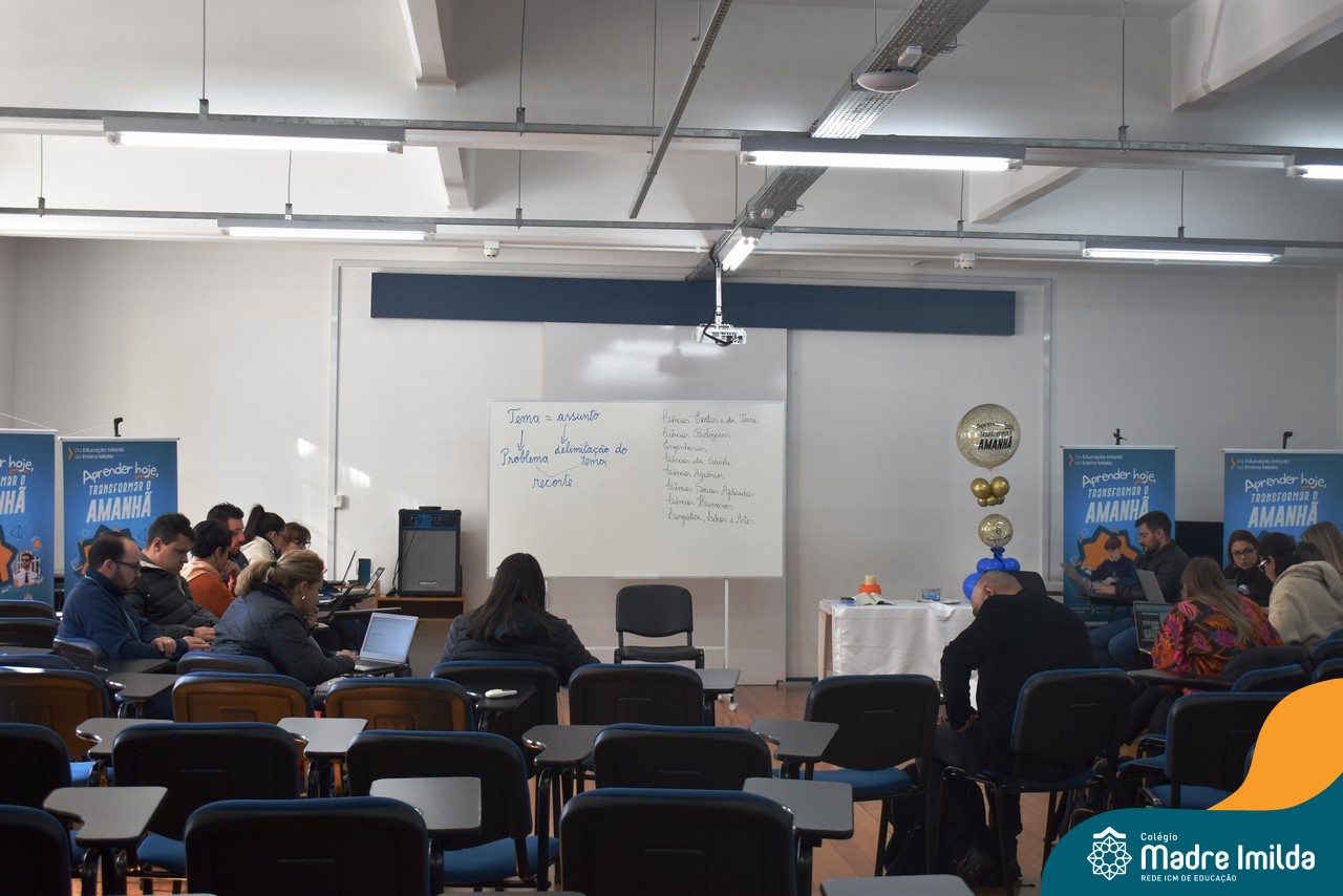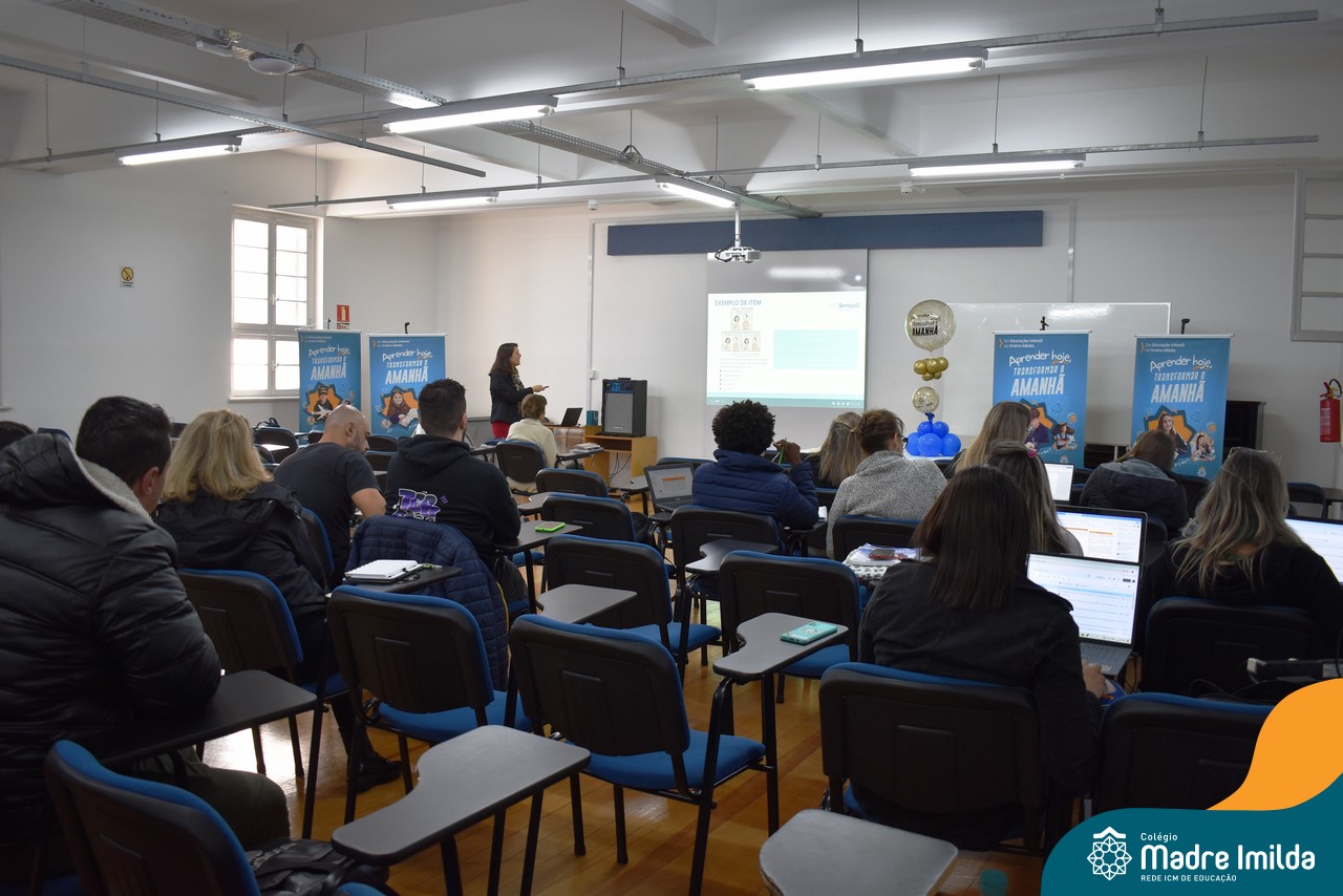 Nos dias 29, 30 e 31 de julho, e 1 e 2 de agosto, o Colégio Madre Imilda realizou a Jornada Pedagógica dos Professores, um evento especialmente planejado para capacitar e inspirar nossos educadores. Durante esses dias, os professores participaram de uma série de formações voltadas para o aprimoramento do uso das plataformas educacionais utilizadas no colégio, como Elefante Letrado, Matific, Líder em Mim e Bernoulli.