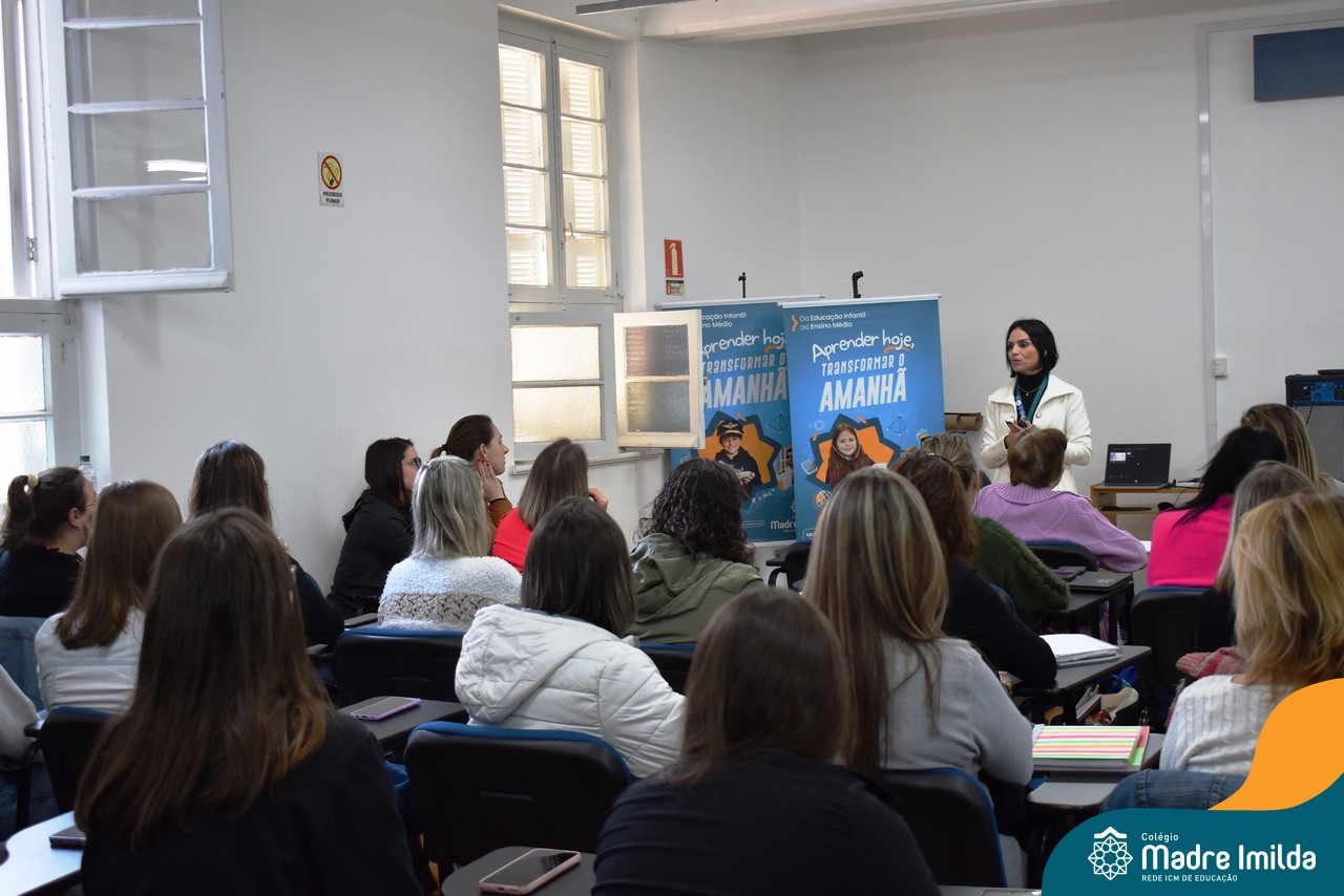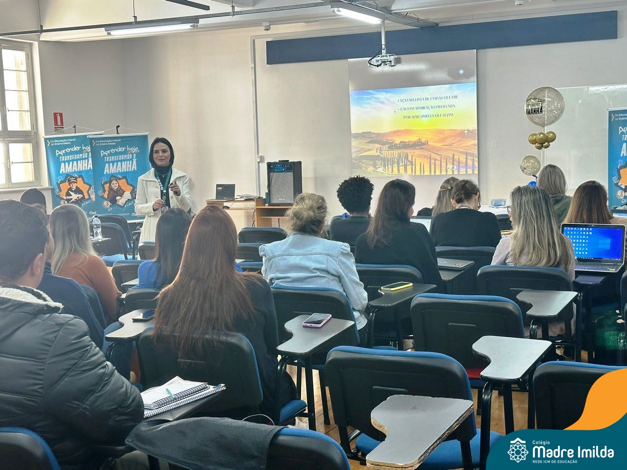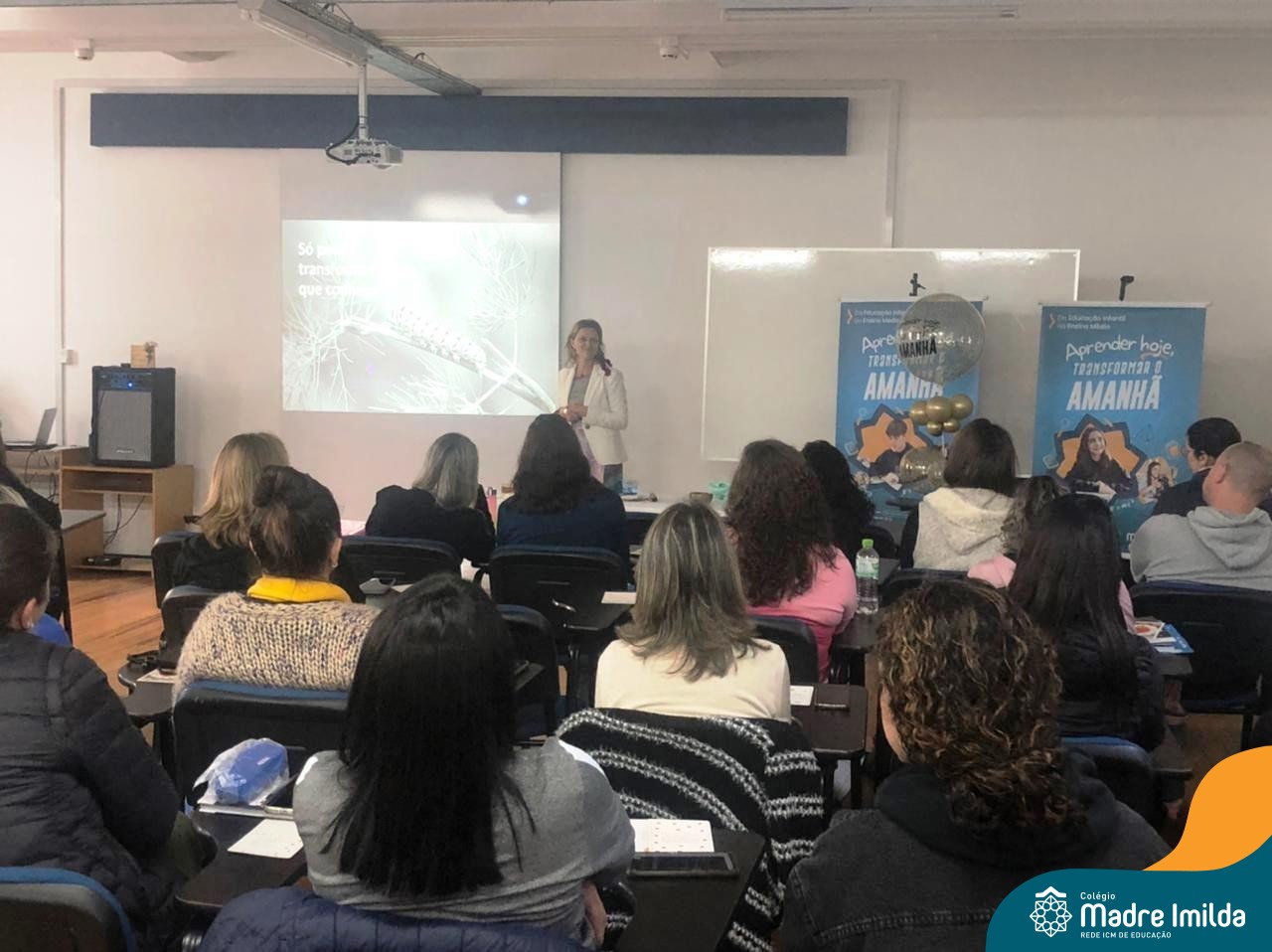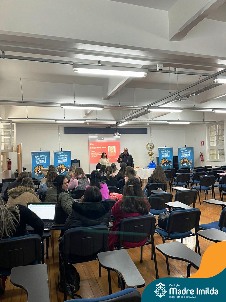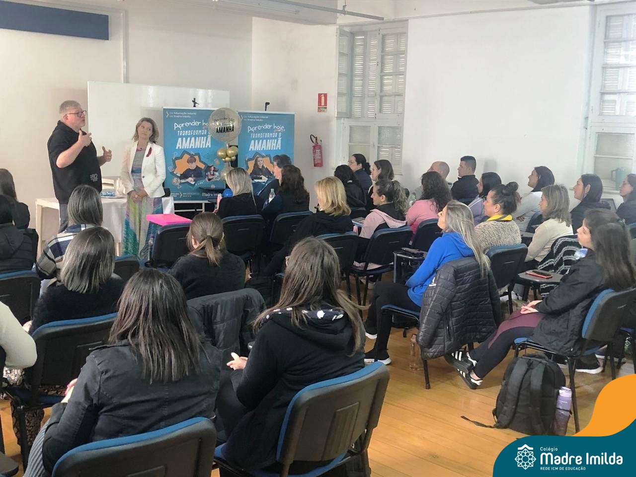 Nos dias 29, 30 e 31 de julho, e 1 e 2 de agosto, o Colégio Madre Imilda realizou a Jornada Pedagógica dos Professores, um evento especialmente planejado para capacitar e inspirar nossos educadores. Durante esses dias, os professores participaram de uma série de formações voltadas para o aprimoramento do uso das plataformas educacionais utilizadas no colégio, como Elefante Letrado, Matific, Líder em Mim e Bernoulli.