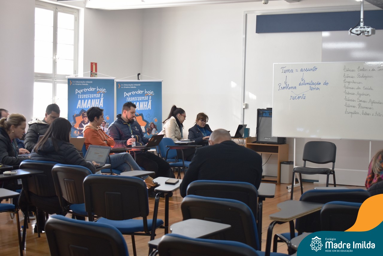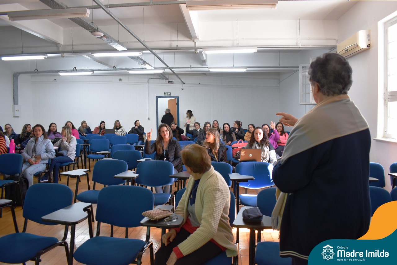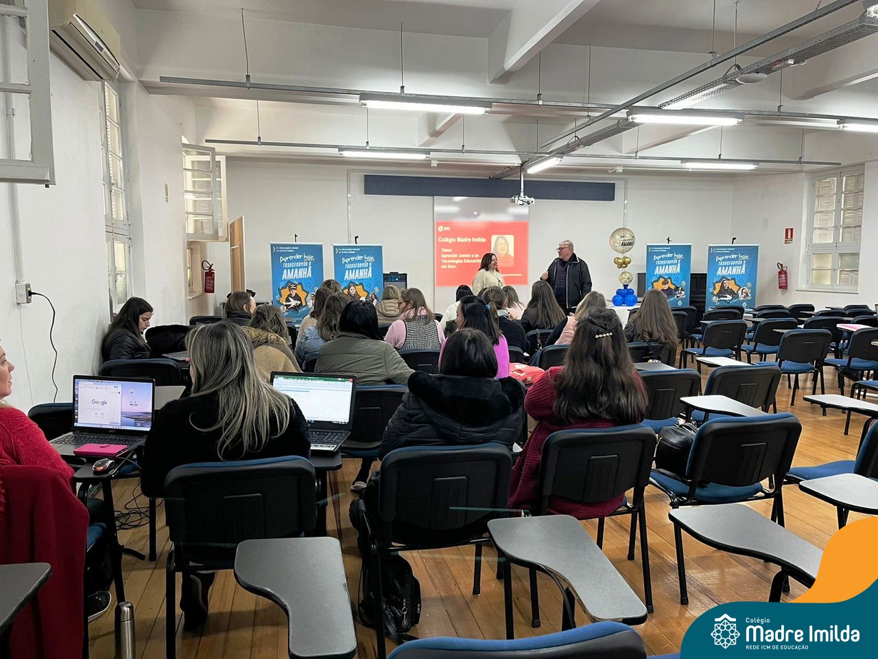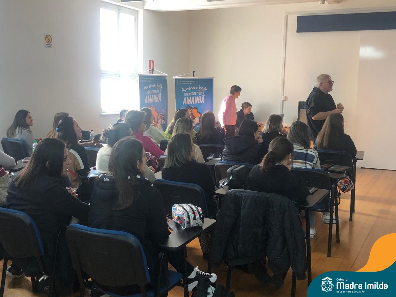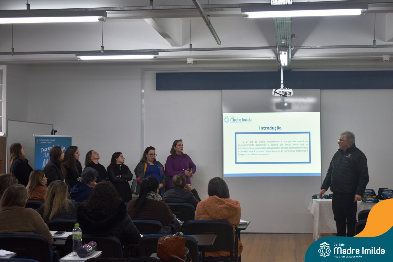 Nos dias 29, 30 e 31 de julho, e 1 e 2 de agosto, o Colégio Madre Imilda realizou a Jornada Pedagógica dos Professores, um evento especialmente planejado para capacitar e inspirar nossos educadores. Durante esses dias, os professores participaram de uma série de formações voltadas para o aprimoramento do uso das plataformas educacionais utilizadas no colégio, como Elefante Letrado, Matific, Líder em Mim e Bernoulli.